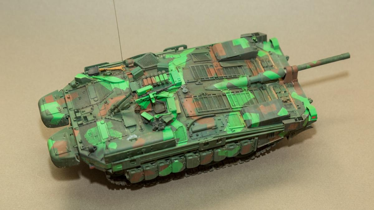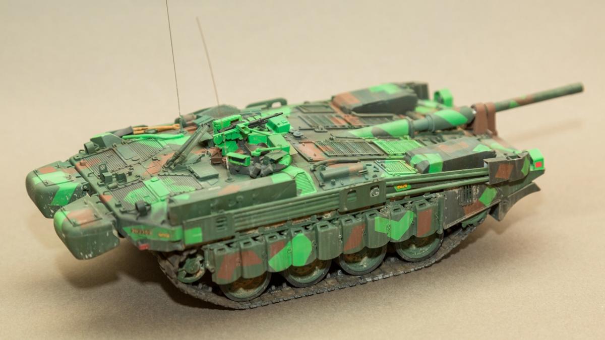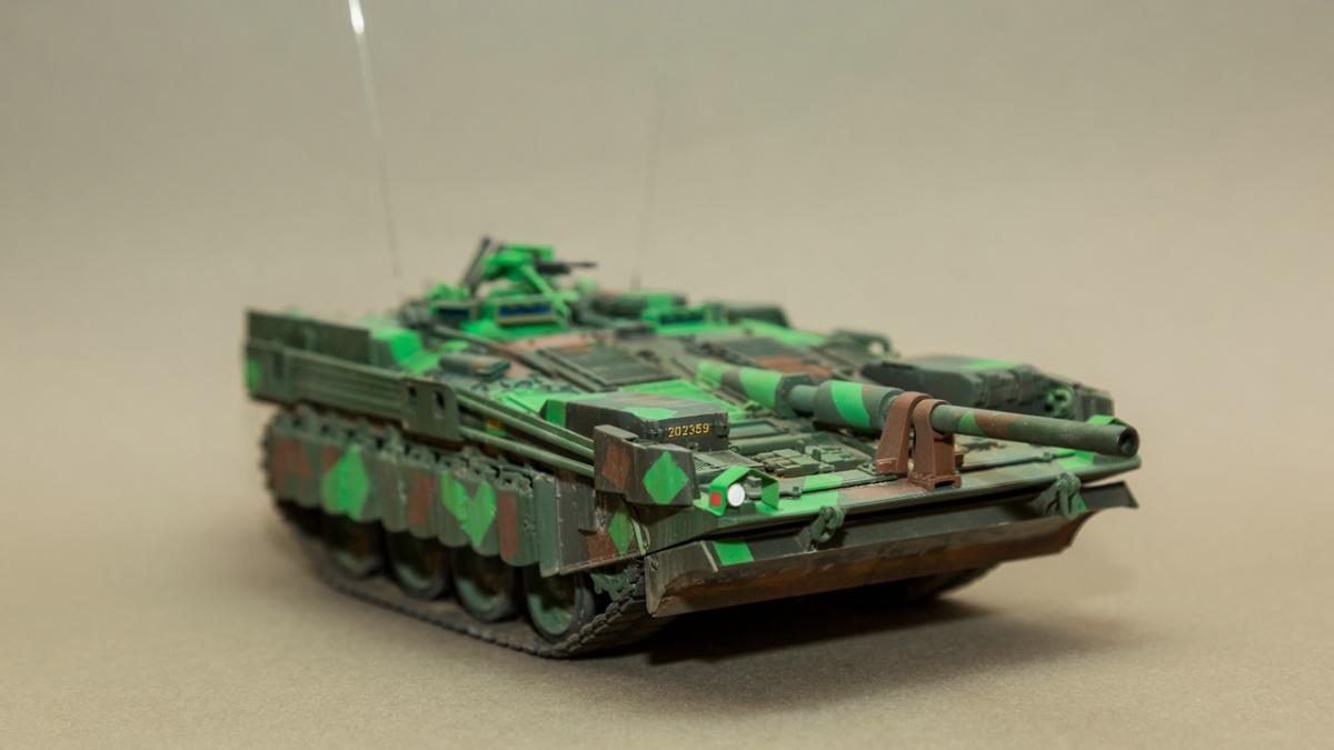 Шведский основной боевой танк, разработанный по оригинальной схеме.Набор достаточно старый, но безальтернативный. Сборка достаточно проста - деталей минимум. Для придания модели более реалистичного вида при сборке использовалось фототравление неизвестного производителя из Китая (которое было скопировано с оригинального набора фирмы "Эдуард" и точеный ствол от "RBmodel". Модель окрашивалась красками "Пасифик" отечественного производителя (хотелось попробовать в реальности как ведет себя данная краска). Лично мое мнение о данной краске не очень положительное - самый главный недостаток это налипание краски на конце иглы которое приходилось очищать примерно через каждые 2 минуты.Окрас модели осуществлялся по "мотивам". Тонировка химией "АК" и "АММО".Готов выслушать критику, замечания, пожелания.