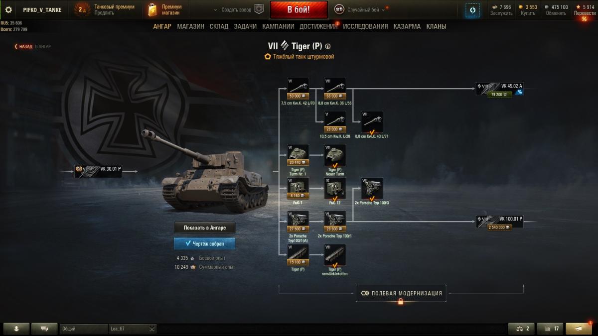 Здравствуйте! Сегодня обратил внимание на одну проблему - что бы сделать танк "элитным" нужно прокачать все модули + открыть следующую за ним технику в дереве развития, т.е. прокачать все модули и технику, которая есть на "страничке" танка "исследование модулей". Однако, количество техники, которая следует за этим танком сильно отличается в деревьях развития не только разных наций, но и параллельных веток одной нации. Приведу пример: что бы сделать танк PzKpfw VI Tiger (P) элитным, нужно помимо всех его модулей еще изучить 3 (!) образца техники, а именно - Ferdinand (150 000 опыта), VK4502 (P) A (90 000 опыта), PzKpfw VI Tiger (25 120 опыта). Всего же нужно заработать 75 690 опыта для изучения модулей и 265 120 опыта для изучения следующей техники, т.е. 340 810 опыта, что бы Ваш любимый Тигр-порш стал элитным, и Вы смогли ускорить процесс обучения экипажа, либо выводить опыт в "свободный" за голду. Аналогичный танк 7-го уровня ИС в советской ветке требует 119 925 опыта для изучения всех модулей и 77 000 для изучения следующей за ним техники, всего 196 925 опыта! Возьмем немецкую ветку развития - танк PzKpfw VI Tiger. Для того, что бы сделать его "элитным" вам достаточно будет потратить 112 735 опыта для прокачки модулей и 78 000 для изучения следующей за ним техники, всего 190 735 опыта. В результате мы получили: PzKpfw VI Tiger (P) - 340 810 опыта 525]ИС – 196 925 опыта PzKpfw VI Tiger – 190 735 опытаЕсли в последних двух случаях разница не сильно большая, то в первом она слишком велика! Если кто-нибудь уже задавался таким вопросом или ответ на этот вопрос уже есть, подскажите, где его искать, если нет – с чем связана такая несправедливость?