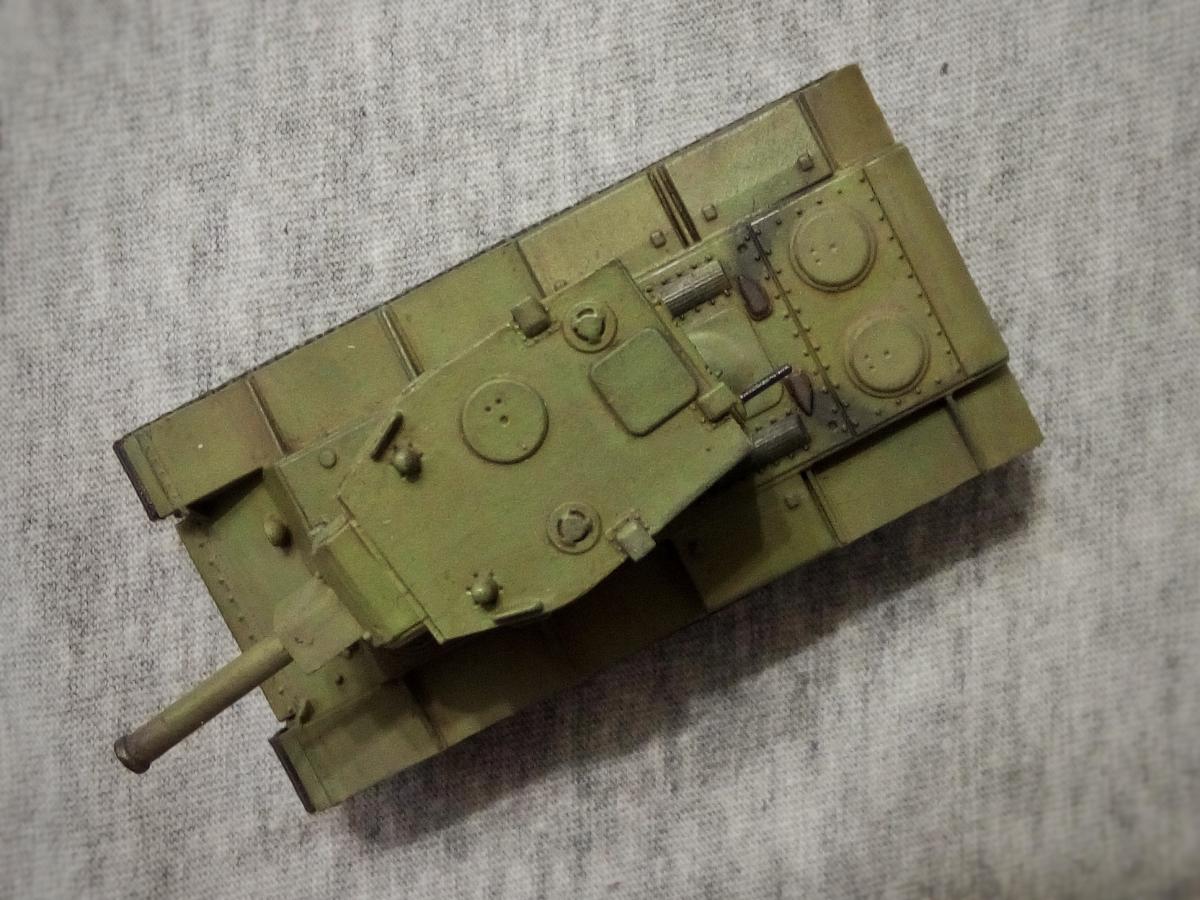 Модель КВ-1 от фирмы Звезда в масштабе 1/100. http://cdn-frm-eu.wargaming.net/wot/ru/uploads/monthly_10_2016/post-23366632-0-87159400-1475499276.jpg Доброго времени суток друзья. Готова еще одна модель. В этот раз захотелось отдохнуть от больших долгих строек и сделать что-то по быстрому. Практически ничего не дорабатывал (рассверлен ствол и фара, добавлен ствол пулемета). Основной упор делал на покраску. http://cdn-frm-eu.wargaming.net/wot/ru/uploads/monthly_10_2016/post-23366632-0-51932800-1475498505_thumb.jpg http://cdn-frm-eu.wargaming.net/wot/ru/uploads/monthly_10_2016/post-23366632-0-08730100-1475498507_thumb.jpg http://cdn-frm-eu.wargaming.net/wot/ru/uploads/monthly_10_2016/post-23366632-0-34852500-1475498508_thumb.jpg http://cdn-frm-eu.wargaming.net/wot/ru/uploads/monthly_10_2016/post-23366632-0-46811100-1475498509_thumb.jpg http://cdn-frm-eu.wargaming.net/wot/ru/uploads/monthly_10_2016/post-23366632-0-24756500-1475498511_thumb.jpg http://cdn-frm-eu.wargaming.net/wot/ru/uploads/monthly_10_2016/post-23366632-0-47474200-1475498512_thumb.jpg http://cdn-frm-eu.wargaming.net/wot/ru/uploads/monthly_10_2016/post-23366632-0-12910700-1475498514_thumb.jpg http://cdn-frm-eu.wargaming.net/wot/ru/uploads/monthly_10_2016/post-23366632-0-29535100-1475498515_thumb.jpg http://cdn-frm-eu.wargaming.net/wot/ru/uploads/monthly_10_2016/post-23366632-0-42614600-1475498516_thumb.jpg http://cdn-frm-eu.wargaming.net/wot/ru/uploads/monthly_10_2016/post-23366632-0-61632400-1475498517_thumb.jpg http://cdn-frm-eu.wargaming.net/wot/ru/uploads/monthly_10_2016/post-23366632-0-97584400-1475498518_thumb.jpg http://cdn-frm-eu.wargaming.net/wot/ru/uploads/monthly_10_2016/post-23366632-0-93285300-1475498519_thumb.jpg На последней фотографии можно увидеть всё, что было использовано при покраске. Есть фото всех этапов, но они паршивого качества, поэтому загружать не стал. Кому интересно, можно посмотреть ТУТ. P.S. C радостью отвечу на появившиеся вопросы, выслушаю конструктивную критику. Ну и пара видео с процессом покраски: