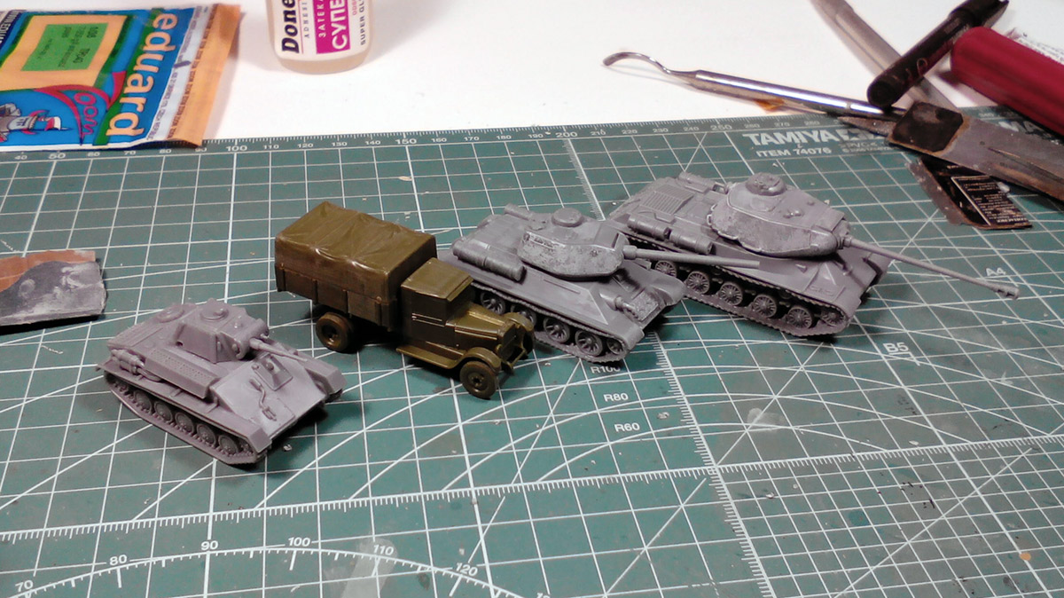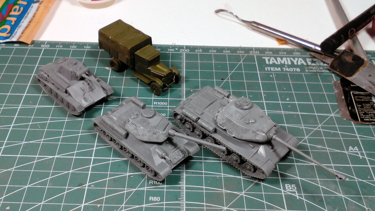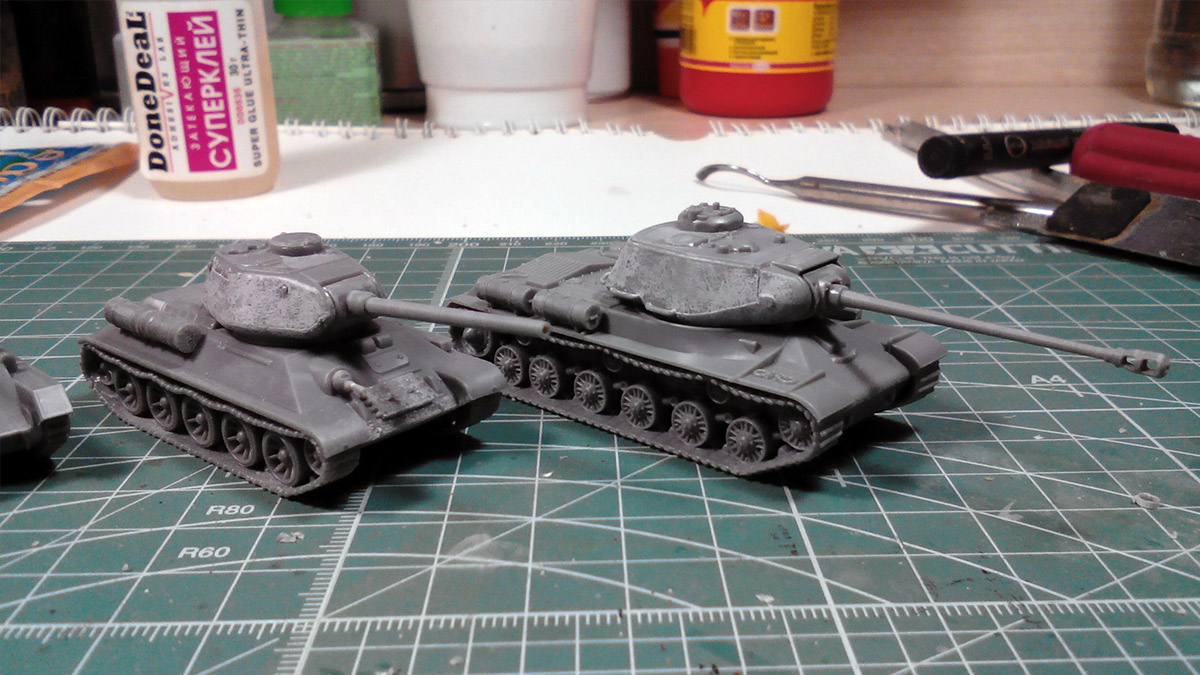 Всем привет, необычные для меня модели. Хороший человек попросил собрать и покрасить, я решил попробовать. Модели танков фирмы "Plastic Soldier", ЗИС-5 от "Звезды". Все "клопы" в масштабе 1/100. Размер впечатляет, размером со спичечный коробок, даже меньше. На сегодня модели собраны (и уже загрунтованы, после фотосессии). Думаю, что за неделю покрашу и затонирую. http://cdn-frm-eu.wargaming.net/wot/ru/uploads/monthly_02_2015/post-4861458-0-37125800-1423469126_thumb.jpghttp://cdn-frm-eu.wargaming.net/wot/ru/uploads/monthly_02_2015/post-4861458-0-18255600-1423469128_thumb.jpghttp://cdn-frm-eu.wargaming.net/wot/ru/uploads/monthly_02_2015/post-4861458-0-35789300-1423469130_thumb.jpghttp://cdn-frm-eu.wargaming.net/wot/ru/uploads/monthly_02_2015/post-4861458-0-15253300-1423469127_thumb.jpghttp://cdn-frm-eu.wargaming.net/wot/ru/uploads/monthly_02_2015/post-4861458-0-14085300-1423469129_thumb.jpg