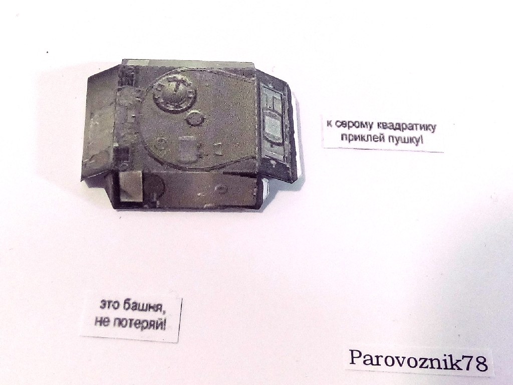 Решил попробовать "слепой" масштаб и хотя результатом не очень доволен, в целом считаю опыт весьма удачным. Что я доработал:-заменил крючья на ВЛД-срезал поручни и заменил на проволочные-сделал скатку (крупноватую, но меньше у меня не получилось) из кусочка латексной перчатки-сделал крепления для траков и крючья на корме (криво, это надо было переделать. Именно из-за того, что не переделал - недоволен итогом)-сделал фару из кусочка проволоки и обточёной зубочистки (по-хорошем утут должен был быть литнки, но когда я взялся за фару оказалось, что я уже выкинул все литники в доме).-сделал антенну из волоса-рассверлил ствол-рассверлил катки-сточил щёку на башне-сточил основание башни-попытался сделать имитацию литья на башне (кмк неудачно). -трак на башне из кусочков пластика Ну а что получилось - можете посмотреть тут: http://cdn-frm-eu.wargaming.net/wot/ru/uploads/monthly_02_2019/post-14930679-0-09857400-1551111212_thumb.jpghttp://cdn-frm-eu.wargaming.net/wot/ru/uploads/monthly_02_2019/post-14930679-0-10052000-1551111322_thumb.jpghttp://cdn-frm-eu.wargaming.net/wot/ru/uploads/monthly_02_2019/post-14930679-0-59606300-1551111226_thumb.jpghttp://cdn-frm-eu.wargaming.net/wot/ru/uploads/monthly_02_2019/post-14930679-0-22728700-1551111230_thumb.jpghttp://cdn-frm-eu.wargaming.net/wot/ru/uploads/monthly_02_2019/post-14930679-0-14735100-1551111236_thumb.jpghttp://cdn-frm-eu.wargaming.net/wot/ru/uploads/monthly_02_2019/post-14930679-0-38814600-1551111252_thumb.jpghttp://cdn-frm-eu.wargaming.net/wot/ru/uploads/monthly_02_2019/post-14930679-0-38221200-1551111256_thumb.jpg