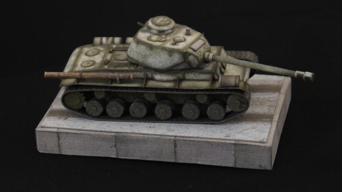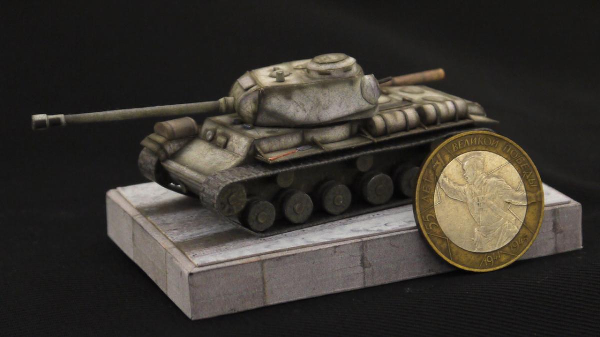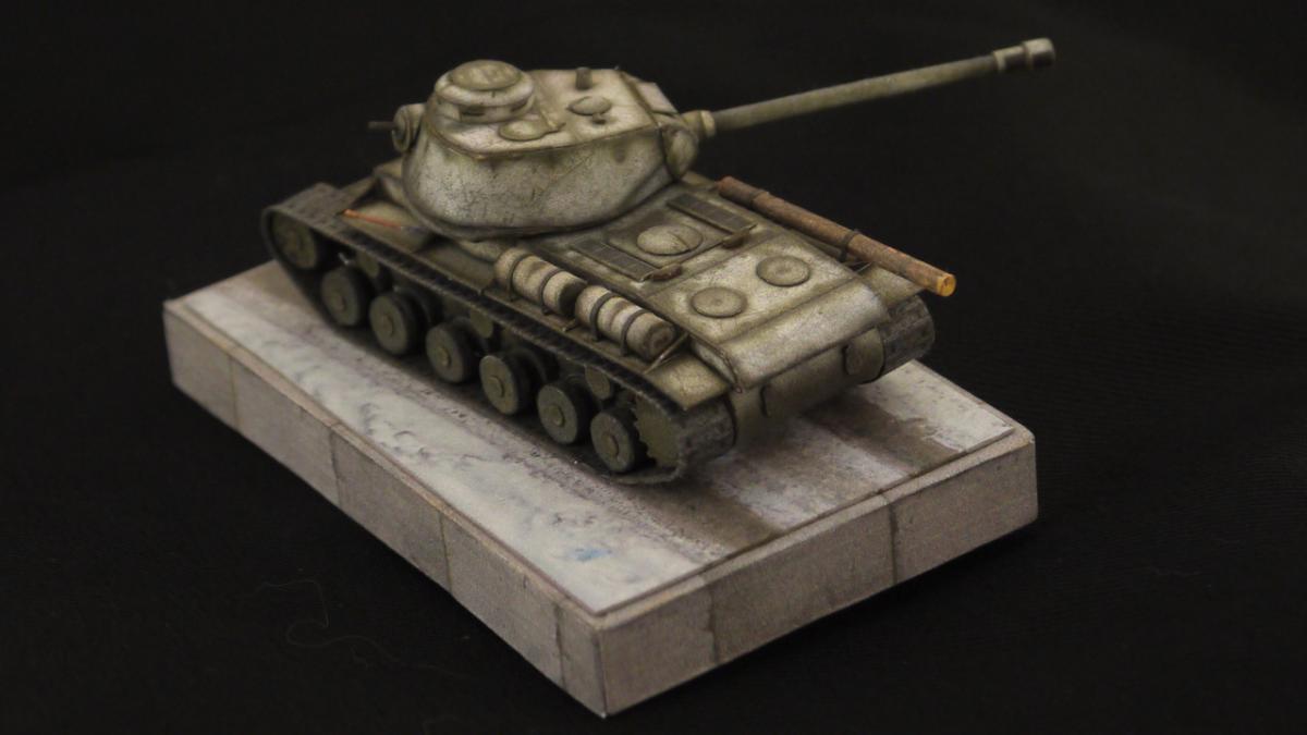 Доброго всем времени осени) Прошло лето, пора собираться на юга, на теплые моря погреться в отпуске. Решил собрать что-нибудь такое, не слишком сложное. Распечатал брошюру с КВ-122, но, чтобы модель занимала меньше места в багаже - масштаб выбрал 1/100. Неделю боролся с брошюрой и со своей фантазией. И все равно потратил чуть больше времени, чем отпуск) Но оно того стоило. Итак, позвольте представить вашему вниманию модель тяжелого танка КВ-122 в зимнем камуфляже (Ленинградский фронт, 1944г.) http://cdn-frm-eu.wargaming.net/wot/ru/uploads/monthly_10_2019/post-34977863-0-52475500-1571067002_thumb.jpg http://cdn-frm-eu.wargaming.net/wot/ru/uploads/monthly_10_2019/post-34977863-0-95670600-1571067016_thumb.jpg http://cdn-frm-eu.wargaming.net/wot/ru/uploads/monthly_10_2019/post-34977863-0-26928100-1571067029_thumb.jpg http://cdn-frm-eu.wargaming.net/wot/ru/uploads/monthly_10_2019/post-34977863-0-01410200-1571067041_thumb.jpg http://cdn-frm-eu.wargaming.net/wot/ru/uploads/monthly_10_2019/post-34977863-0-93987500-1571067051_thumb.jpg http://cdn-frm-eu.wargaming.net/wot/ru/uploads/monthly_10_2019/post-34977863-0-15393500-1571067077_thumb.jpg http://cdn-frm-eu.wargaming.net/wot/ru/uploads/monthly_10_2019/post-34977863-0-93852900-1571067089_thumb.jpg http://cdn-frm-eu.wargaming.net/wot/ru/uploads/monthly_10_2019/post-34977863-0-00462500-1571067103_thumb.jpg http://cdn-frm-eu.wargaming.net/wot/ru/uploads/monthly_10_2019/post-34977863-0-95757900-1571067114_thumb.jpg Для представления масштабов: http://cdn-frm-eu.wargaming.net/wot/ru/uploads/monthly_10_2019/post-34977863-0-95404000-1571067125_thumb.jpg И, по традиции, несколько фото рабочего процесса: http://cdn-frm-eu.wargaming.net/wot/ru/uploads/monthly_10_2019/post-34977863-0-67667700-1571067180_thumb.jpg http://cdn-frm-eu.wargaming.net/wot/ru/uploads/monthly_10_2019/post-34977863-0-08989600-1571067193_thumb.jpg http://cdn-frm-eu.wargaming.net/wot/ru/uploads/monthly_10_2019/post-34977863-0-23977200-1571067207_thumb.jpg Для того чтобы модель смотрелась более интересно от себя добавил: - приборы наблюдения на корпусе и башне; - катки разделил; - брезент (из брошюры ИС-2); - бревно (из брошюры ИС-2); - одно крыло оторвал (будем считать - боевая потеря); - Лопата (из брошюры ИС-4). С башней пришлось повозиться. Три раза ее переделывал. То забыл одну деталь приклеить, то не сошлась геометрия. Так же задумывал в начале взять бумажную диораму, но она не подошла по масштабу. Так что с этим масштабом еще один проект намечается. Спасибо за внимание. Продолжение следует.