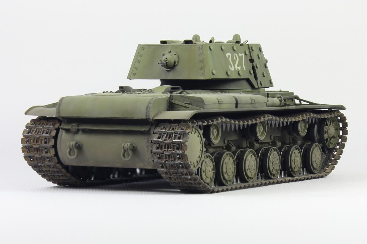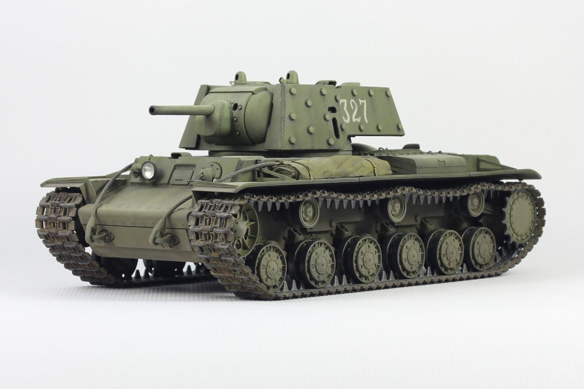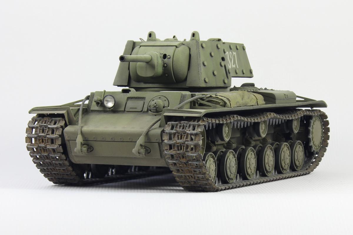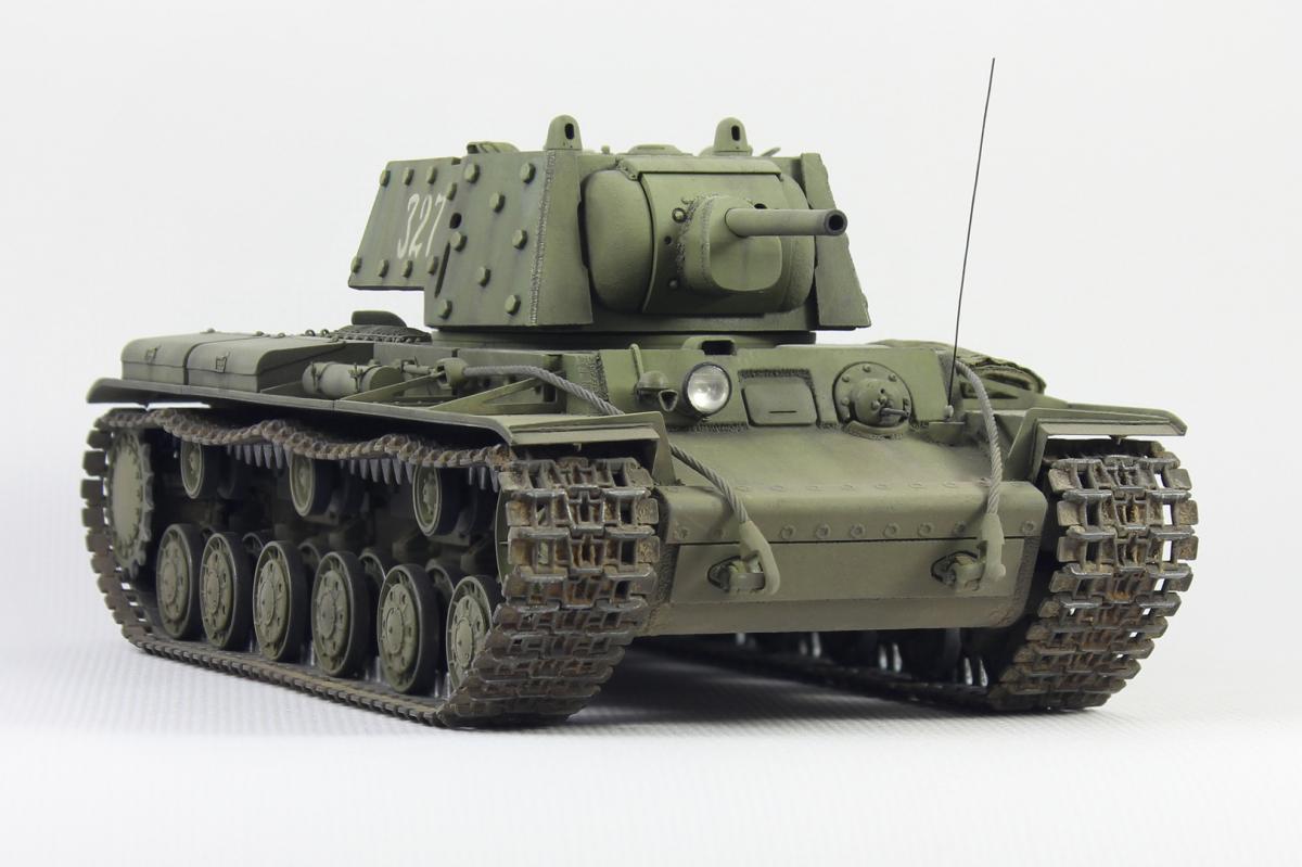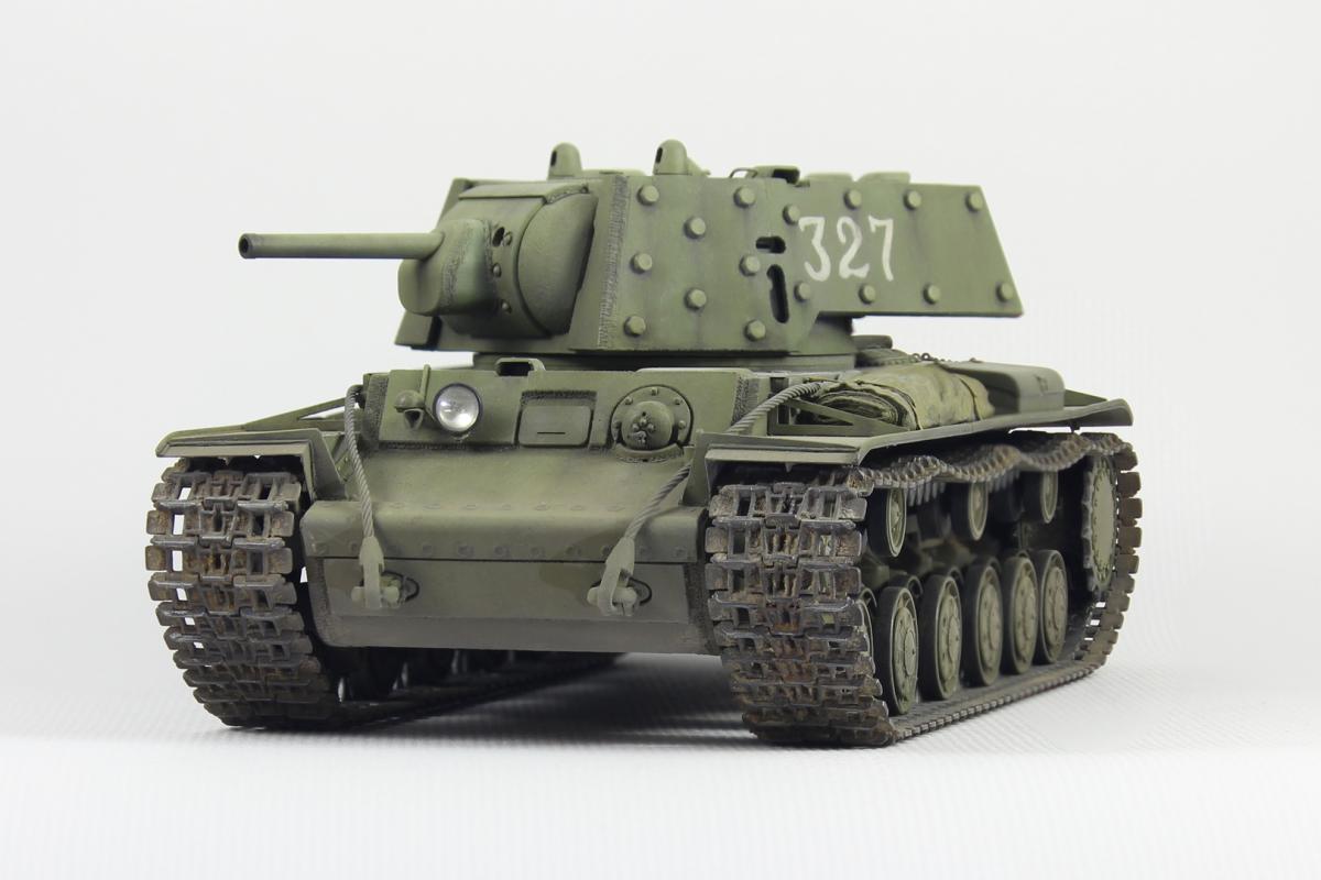 Здравствуйте. Представляю Вашему вниманию модель экранированного танка КВ-1 (КВ-1Э) от Trumpeter в масштабе 1/35. Доработки и дополнения стандартные для этой модели - немного фототравления, фара Эльф, медный тросик, металлический ствол и подручные материалы. Красил модель акрилом, тонировал маслом и пигментами. В качестве прототипа выбрал танк с номером 327.