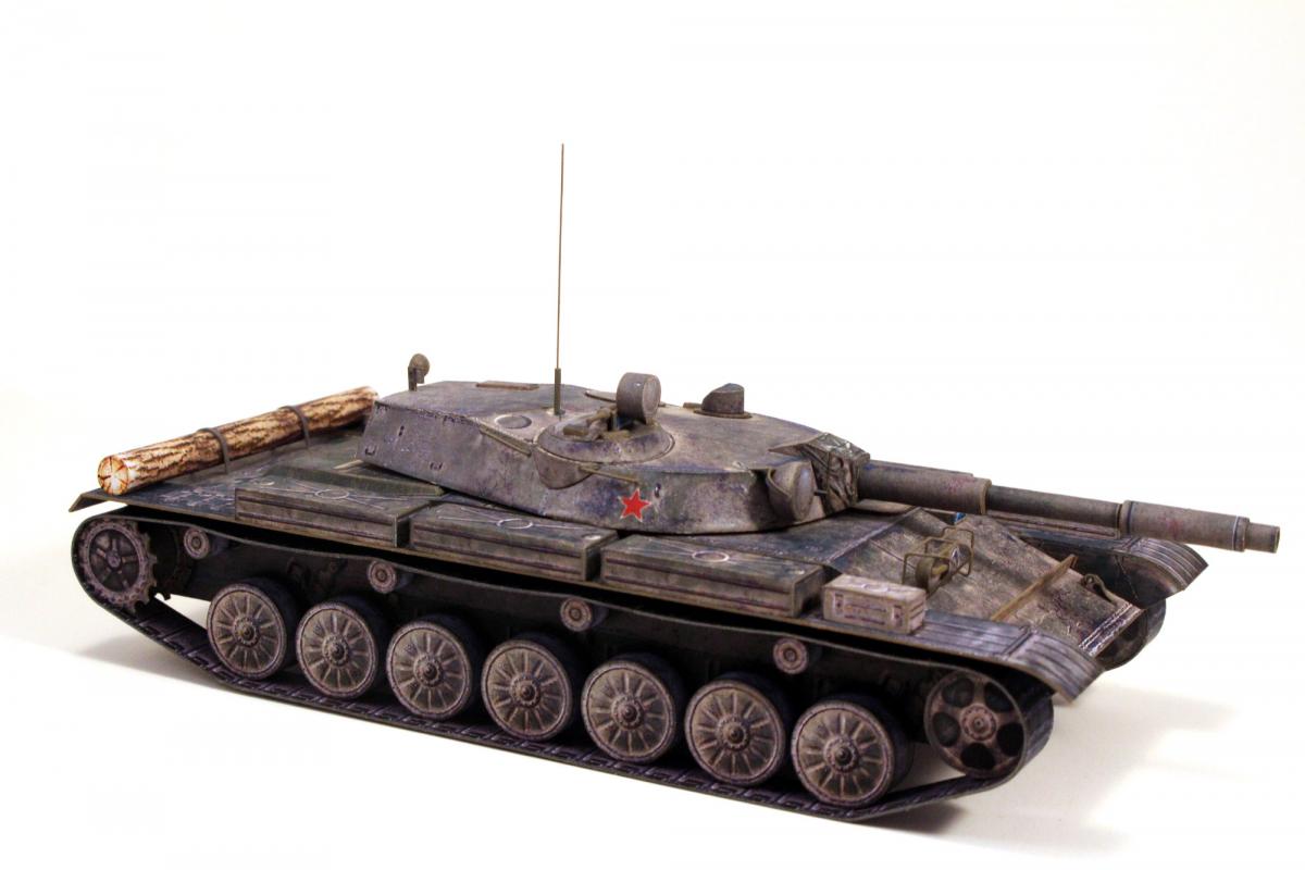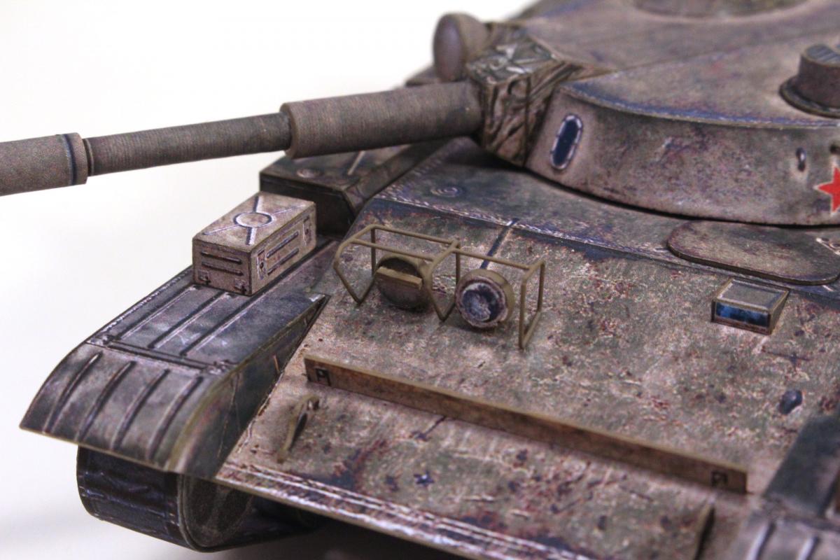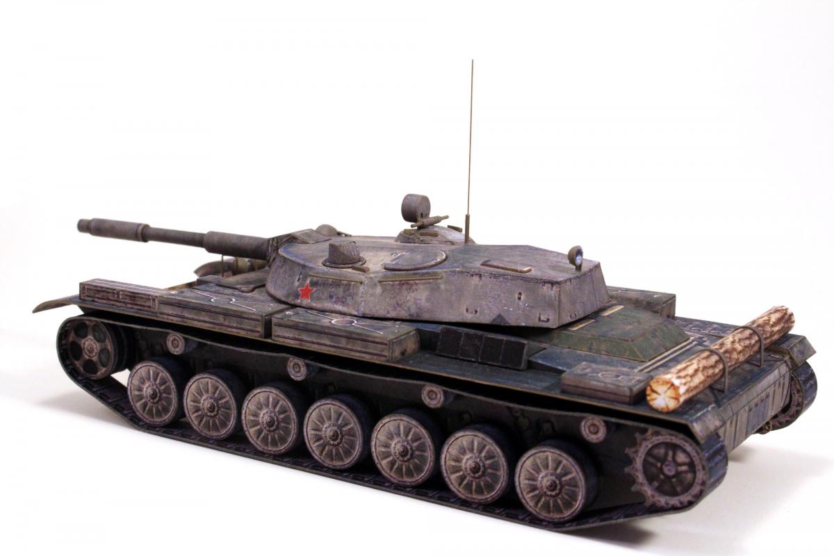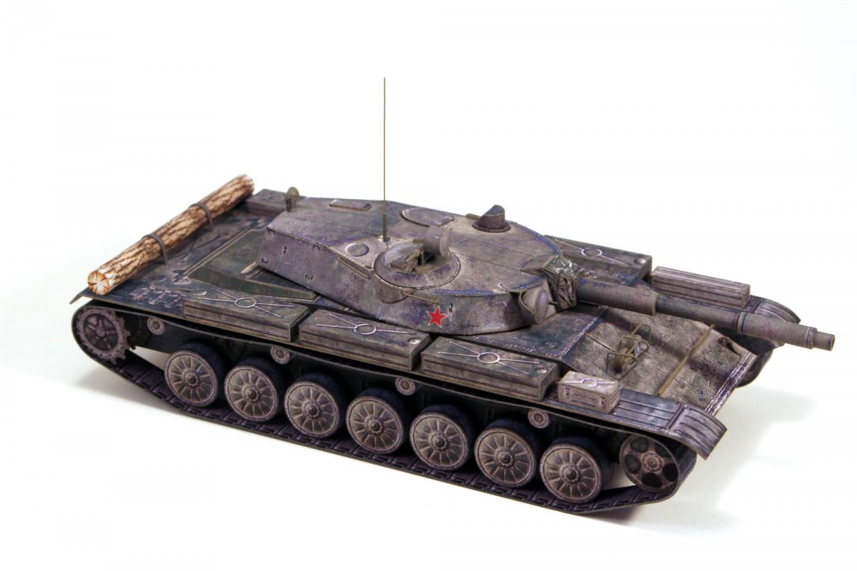 Доброго времени суток! Представляю модель первого серийного танка с гладкоствольной пушкой и, по совместительству, последнего среднего танка СССР - танка Т-62. Модель выполнена из бумаги по китайской развертке, уменьшенной до масштаба 1:50, с небольшими доработками и изменениями. Красил кистью, акрилом от "Звезды".