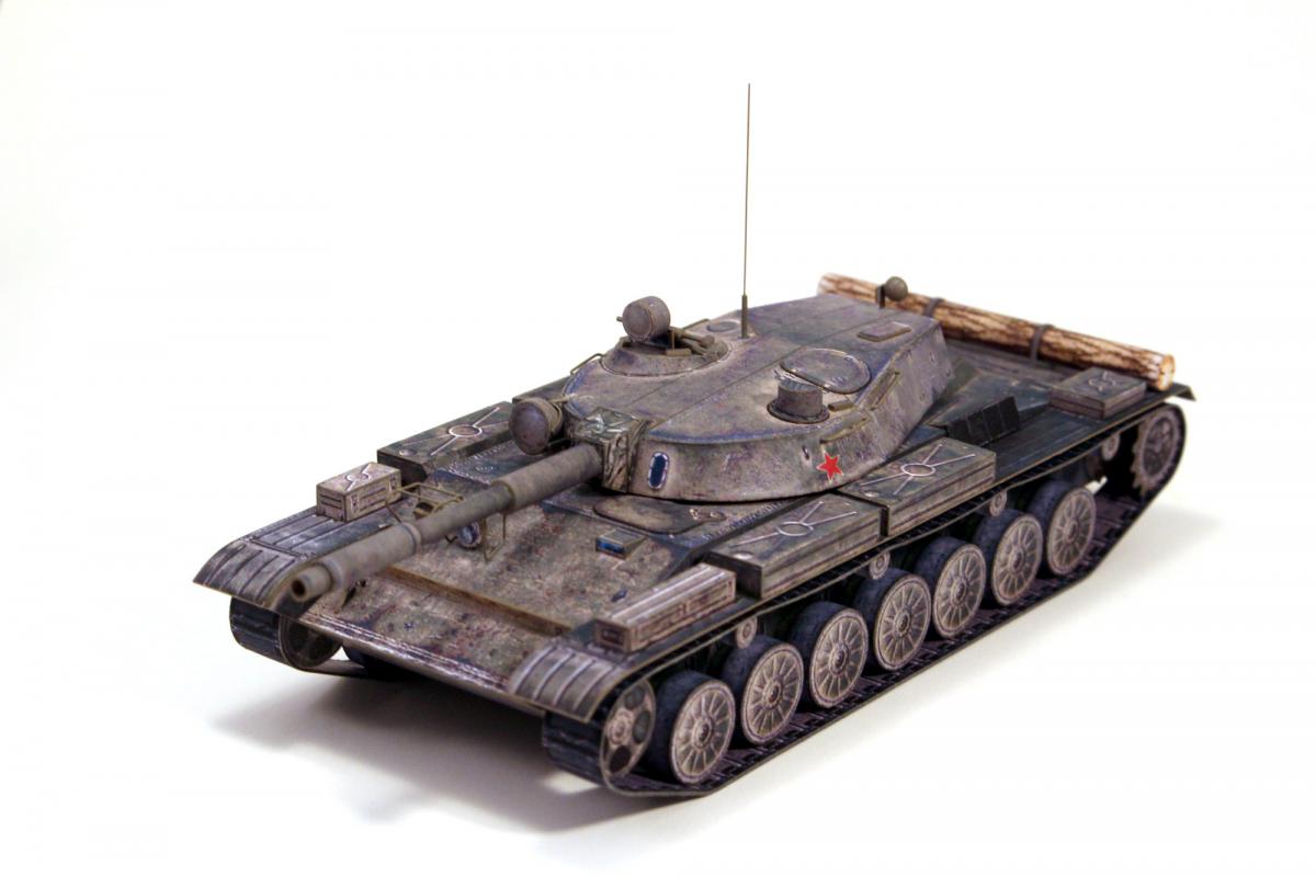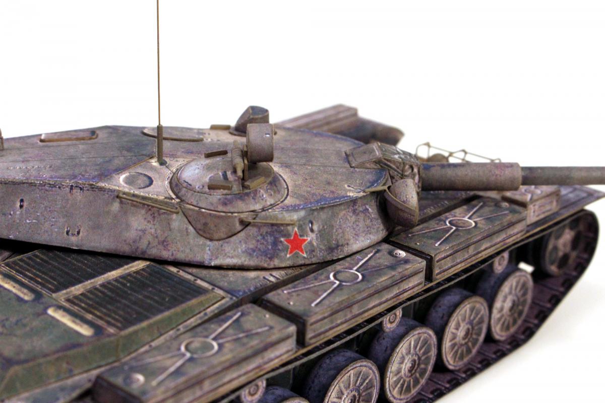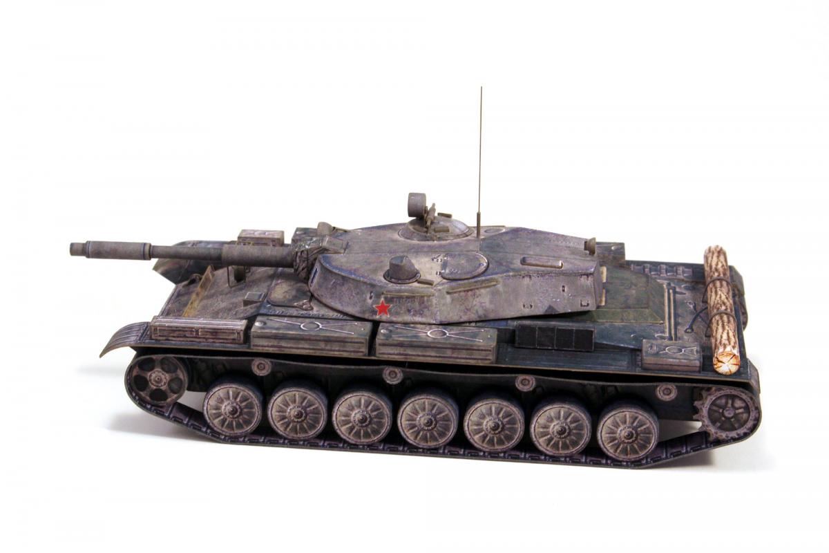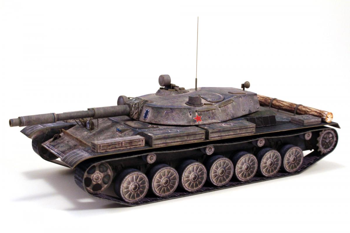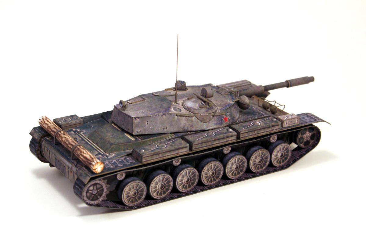 Доброго времени суток! Представляю модель первого серийного танка с гладкоствольной пушкой и, по совместительству, последнего среднего танка СССР - танка Т-62. Модель выполнена из бумаги по китайской развертке, уменьшенной до масштаба 1:50, с небольшими доработками и изменениями. Красил кистью, акрилом от "Звезды".