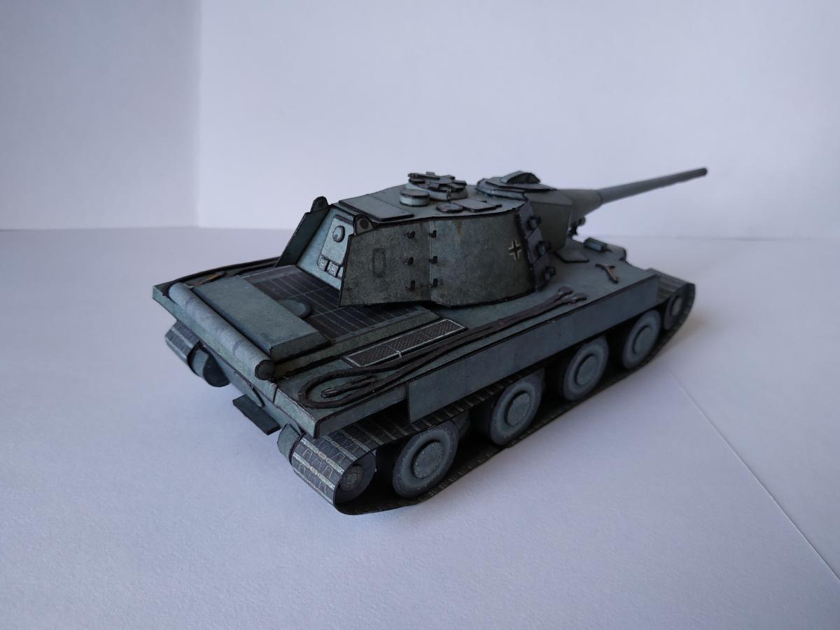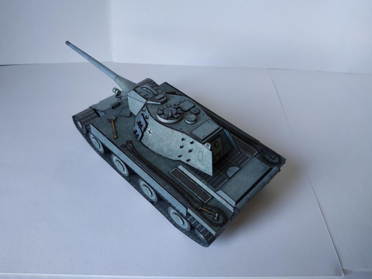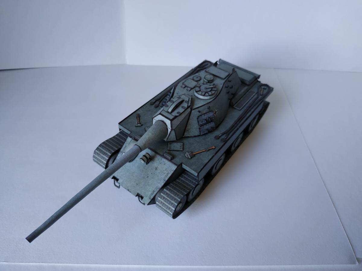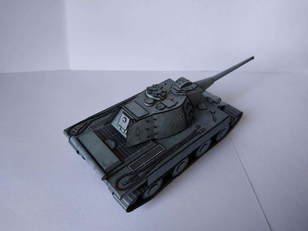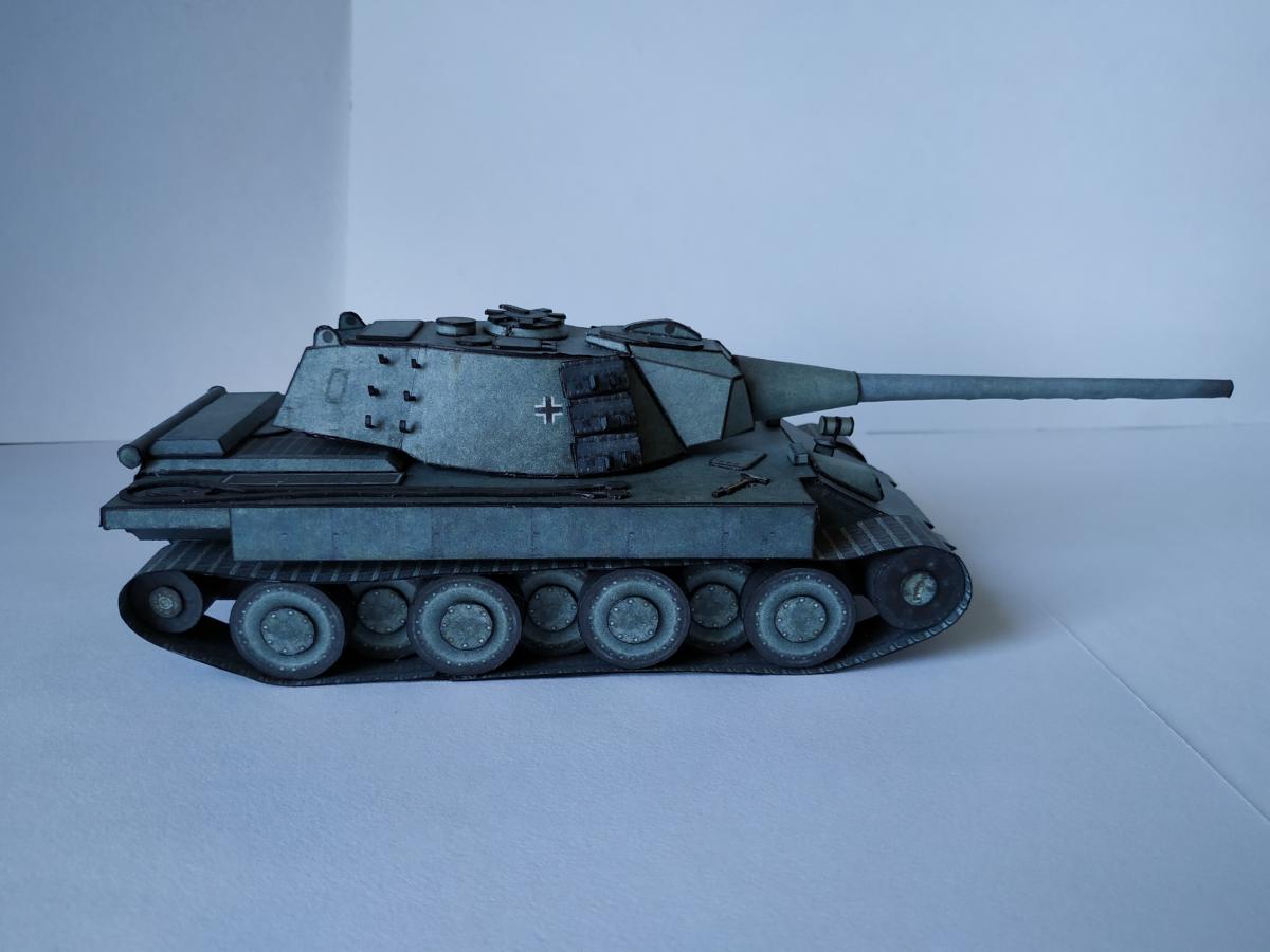 Ну позвольте представить E-79 ausf B. Почему В? Потому, что в конструкцию внесены некоторые изменения, так например упрощенная маска (добавлены клапана упрощающие склейку) и немного уменьшена длинна орудия (собрать такую удочку, которая была в оригинале, даже из офиски мне не удалось). Немного упростил конструкцию бортов (наклонная фаска на большой длине это нечто). Бортовые экраны пришлось использовать, так как ухитрился взять модель не очень сухой рукой-краска поплыла, но мне кажется вписалось неплохо. Ну и в целом немного переделал корпус-мне кажется изначально конструкция была переусложнена. Добавлена фара от КТ от WoT, траки на башне от него жеЗ.Ы. Корпус дважды переделывал с нуля З.Ы. 1. Написано масштаб 1:50, но мне кажется машина немного крупнее. Вот тут краткая история и ТТХ http://cdn-frm-eu.wargaming.net/wot/ru/uploads/monthly_09_2019/post-1087-0-62316900-1567449737_thumb.jpg http://cdn-frm-eu.wargaming.net/wot/ru/uploads/monthly_09_2019/post-1087-0-78585700-1567449923_thumb.jpg http://cdn-frm-eu.wargaming.net/wot/ru/uploads/monthly_09_2019/post-1087-0-65462600-1567449938_thumb.jpg http://cdn-frm-eu.wargaming.net/wot/ru/uploads/monthly_09_2019/post-1087-0-17786200-1567449957_thumb.jpg http://cdn-frm-eu.wargaming.net/wot/ru/uploads/monthly_09_2019/post-1087-0-07982300-1567449971_thumb.jpg http://cdn-frm-eu.wargaming.net/wot/ru/uploads/monthly_09_2019/post-1087-0-54403500-1567449985_thumb.jpg http://cdn-frm-eu.wargaming.net/wot/ru/uploads/monthly_09_2019/post-1087-0-90518100-1567449998_thumb.jpg http://cdn-frm-eu.wargaming.net/wot/ru/uploads/monthly_09_2019/post-1087-0-67478500-1567450017_thumb.jpg http://cdn-frm-eu.wargaming.net/wot/ru/uploads/monthly_09_2019/post-1087-0-65971200-1567450031_thumb.jpg http://cdn-frm-eu.wargaming.net/wot/ru/uploads/monthly_09_2019/post-1087-0-25657000-1567450060_thumb.jpg http://cdn-frm-eu.wargaming.net/wot/ru/uploads/monthly_09_2019/post-1087-0-83493600-1567450076_thumb.jpg http://cdn-frm-eu.wargaming.net/wot/ru/uploads/monthly_09_2019/post-1087-0-99230000-1567450093_thumb.jpg http://cdn-frm-eu.wargaming.net/wot/ru/uploads/monthly_09_2019/post-1087-0-45909200-1567450107_thumb.jpg