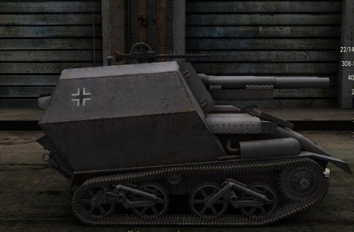 Изменения в патче 1.9: Немецкая САУ 2 уровня, разработанная на базе английского легкого танка Мk. VI. 1.1 Игровые скриншоты 1.2 Историческая справка:1.3 Модули:1.4 ТТХ:1.5 Вооружение:1.6 Плюсы и минусы данного танка:1.7 Снаряды(вся информация):1.8 Тактика применения.