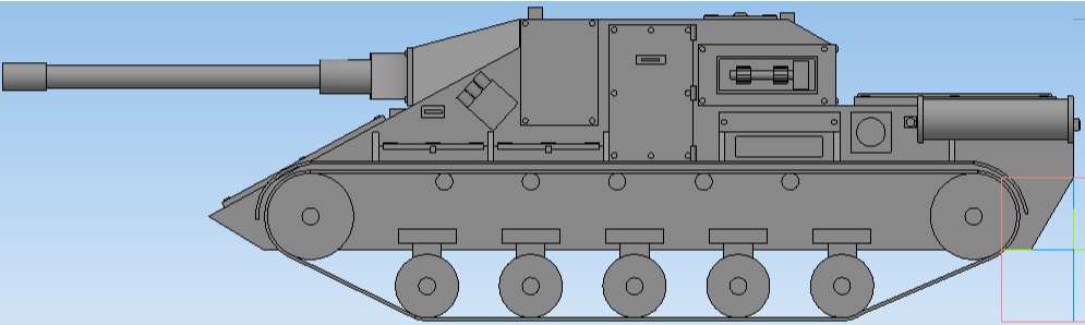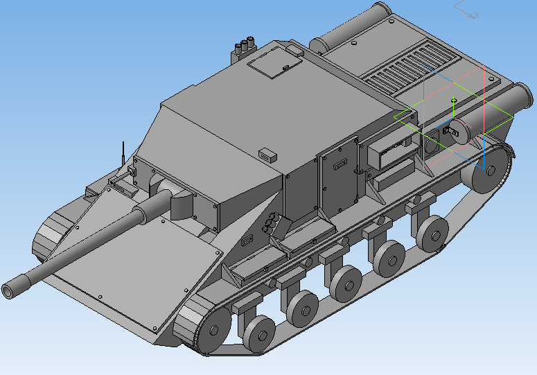 На сегодня последнее моё творение это ПТ-САУ с 152мм орудием! P.s. Извиняюсь, что это не могу делать скриншот модели из-за место выполнения данной работы.