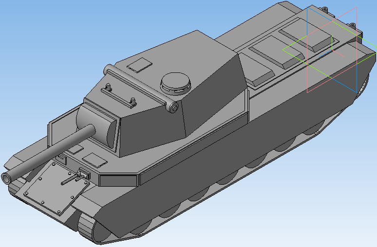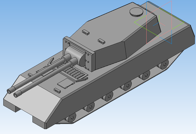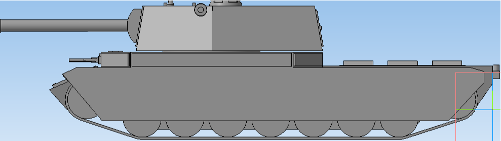 Всем привет) я сегодня вам представлю очередной сверхтяжелую машину. Это машина ограничена огневой мощностью за большого двигателя в задней части. У машины имеются две башни, вспомогательная башня и главной башня. Вспомогательная башня стреляет бронебойными и кумулятивными снарядами, на данную башню установлен усиленные приборы наблюдения с биноклем, что даёт дополнительный обзор к основному обзору на главной башни. А сама главная башня имеет противотанковое орудие, которая стреляет осколочно-фугасными и подкалиберными снарядами. Элемент, которого нет в игре...и в это ракетная установка (которая не предусмотрено в игре и нет его), она работает как артиллерия по навесной траектории полета и если попадает в танк, то он оглушает экипаж и наносит небольшой урон и привод к критичным повреждениям модулей танка.