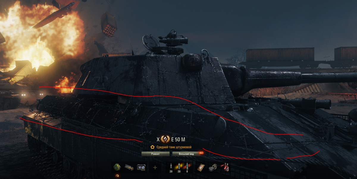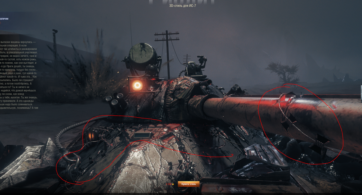 Доброго времени суток всем! Назрел вопрос почему на данном стиле (3D-стиль Риолит на ИС-7) такое "некачественное" отображение колючей проволоки, настройки графики на "Ультра". Модов не было установлено. Все-таки цена за него 4500 и хотелось бы качественного продукта от разработчиков. Можно ли передать эту информацию чтобы Ваши коллеги доделали или переделали стиль. Например, в прошлый ивент на том же 3D-стиле на Е-50М колючая проволокуа сделана качественно. Скрины в спойлере