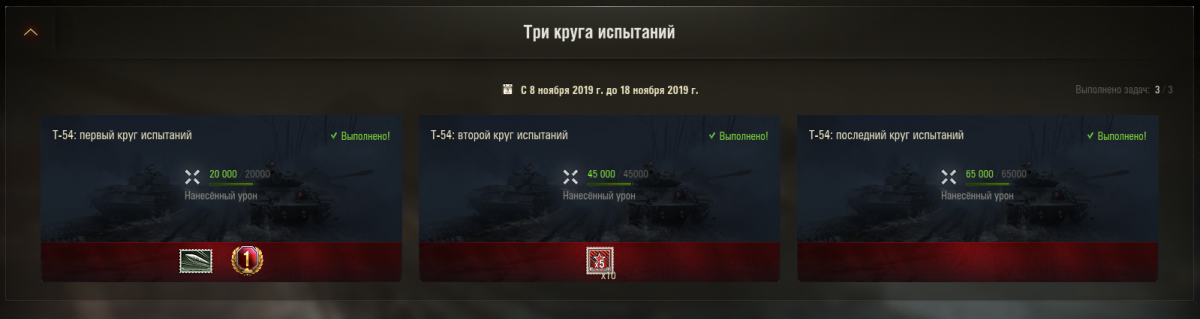 Здравствуйте. Выполнена вторая ветка "Темного похода" ("Три круга испытаний" ), для танка Т-54, который не исследован. За первые 2 задания награды получены, а за третье- пусто. Думала что 3D-стиль будет вручен, но использовать его можно будет лишь после изучения Т-54, но его нет в ангаре. Или его начислят позже? Спасибо за ответ.