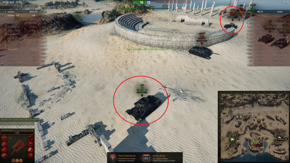 Видимо в версии 9.9 не обошлось без сюрпризов. Как вы видите уничтоженный так Т-46.. Или фиг его знает кому верить, сгоревшему танку или столбцу слева в котором определенно видно что Т-46 еще живой! Если это вас не вдохновляет, то возьмем в пример, вражеский АМХ 38, тоже скорее всего уничтоженный, среди всех своих погибших союзников каким то образом имеет статус живого в столбце... По идее танк уничтожен (АМХ 38) но бой не заканчивался, пришлось закончить бой захватом базы...)))