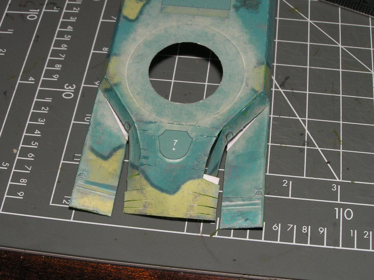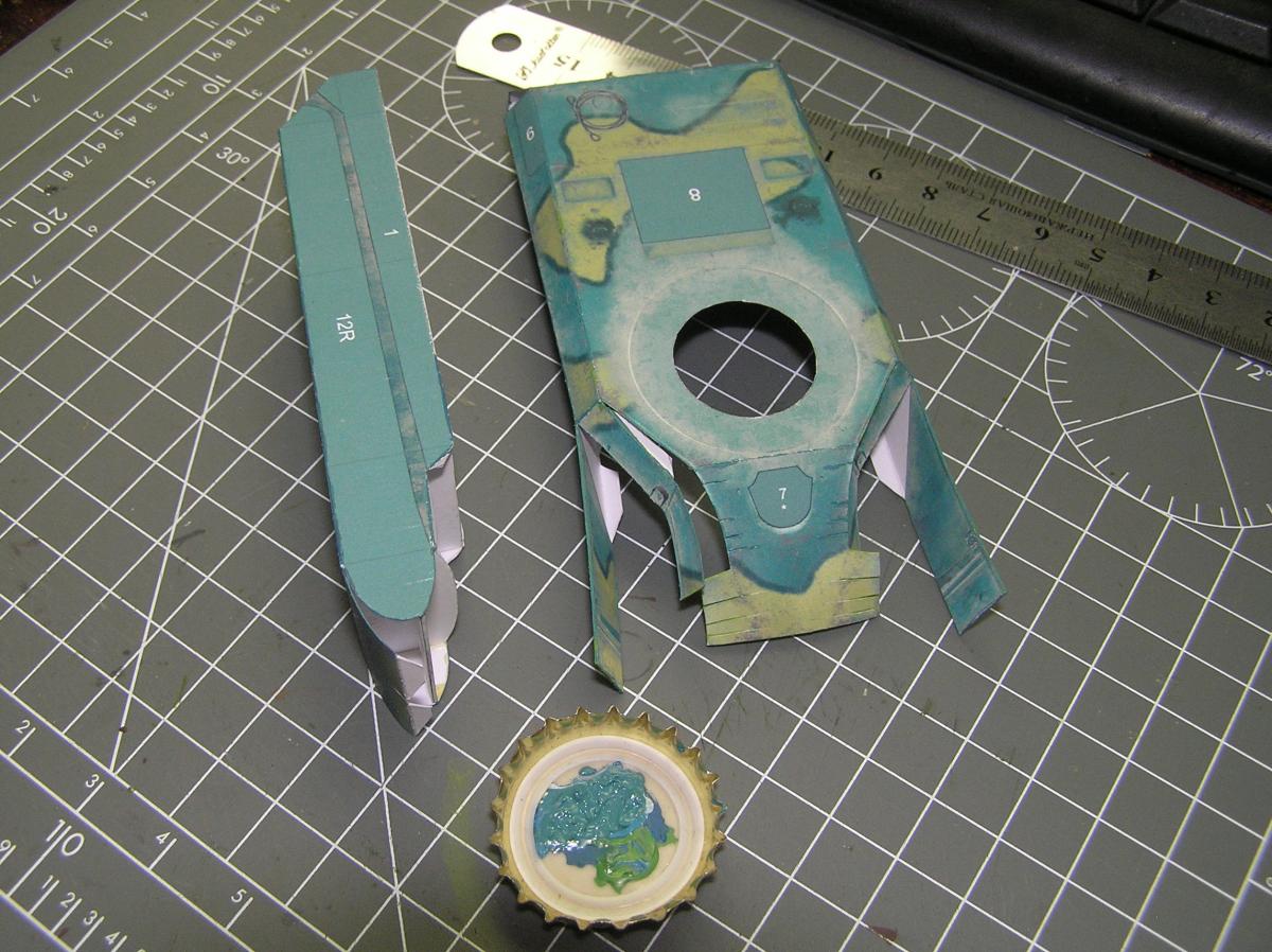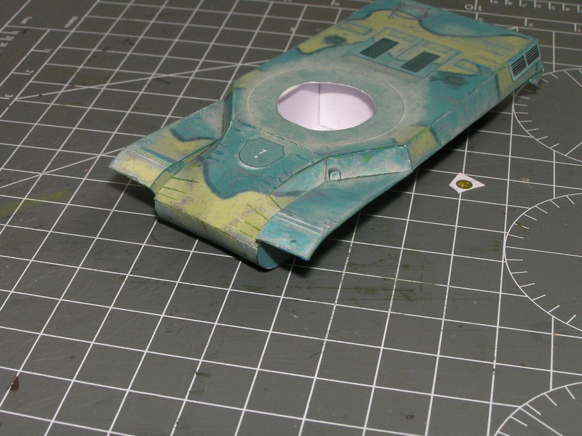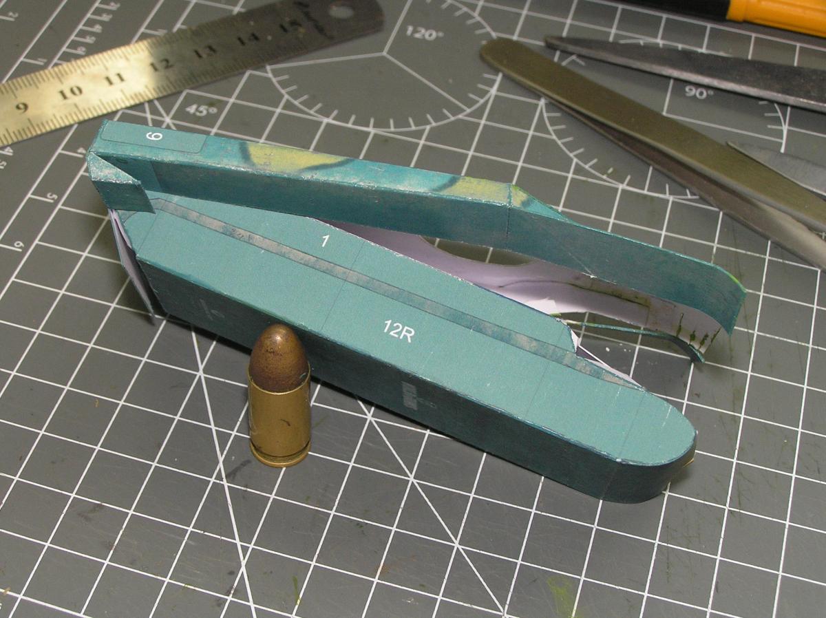 http://cdn-frm-eu.wargaming.net/wot/ru/uploads/monthly_10_2015/post-4861458-0-94382300-1445345369.jpg Всем привет! Собираем вместе модель танка "AMX 50 B. Бронекоробочка" (автор Targo_Kain, стиль изложения сохранен). Рекомендуем перед началом сборки ознакомиться с статьей о инструментах и материалах для бумажного моделизма. Автор и его полезные советы уже известны по статьям по сборке моделей: "Японский Тигр", танка Т-54, ИС-2 и ПТ-САУ: Charioteer, но есть и новые полезные нюансы: 1 http://cdn-frm-eu.wargaming.net/wot/ru/uploads/monthly_10_2015/post-4861458-0-84110200-1445348311_thumb.jpg Начнём, как обычно, с "чистого листа". А точнее, возьмём несколько листов плотной бумаги 180 г/м и распечатаем развёртки модели. 2 http://cdn-frm-eu.wargaming.net/wot/ru/uploads/monthly_10_2015/post-4861458-0-18485100-1445348314_thumb.jpg Первым делом - корпус. У этого танка он не совсем простой. Ванна корпуса на фото уже почти собрана, тут всё как обычно – на ровной поверхности вклеим силовые элементы. И приступим к верхней части – это деталь 1. Сделаем все надрезы, линии сгиба и подкрасим торцы. На фото видна крышечка с краской – это я смешивал краски, ярко синюю и ярко зелёную дабы добиться нужного оттенка – в нашей игре у французов весьма занятный зелёный цвет с бирюзовым отливом. 3 http://cdn-frm-eu.wargaming.net/wot/ru/uploads/monthly_10_2015/post-4861458-0-17802400-1445348315_thumb.jpg На этом фото видно что ВЛД детали 1 придана слегка округлая форма – прокатываем стальным шариком или чем то похожим для придания формы и что бы сошлись боковые надрезы на ВЛД. 4 http://cdn-frm-eu.wargaming.net/wot/ru/uploads/monthly_10_2015/post-4861458-0-16578900-1445348316_thumb.jpg Всё та же деталь 1, показана боковая внутренняя подклейка под ВЛД для того чтобы ровно приклеить «щёку» ВЛД – на фото справа, между левым крылом и левой стороной ВЛД. 5 http://cdn-frm-eu.wargaming.net/wot/ru/uploads/monthly_10_2015/post-4861458-0-30936700-1445348317_thumb.jpg Деталь 1, вид изнутри на ВЛД, одна «щека» (по фото - слева) ВЛД подклеена на внутреннюю склейку. 6 http://cdn-frm-eu.wargaming.net/wot/ru/uploads/monthly_10_2015/post-4861458-0-79514000-1445348319_thumb.jpg Подклейка изнутри детали 1 задней части «щеки» ВЛД. 7 http://cdn-frm-eu.wargaming.net/wot/ru/uploads/monthly_10_2015/post-4861458-0-65384400-1445348320_thumb.jpg Обе «щёки» ВЛД приклеены. Получаем характерную "округлость" передней части. 8 http://cdn-frm-eu.wargaming.net/wot/ru/uploads/monthly_10_2015/post-4861458-0-85865500-1445348321_thumb.jpg Деталь 1, приклеиваем заднюю часть надгусеничных полок к заднему листу МТО. Это задаст нам ровное направление полок, чтобы избегжать «винтов». 9 http://cdn-frm-eu.wargaming.net/wot/ru/uploads/monthly_10_2015/post-4861458-0-18304000-1445348323_thumb.jpg Тоже, что и на фото 08, вид сбоку. 10 http://cdn-frm-eu.wargaming.net/wot/ru/uploads/monthly_10_2015/post-4861458-0-15971900-1445348324_thumb.jpg Прикладываем ВЛД к нижней части корпуса, прикидываем, как будем приклеивать. 11 http://cdn-frm-eu.wargaming.net/wot/ru/uploads/monthly_10_2015/post-4861458-0-16648100-1445348325_thumb.jpg Тоже, что на фото 09, вид с другого борта – проверяем, ровно ли всё село. Видно подклейки «щёк» ВЛД и уже склеенные между собой разрезы на ВЛД. 12 http://cdn-frm-eu.wargaming.net/wot/ru/uploads/monthly_10_2015/post-4861458-0-32821600-1445348326_thumb.jpg Ну вроде всё ровно, можно клеить дальше 13 http://cdn-frm-eu.wargaming.net/wot/ru/uploads/monthly_10_2015/post-4861458-0-65607400-1445348327_thumb.jpg ВЛД детали 1 приклеено к детали 2, боковыми сторонами, спереди шов-стык ВЛД и НЛД приклеим в последний момент. 14 http://cdn-frm-eu.wargaming.net/wot/ru/uploads/monthly_10_2015/post-4861458-0-90999400-1445348328_thumb.jpg Под крылья (дет 1, продолжение низа надгусеничных полок) приклеили детали 5R и 5L. 15 http://cdn-frm-eu.wargaming.net/wot/ru/uploads/monthly_10_2015/post-4861458-0-18724500-1445348330_thumb.jpg А теперь склеиваем стык ВЛД и НЛД спереди. 16 http://cdn-frm-eu.wargaming.net/wot/ru/uploads/monthly_10_2015/post-4861458-0-20039000-1445348331_thumb.jpg После стыка ВЛД и НЛД приклеим крылья к корпусу. Всё, корпус готов! Склейку в таком порядке, как на цеп
