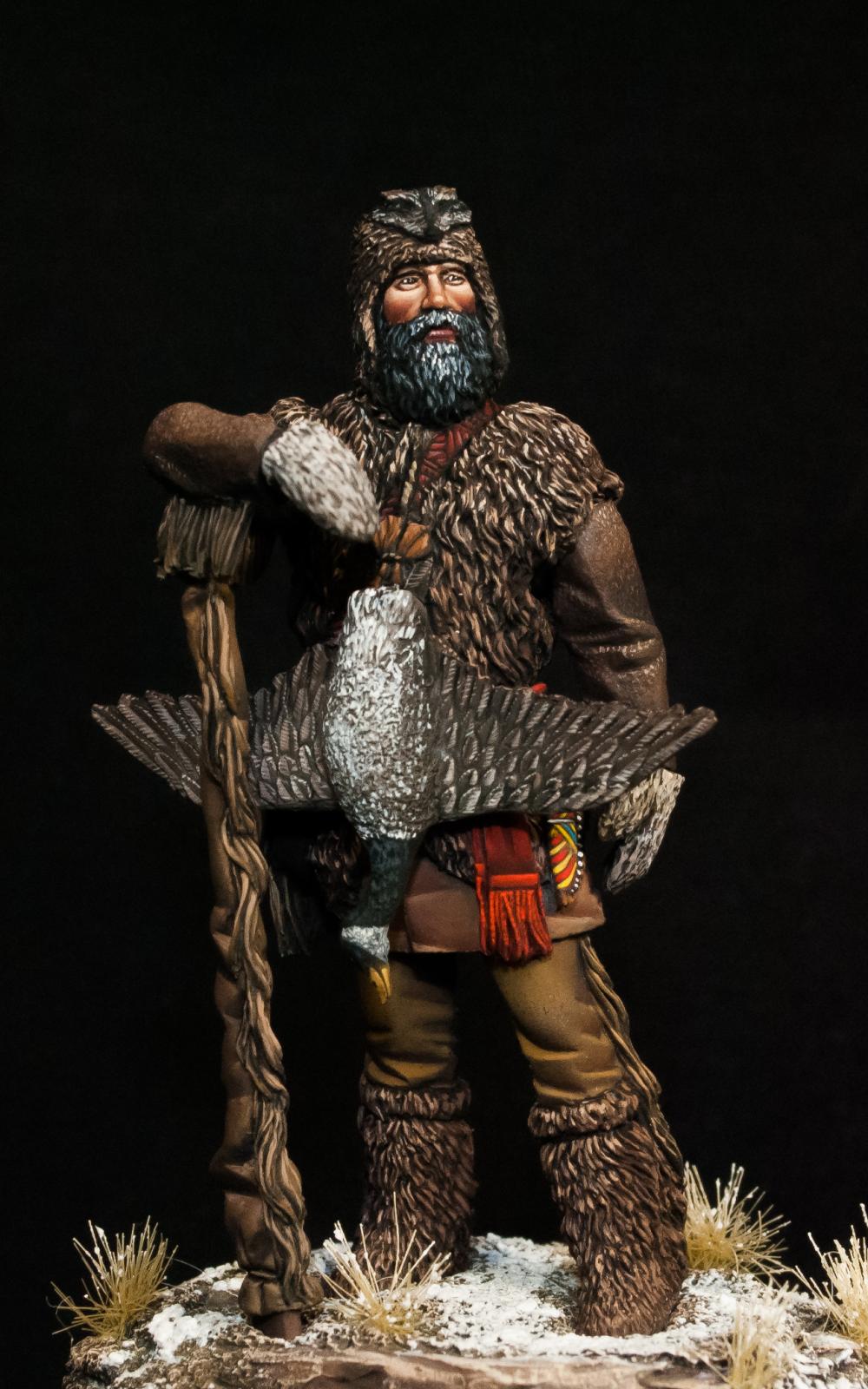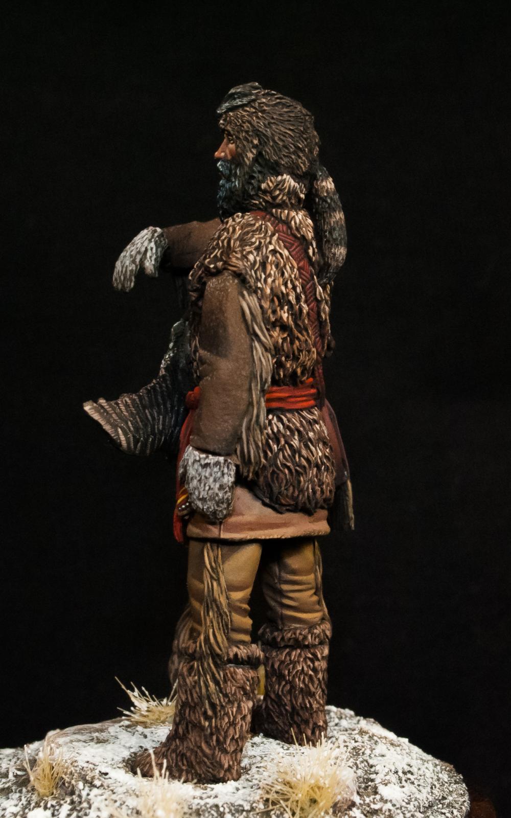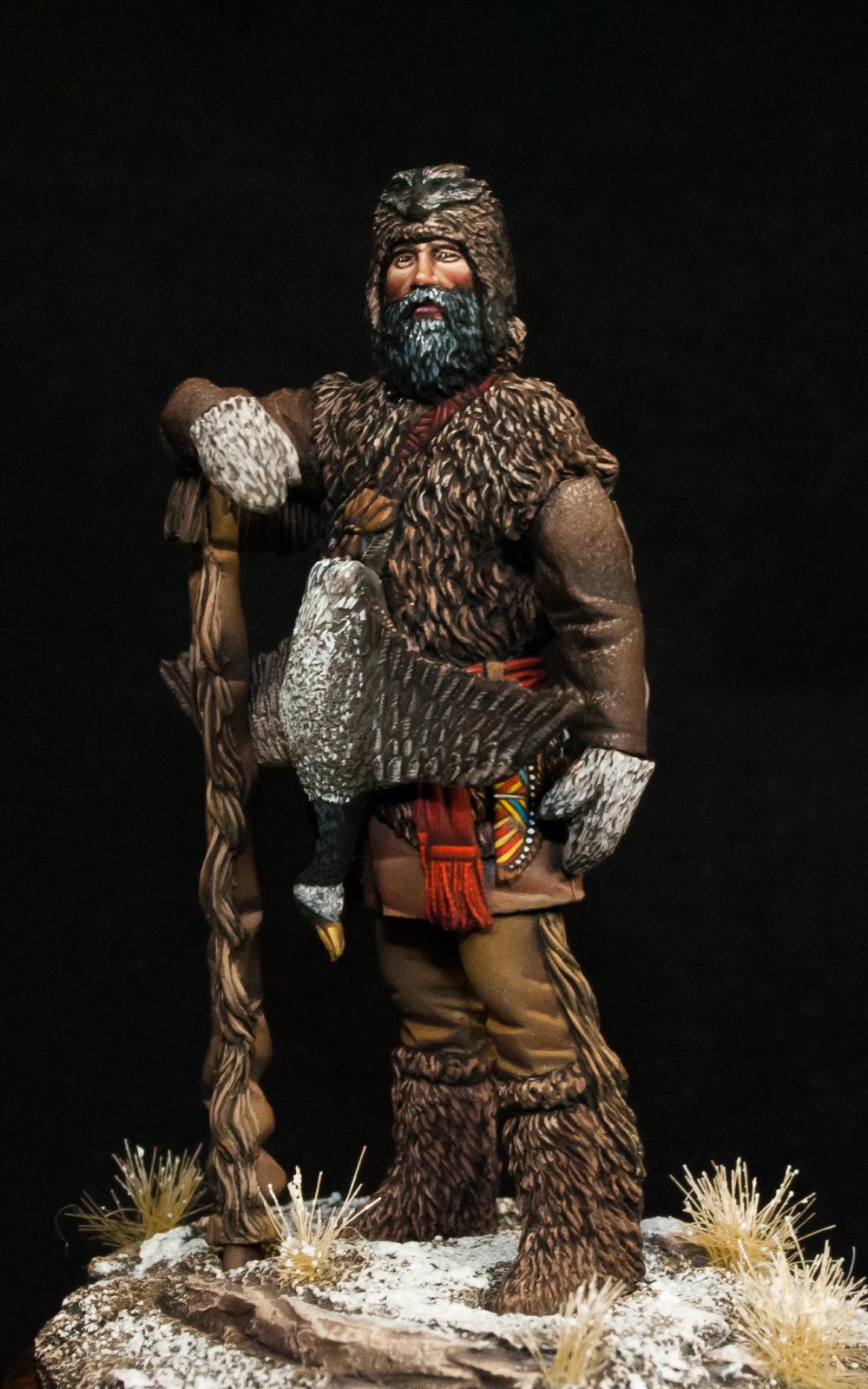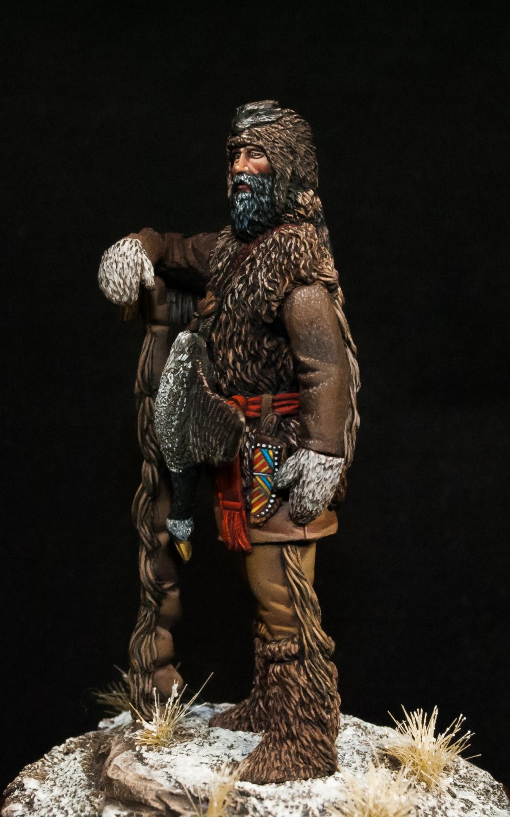 Траппер - охотник на пушных зверей в Северной Америке.Охота на пушных зверей была особенно развита в Северной Америке с начала её освоения европейцами и до XIX века, так как мех был одним из основных предметов торговли и экспорта. Новинка от отечественной фирмы - Altores Studio. Смола, 54мм.