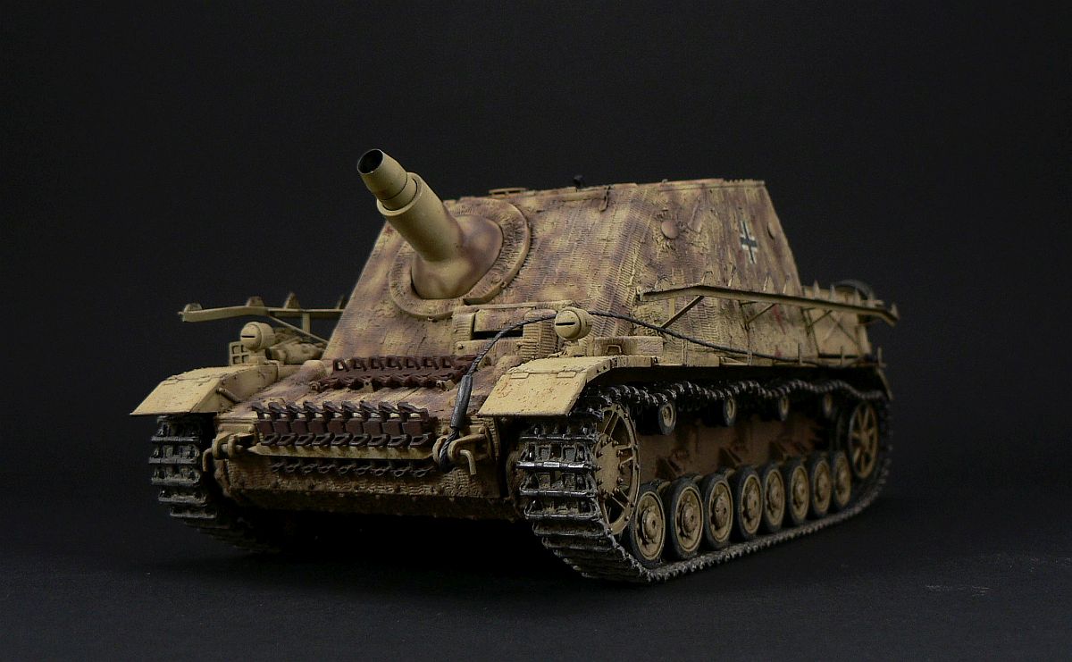 Всем привет! Крайння работа, штурмовая САУ Brummbar от Драгона. Сам набор очень хорош! Версия 2в1, имеет 2 корпуса на выбор (с зиммеритом и без) Собрал почти из коробки, добавил только ствол Абер и шурцены от Едуарда, ну и заменил унылые ДС траки на наборные. Красил акрилами Ганза и Тамия, визеринг химией АК и маслом.