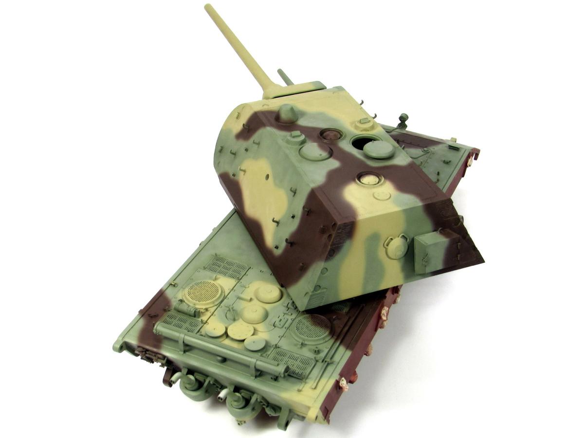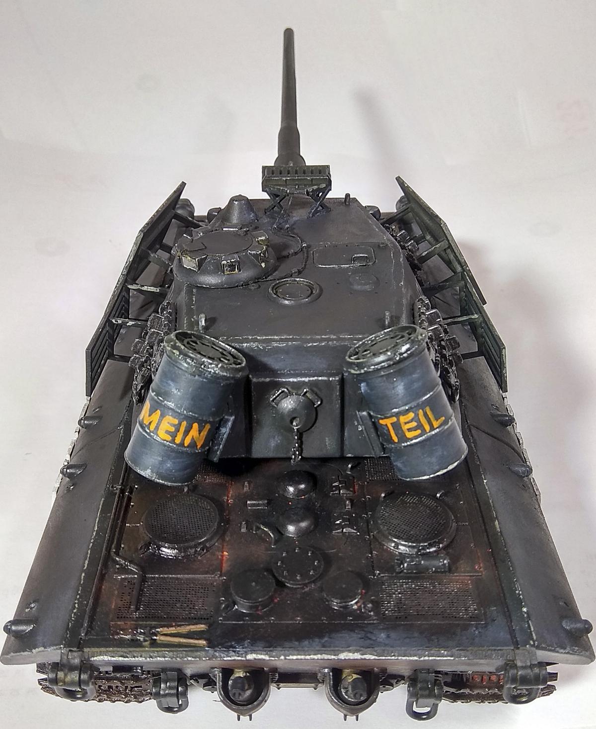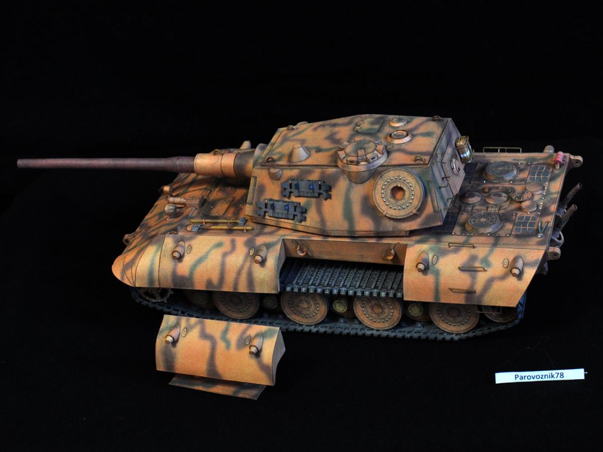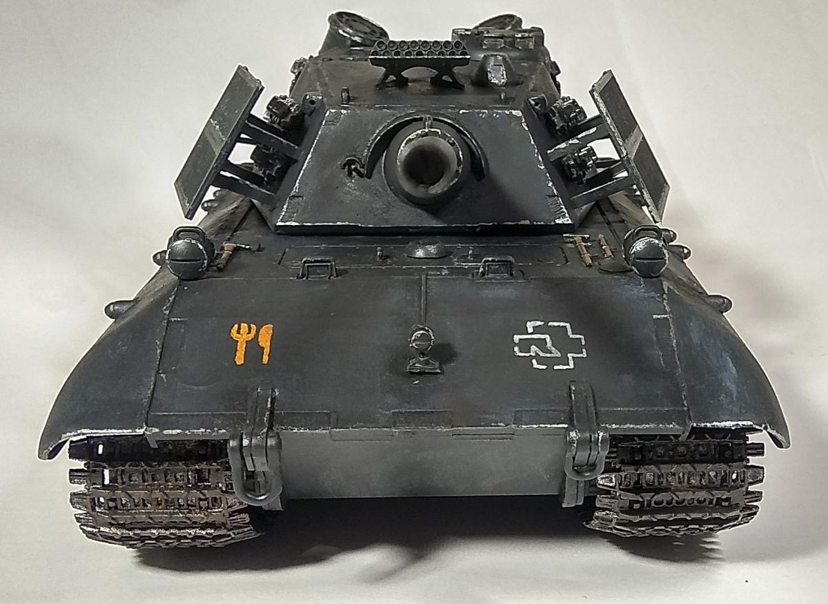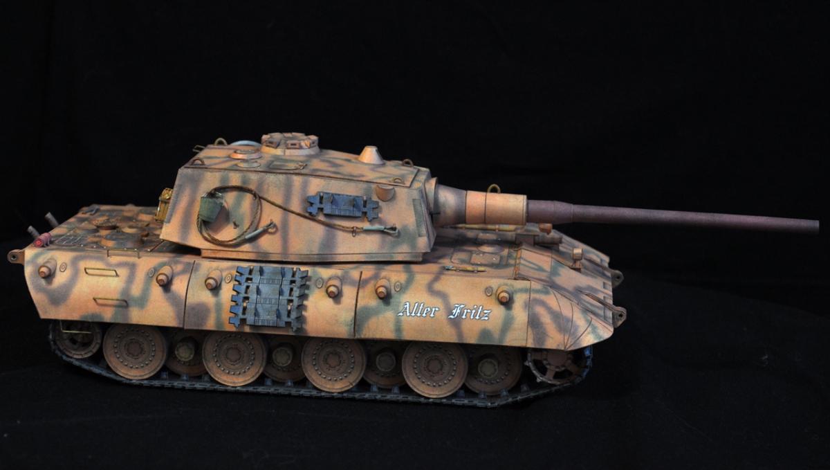 Всем привет. Итак, реинкарнация Е-100. В 2019 году я уже строил данную модель, собственно это она и есть, к сожалению, так вышло, модель пришлось отмыть т.к. была несовместимость модельной химии. На акриловую спиртовую краску Тамия под декали был нанесён глянцевый лак серии LP Тамия и им же закрывались деки. В результате через какое то время после завершения стройки, везде, где был нанесён глянцевый лак LP очень сильно потрескалось покрытие.По доработкам: мет. ствол орудия и пулемёта, точеная антенна и антенный ввод от RB Models, точёная заглушка пистолетного, множество элементов КТ от Менг, тубус под антенну, рабочие травленые замки, нарастил плиту ВЛД, переместил крепления экранов спереди, заделал пулемётные гнёзда на башне, добавил бронировку вент. решёток, изготовил ящик для ПНВ, доработал бортовые экраны.Маркировку взял из 512 батальона, именно там были Ягдтигры маркировавшиеся X и Y и мне захотелось засунуть Е-100 почему то туда под вымышленным номером. Спасибо за внимание.