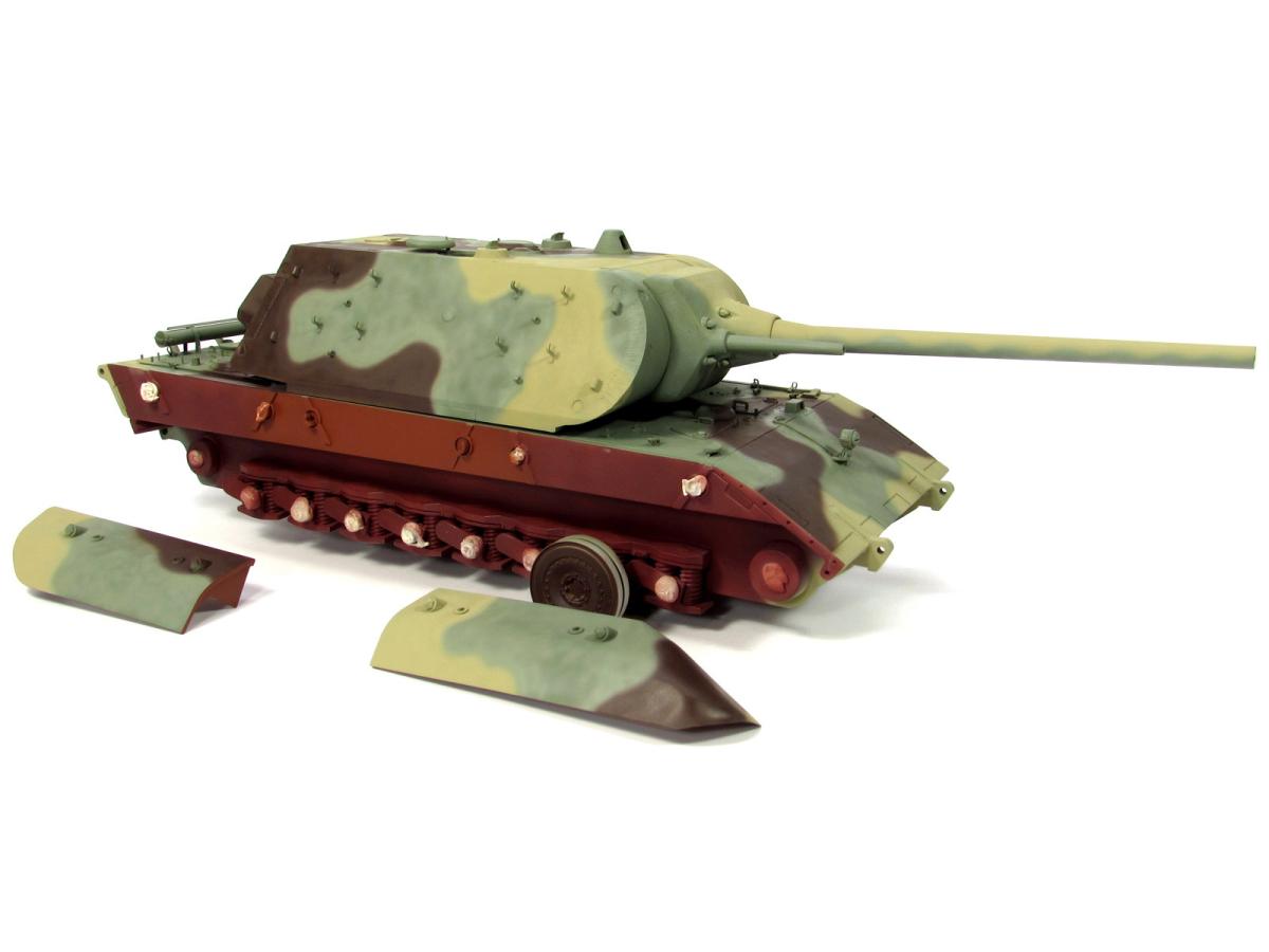Представляю вам Jagdpanzer E-100 в 1/35, самодел из набора Trumpeter. Больше фото Стройка началась еще в 2014 г. с того, что я предложил другу переделать его старую модель в заднерубочный вариант как во всем известной игре, на что тот ответил предложением купить её по заманчивой цене (так как по различным причинам отсутствовали некоторые детали). Иначе бы я не решился это делать из-за дороговизны самой модели (на то время я еще учился в университете и не мог себе позволить тратить много денег на хобби), поэтому его вклад в стройку решающий, за что ему отдельная благодарность. Афтермаркет:- два точеных ствола от RBmodel: 17cm от GW-Tiger (35B91) и 2cm FlaK 38 L/50 (35B66), (17см пушку я рассверлил в казенной части и вставил штырёк из 2мм гвоздя для вертикальной наводки);- травленые решетки на Е-100 для Trumpeter (позже выяснилось, что на Jagdpanzer E-100 они не подходят по размерам, поэтому родные лучше не терять);- болты от MasterClub: (MC435066 - 1мм с шайбой для защиты воздухозаборников, MC435039 - 1.4мм для крепления крыши, MC435191 - противопульные 1.8мм для масок) С болтами угадал только на основной маске, если хотите копийности "как в игре", то на большую маску надо где-то 3мм, но таких вроде не делают, а на крышу надо 1 мм или чуть меньше)- рабочие траки для Е-100 от Trumpeter 02049. Рубка из 2мм пластика и большого количества шпатлевки от Tamiya. Триплексы из DVD, защита воздухозаборников - пластик от доширака. В экраны посадил на суперклей обрезки сверел 1.2мм., в креплениях на корпусе просверлил отверстия 1.3мм и экраны получились съёмными. Окраска Tamiya - база, глянцевый лак и смывка, AK - Dark Tracks для траков. Акан - деревянные ручки лопаты и топора. Пигменты Wilder, слегка прошелся маслом Abteilung 502. По некоторым мелким деталям, которые трудно было отлить на 3D принтере или изготовить самостоятельно, пришлось попросить помощи у других моделистов. Cпасибо товарищам, дали фару и люки мехвода с радистом, крючья для запасных траков. Крупные детали со сложной формой заказывал в фирме 3D печати, моделировал самостоятельно в учебной версии КОМПАС-3D V16. Распечатанный механизм поворота пушки оказался на удивление тугим, поэтому не потребовалось мастерить противовесы. Для тех, кто хочет запилить аналогичную модель, делюсь своими моделями деталей и чертежами листов рубки, которые делал по размерам игровой модели, но со своим взглядом на некоторые моменты. По результатам стройки отредактировал файлы с моделями для того чтобы убрать некоторые дефекты печати.Яндекс дискГугл диск Тема со стройкой- 19 ответов