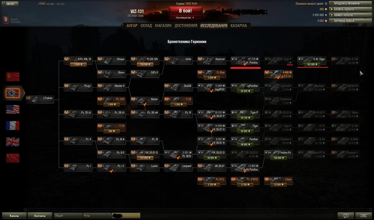 После выхода патча 0.8.6, в котором ветка арты была растянута до 10 лвла, появилась такая проблема: с ГВ Пантеры в ветке исследования германии идёт переход к ГВ Тигру, а не к ГВ Тигру П, как болжно быть видно. Всё видно из скринов ниже. Добавлю лишь, что перед патчем я купил гвп и набил на ней немного опыта, т.е. гвт не был иследован