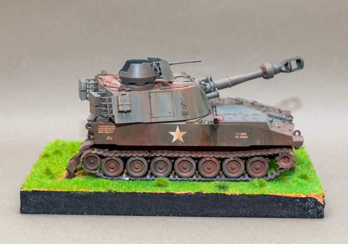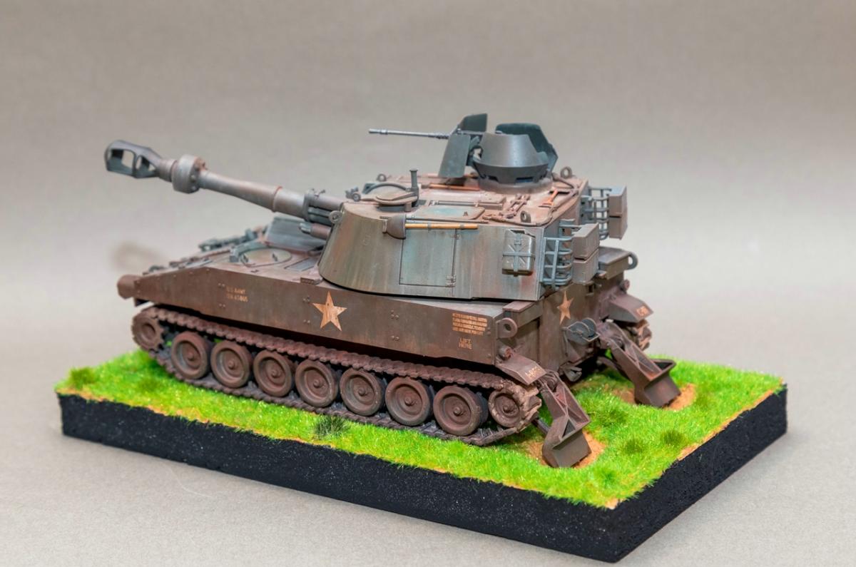 Представляю вашему вниманию свою очередную модель собранную полностью из коробки. Хорошо известный набор от "Тамии" с добавлением элементов от "Италери". Набор предлагает собрать самоходку М109 которая принимала участие в войне во Вьетнаме. Сборка выполняется совершенно без проблем, что подтверждает высокое качество моделей от "Тамии". Окрас - акриловый набор от АК для техники времен войны во Вьетнаме. Химия - АММо Миг, МХП, АК. Подставка - пенопласт Трава - флок. Конструктивная критика приветствуется. http://cdn-frm-eu.wargaming.net/wot/ru/uploads/monthly_06_2020/post-1579793-0-42203500-1593441144_thumb.jpghttp://cdn-frm-eu.wargaming.net/wot/ru/uploads/monthly_06_2020/post-1579793-0-41269300-1593441153_thumb.jpghttp://cdn-frm-eu.wargaming.net/wot/ru/uploads/monthly_06_2020/post-1579793-0-91585400-1593441169_thumb.jpghttp://cdn-frm-eu.wargaming.net/wot/ru/uploads/monthly_06_2020/post-1579793-0-25560100-1593441176_thumb.jpghttp://cdn-frm-eu.wargaming.net/wot/ru/uploads/monthly_06_2020/post-1579793-0-07111200-1593441161_thumb.jpghttp://cdn-frm-eu.wargaming.net/wot/ru/uploads/monthly_06_2020/post-1579793-0-14928500-1593441185_thumb.jpghttp://cdn-frm-eu.wargaming.net/wot/ru/uploads/monthly_06_2020/post-1579793-0-88793600-1593441192_thumb.jpg