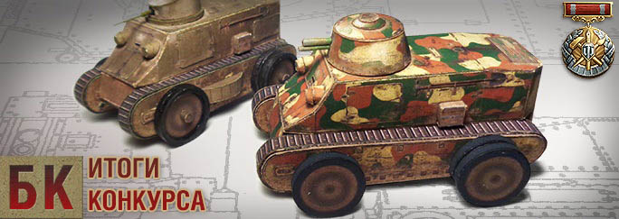 http://cdn-frm-eu.wargaming.net/wot/ru/uploads/monthly_04_2016/post-4861458-0-39976100-1460550209.jpg Подведены итоги очередного конкурса по сборке моделей "Kolohousenka и СУ-18, Бронекоробочка" Участников было много, пользователи прислали много достойных работ, это здорово! В первой десятке конкуренция была традиционно высокой. А на гран-при и призовые места претендовали 5 участников, в итоге было принято решение присудить два третьих места вместо одного. Ну и с учетом гарантированных призов поощрения получили почти 90% остальных участников! Итоговое решение жюри, победители и призеры: http://worldoftanks.ru/dcont/fb/image/creative_contribution_100px.png ГРАН-ПРИ http://cdn-frm-eu.wargaming.net/wot/ru/uploads/monthly_04_2016/post-4861458-0-97833200-1460542914_thumb.jpg dark_zlodey Т-54 ПЕРВЫЙ ОБРАЗЕЦ + слот + 10 дней према + медаль I место http://cdn-frm-eu.wargaming.net/wot/ru/uploads/monthly_04_2016/post-4861458-0-12419400-1460542916_thumb.jpg den_dilmah AMX CHASSEUR DE CHARS + слот + 30 дней према + медаль II место http://cdn-frm-eu.wargaming.net/wot/ru/uploads/monthly_04_2016/post-4861458-0-31216000-1460542918_thumb.jpg s0gik СУ-100Y + слот + 15 дней према + медаль III место http://cdn-frm-eu.wargaming.net/wot/ru/uploads/monthly_04_2016/post-4861458-0-42680700-1460542919_thumb.jpg xxx113xxx PZ.KPFW. T 25 + слот + 10 дней према + медаль III место http://cdn-frm-eu.wargaming.net/wot/ru/uploads/monthly_04_2016/post-4861458-0-29616900-1460542917_thumb.jpg EJIEKTROHNK PZ.KPFW. T 25 + слот + 10 дней према + медаль Все пять призеров получат форумный статус "Моделист"! и уникальный диплом. Гарантированные и специальные призы, : M4A2E4 SHERMAN + слот: capitan04051976, Ipsum142 PZ.KPFW. T 15 + слот: VladDanovsky, SeniaPrimak, PREDATOR84 T2 LIGHT TANK + слот: maksymca, EugenV, Krusolow, yk00, PanzerOlgert, pykasytch, RikkoGross, Morrien, Grihock, vovochka13 5 дней према: kazak_snaiper, ZYATKOVO, bmedved13, WorldofPaperTanks, Tarabanchik, mrnice32, _Chromix_, 3 дня према: bablo3777, Vasin_Drandulet, nik_loobenchuk, starik89517267738, YES__I__AM__DIMAZ, LesTankist12, skillet_forever, xxxAvToMeChAniKxxx, Nazar14g19, VOIBOR_U, droidess, _White_Tiger_2002_, aliod, Alextutitam, mukalee3, Aniimob, supersonik_15, NSA_78, antitank240814 Поздравляем призеров! Все начисления будут произведены в ближайшие рабочие дни (предварительно запланировано на пятницу). P.S. Просим авторов, занявших 1-2-3 место и гран-при, сообщить свое ФИО в личку gralexxl 15 апреля стартует новый конкурс по сборке модели танка "E 50 Ausf. M.Бронекоробочка", ждем ваши работы!