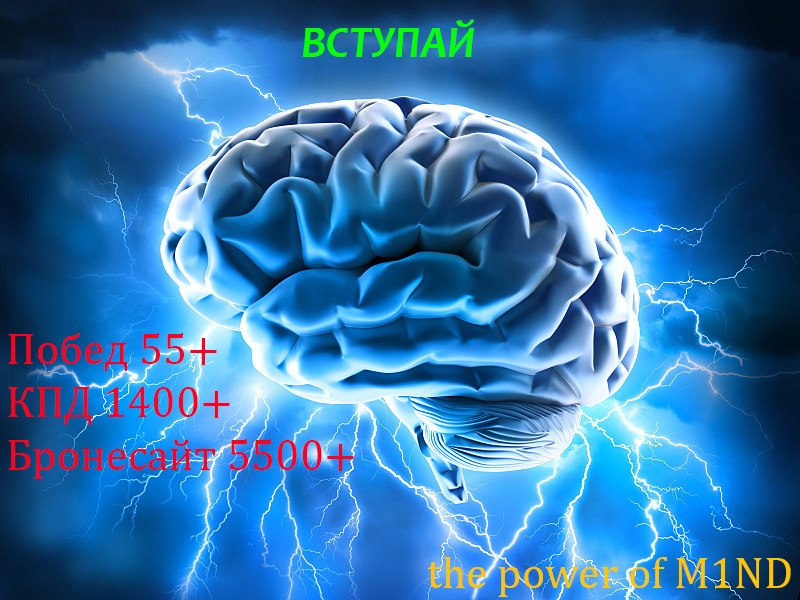 Всем доброго времени суток! Открыт набор в клан M1ND Требования Побед 55+ КПД 1400+ Броне-сайт 5500+ От 3-х топов процент побед на топах (53+) Связь в клане Тим Спик 3 на данный момент в клане 7 человек пока идет до набор. В клане есть свой стример и Ютуб канал а так же формируется турнирная команда. По всем вопросам по вступлению в клан пишите здесь на форуме или в Лс в игре. Удачи в рандоме!