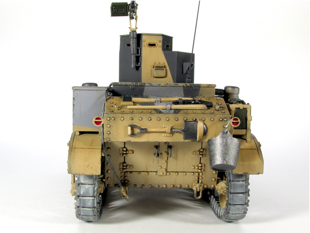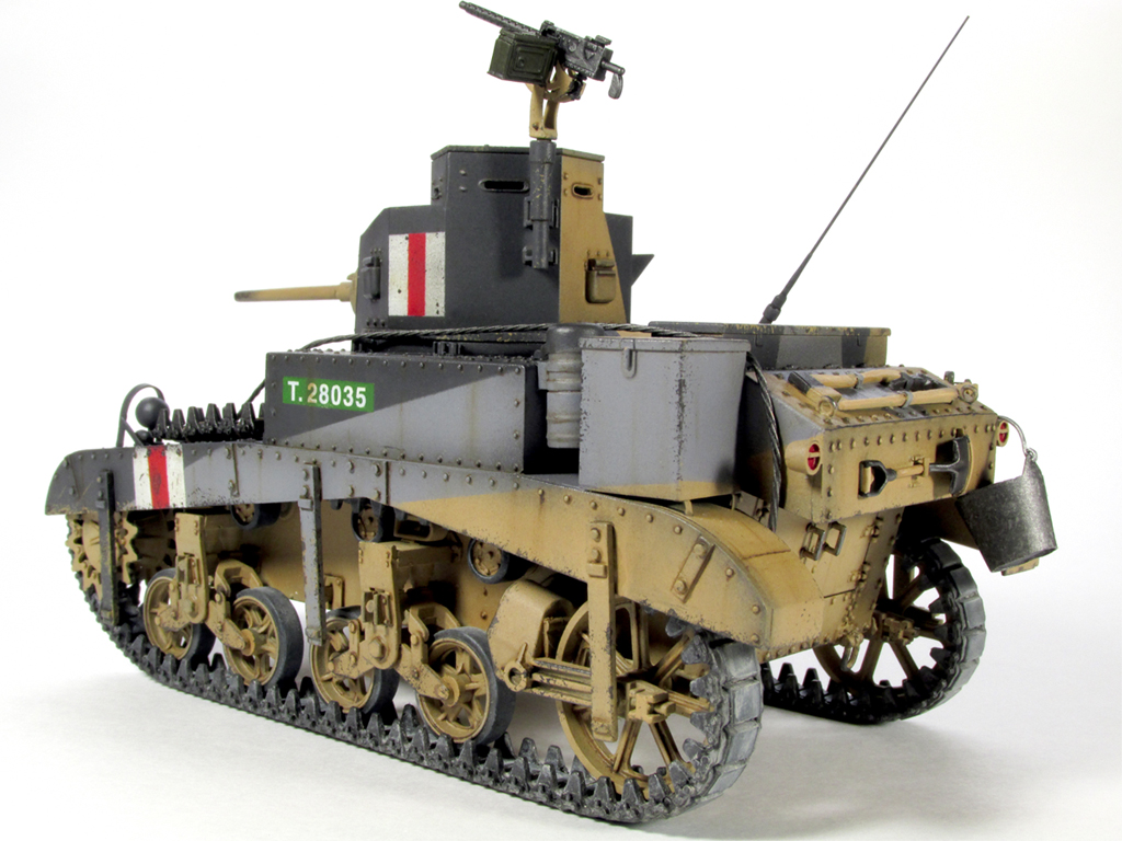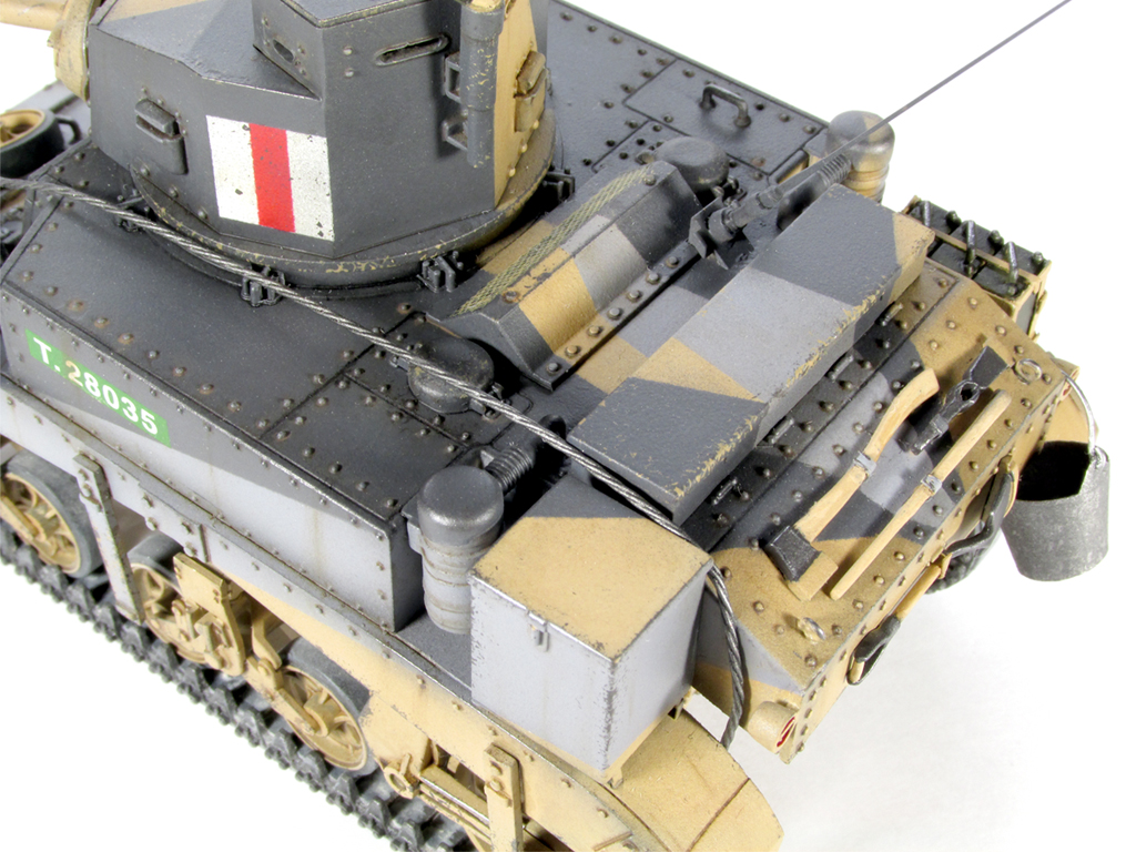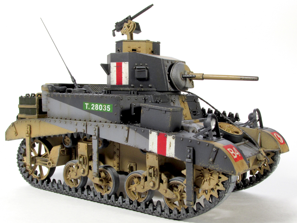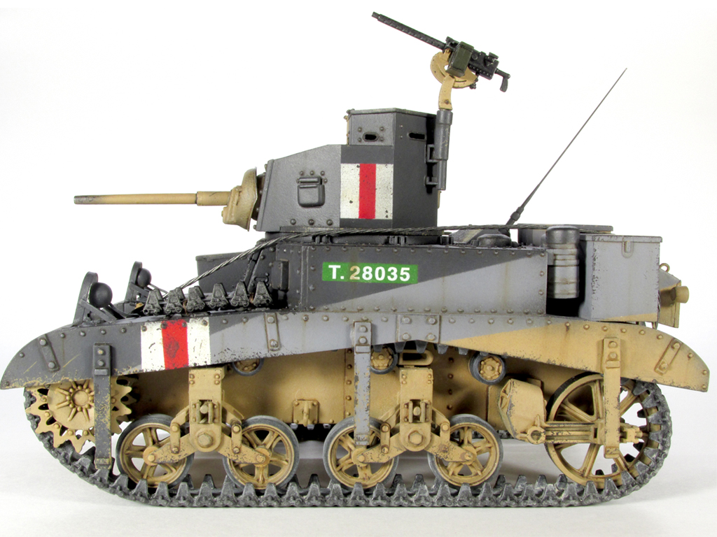 Доброго дня. Представляю своего M3 Stuart Honey, Королевских Ирландских Гусар, 7 бронетанковой дивизии, Северная Африка, ноябрь 1941. Набор взял в комиссионке за смешные 400р. Набор был начат, все детали срезаны с литников да ещё и инструкции не было. В процессе сборки выяснилось, что деталей на наборные траки не хватает (из-за этого пришлось поставить винил, но он тоже очень хорошего качества), так же отсутствовало ещё пара не значительных деталей. С дальнейшей сборкой проблем не возникло, всё собралось без шпаклёвки и подгонки. Из недостатков данного набора хочу отметить очень толстый пластик и отсутствие прозрачных деталей. Много упрощение в деталировке. Честно говоря сам бы я за полную стоимость в 1600р. данный набор некогда бы не взял. Ну не стоит он этих денег. За + - данную сумму можно взял куда более интересные наборы. Что добавил: фары Эльф, точёную антенну, из травлёнки своял ограждение фар и корзину под канистры, изготовил ведро и трос, рассверлил стволы пулемётов и прорезал смотровые щели в ком. башенке. Красил акрил Тамия и Мр. Хобби. Химия от АК и Тамия, матовый лак Босни, карандаш. В этот рас пылить не стал. По своему опыту, крайне не советую химию от Модель. Лаб в частности пигменты отдают сторонними оттенками, смывка имеет крупные фракции и очень быстро оседает в банке (приходится постоянно взбалтывать) да ещё и блеск даёт после высыхания. С жидкими эффектами тоже тяжело работать т.к. процесс стирания тяжело контролировать в отличии от подобных эффектов от АК ну и фиксер уже описал выше. Реально хотите качественную химию, берите или АК или МИГ, да дороже в три раза, но зато качество на высоте и процесс работы можно легко контролировать.