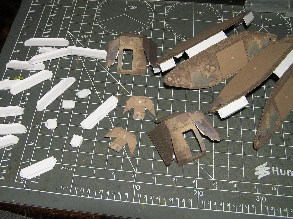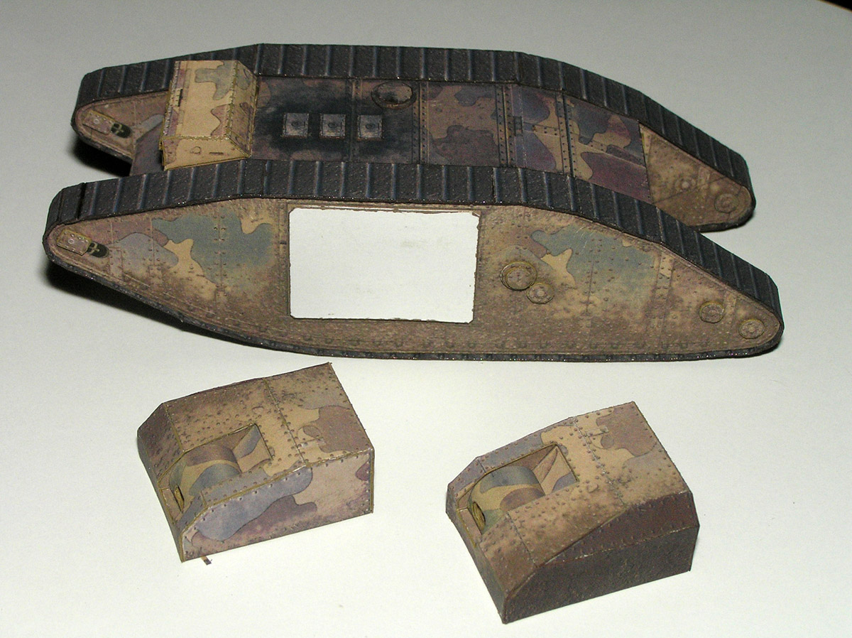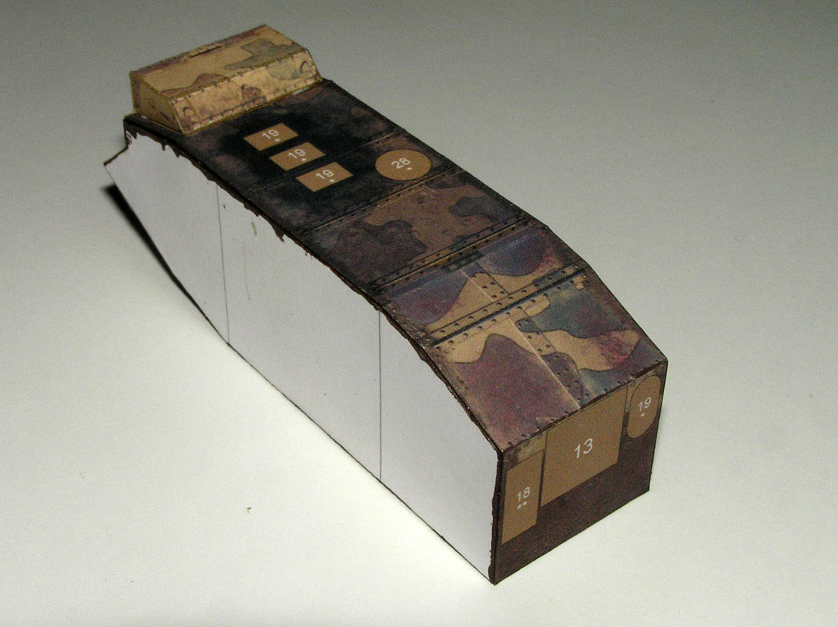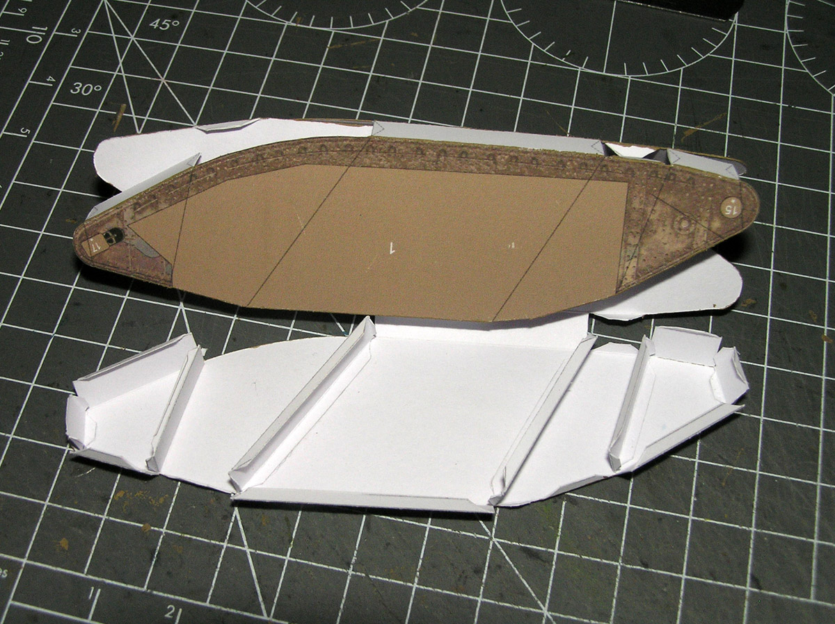 http://cdn-frm-eu.wargaming.net/wot/ru/uploads/monthly_09_2016/post-4861458-0-37033500-1474277446.jpg Еще раз поздравляем всех с 100-летием танка! Targo_Kain, представляет рассказ о сборке модели "Mark I. Бронекоробочка" (стиль изложения автора сохранен). Рекомендуем перед началом сборки ознакомиться с статьей о инструментах и материалах для бумажного моделизма. Предыдущие статьи автора: "M103", "Type 5 Heavy", "AMX 50 B", "Японский Тигр", танка Т-54, ИС-2 и ПТ-САУ: Charioteer, 1 http://cdn-frm-eu.wargaming.net/wot/ru/uploads/monthly_09_2016/post-4861458-0-97502300-1474278039_thumb.jpg Начнём с корпуса. Он совсем простой. На фото детали 1 и 3 вырезанные, согнутые где надо и с подкрашенными торцами. 2 http://cdn-frm-eu.wargaming.net/wot/ru/uploads/monthly_09_2016/post-4861458-0-82448600-1474278040_thumb.jpg Корпус, деталь 1 внутрь вставлены шпангоуты – детали 2. Можно приклеить деталь 3 на клапана детали 1, но я их срезал и нарастил толщину боковых стенок корпуса. Из-за этого детали 2 пришлось заузить. Выбор за вами. 3 http://cdn-frm-eu.wargaming.net/wot/ru/uploads/monthly_09_2016/post-4861458-0-95763700-1474278041_thumb.jpg Вот корпус уже собран. Простой, как кирпич, немного заточенный спереди. 4 http://cdn-frm-eu.wargaming.net/wot/ru/uploads/monthly_09_2016/post-4861458-0-01435100-1474278043_thumb.jpg Корпус вид сзади-сбоку. 5 http://cdn-frm-eu.wargaming.net/wot/ru/uploads/monthly_09_2016/post-4861458-0-88756600-1474278043_thumb.jpg А теперь будем собирать самое сложное в этой модели – гусеничные блоки. На фото сами блоки – детали 4 левая и правая, шпангоуты внутрь них детали с 5 по 10, спонсоны для орудий – детали 12 и 14. Вырезано, согнуто, торцы подкрашены. 6 http://cdn-frm-eu.wargaming.net/wot/ru/uploads/monthly_09_2016/post-4861458-0-97206900-1474278044_thumb.jpg Тоже самое, что и на предыдущем фото, под другим ракурсом. 7 http://cdn-frm-eu.wargaming.net/wot/ru/uploads/monthly_09_2016/post-4861458-0-35423600-1474278046_thumb.jpg Вклейка внутрь детали 4 шпангоутов (с 5 по 10). Шпангоуты приклеены основанием, но ещё не склеены между собой. Левую и правую детали 4 на фото я разместил так, что бы было понятно, зачем нужны линии. 8 http://cdn-frm-eu.wargaming.net/wot/ru/uploads/monthly_09_2016/post-4861458-0-37470600-1474278047_thumb.jpg Тоже самое, что и на предыдущем фото, но ракурс взят выше – что бы можно было рассмотреть все детали. 9 http://cdn-frm-eu.wargaming.net/wot/ru/uploads/monthly_09_2016/post-4861458-0-35712300-1474278048_thumb.jpg Шпангоуты оконечности гусеничного блока склеены между собой в "кессон" (жесткая конструкция по типу ящика). С этого момента нужно внимательно следить, что бы всю конструкцию гусеничного блока не "повело винтом" или "волной", пока блок не будет склеен полностью. 10 http://cdn-frm-eu.wargaming.net/wot/ru/uploads/monthly_09_2016/post-4861458-0-83485000-1474278049_thumb.jpg Склеены кессоны обеих оконечностей гусеничного блока. Центральный кессон ещё не полный – одну его стенку образует часть детали 4. Будьте очень внимательны на этом этапе и далее, т.к. от правильности геометрии этих силовых элементов зависит правильность сборки всей модели. 11 http://cdn-frm-eu.wargaming.net/wot/ru/uploads/monthly_09_2016/post-4861458-0-94134100-1474278050_thumb.jpg Шпангоуты обеих гусеничных блоков склеены в кессоны. Обратите внимание – верхний гусеничный блок сделан стандартно из заданным по развёрткам и инструкции количеством деталей с 5 по 10, нижний же на фото имеет дополнительные шпангоуты, которые соединяют три кессона (носовой, центральный и кормовой) блока между собой. Это даст нам большую жёсткость конструкции и снизит вероятность поводки блока. Однако будет и недостаток – если блок всё таки поведёт – исправить будет труднее. В варианте по инструкции же носовой и кормовой кессоны будут иметь некоторую степень свободы – выше вероятность неровной склейки, но и проще будет исправить. Кроме того, обратите внимание – в нижнем блоке есть доп