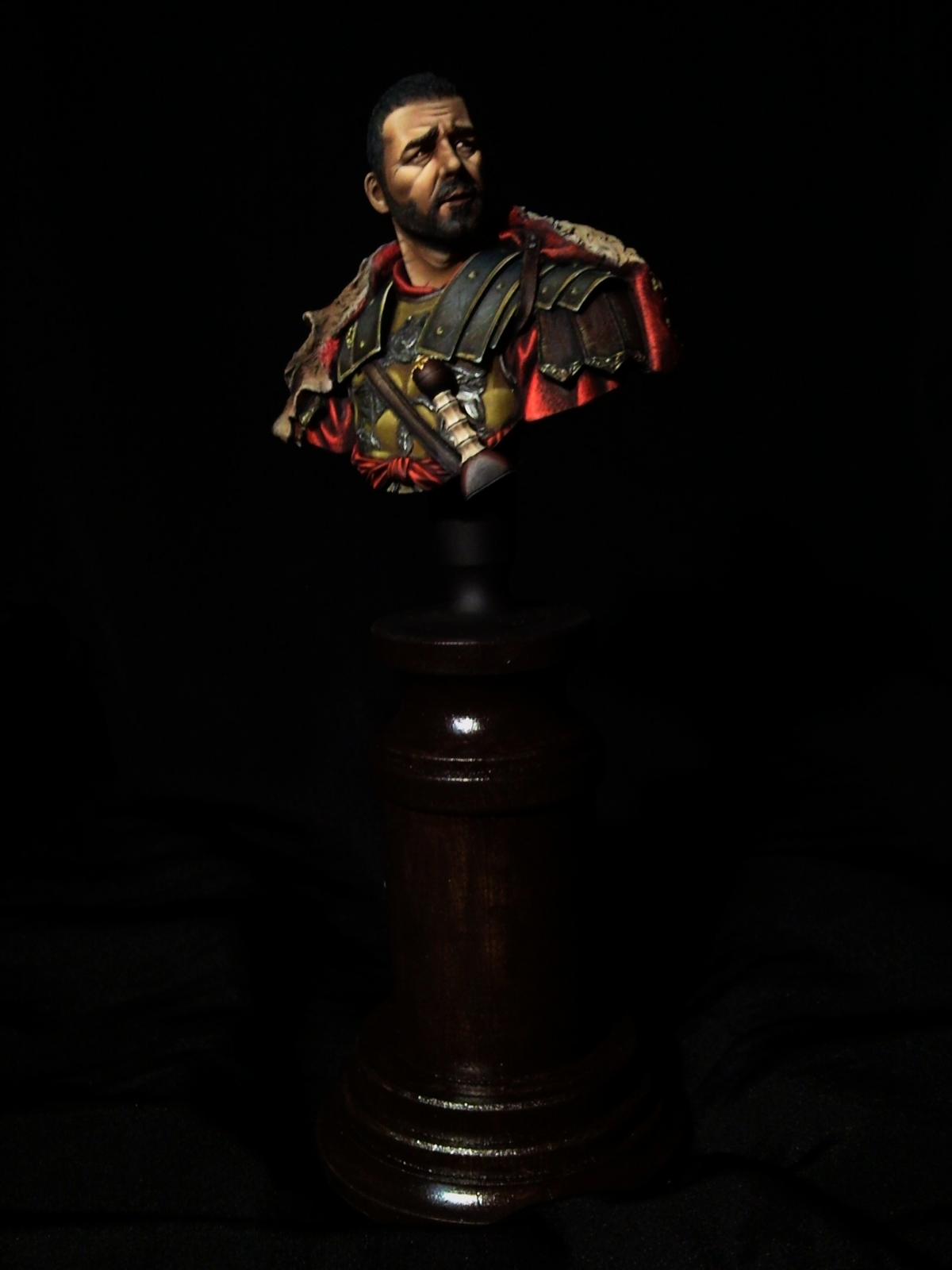 Добрый день. "Меня зовут Максимус Деций Меридий. Командующий северными армиями, генерал легиона Феликс. Верный слуга истинного Императора Марка Аврелия. Отец убитого сына, муж убитой жены — и я отомщу за них, в этой жизни или следующей!" © Фигурка от Корейской фирмы Young Miniatures. Смола. 1/10. Артикул YH1840. Краски - акрил разных производителей. Первый опыт в росписи бюстов. Опробовал несколько новых техник. последнее фото в лаке матовом.