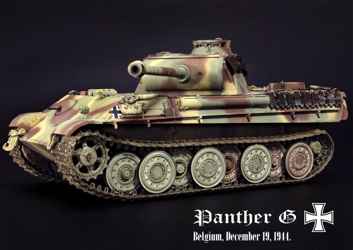 Доброго дня. Хожу представить модель Panther Ausf. G из набор Dragon 6370, 1/35. Попытался воспроизвести машину за номером 211 из LSSAH подбитую в Бельгии недалеко от станции Стумон 19 декабря 1944г. Данная Пантера производства MAN прежде всего интересна тем, что является одной из примерно 23 машин экспериментальной партии на катках с внутренней амортизацией. Машина за номер 211 была выбрана, прежде всего, из-за хороших фотографий со всех сторон. По доработкам: набор травления Voyager РЕ35924, ствол орудия от RB, добавил недостающие сварные швы по всей машине, сместил кормовой люк на башне, подправил сверху неподвижную часть маски орудия, добавил имитацию литья на лобовой детали башни и ком. башенки, следы газорезки на корме башни. С начало поставил а потом по подсказке Виктора Ухова убрал жалюзи, перевернул огнетушитель и поправил ещё несколько косячков, поэтому фото до окраски и окрашенная машина немного различаются в некоторых деталях. Приятного просмотра и спасибо за внимание.