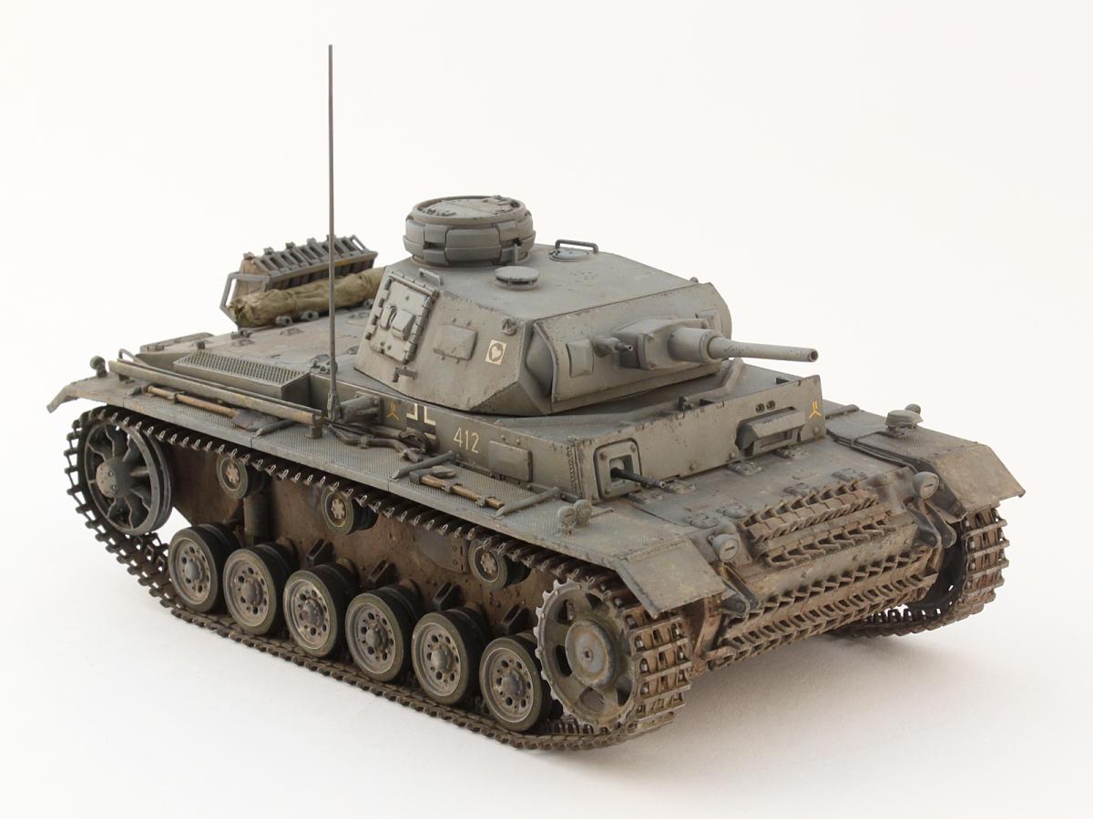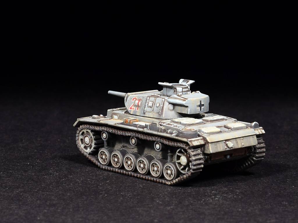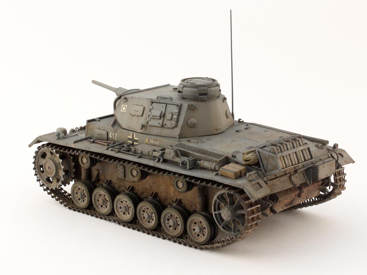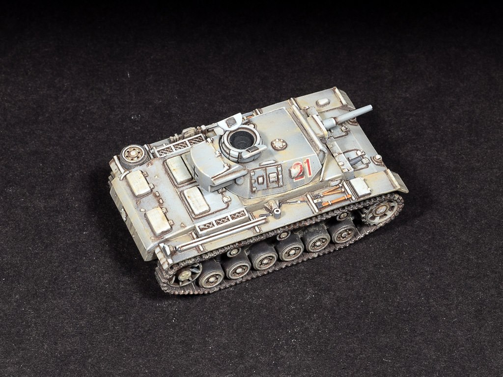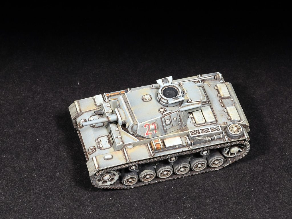 Всем привет. Представляю вам свою свежую модель - немецкий средний танк Panzer III. Хорошая Дрэгоновская модель, типичная для начала 2000-х. В комплекте идет два варианта ходовой (но, к сожалению, траки даны только на позднюю) и небольшая плата травления. Модель мне досталась по случаю, так что афтермаркет на неё не закупался, сборка практически искоробочная. Я только добавил немного самодельных деталей на шанец и академовские канистры на корму. Модель окрашена акрилом Tamiya, тонирована отечественными пигментами, художественным маслом и карандашами. Жду ваших отзывов, Удачи в боях.