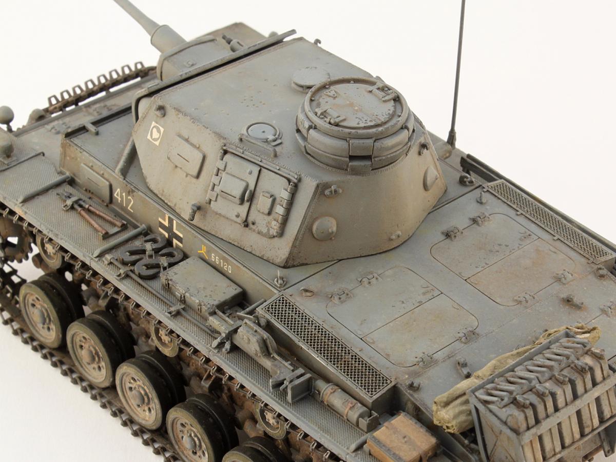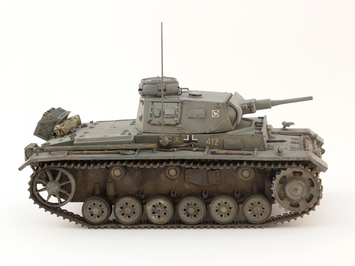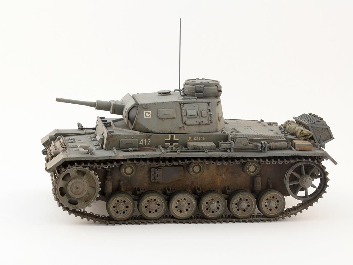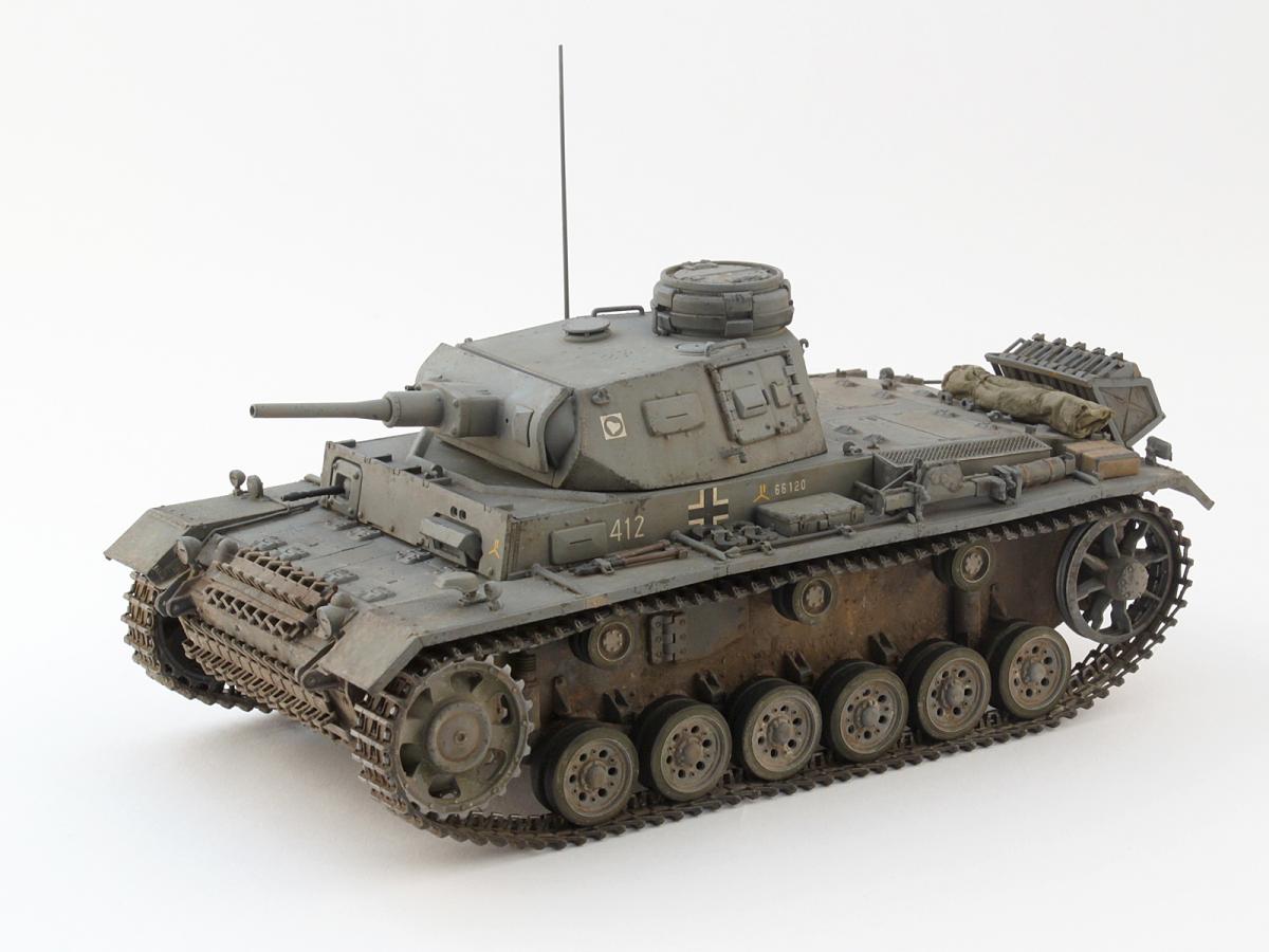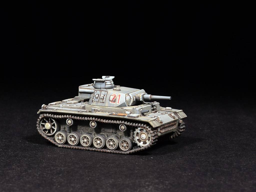 Всем привет. Представляю вам свою свежую модель - немецкий средний танк Panzer III. Хорошая Дрэгоновская модель, типичная для начала 2000-х. В комплекте идет два варианта ходовой (но, к сожалению, траки даны только на позднюю) и небольшая плата травления. Модель мне досталась по случаю, так что афтермаркет на неё не закупался, сборка практически искоробочная. Я только добавил немного самодельных деталей на шанец и академовские канистры на корму. Модель окрашена акрилом Tamiya, тонирована отечественными пигментами, художественным маслом и карандашами. Жду ваших отзывов, Удачи в боях.