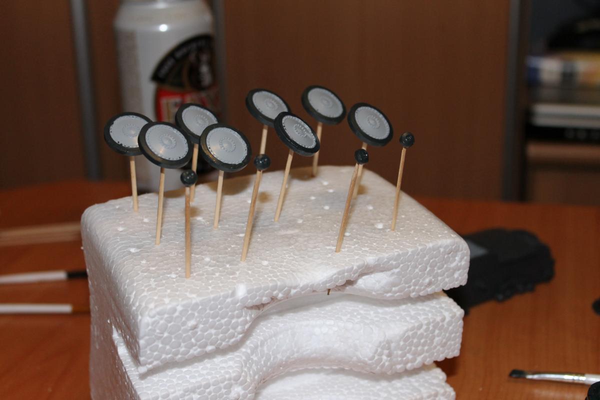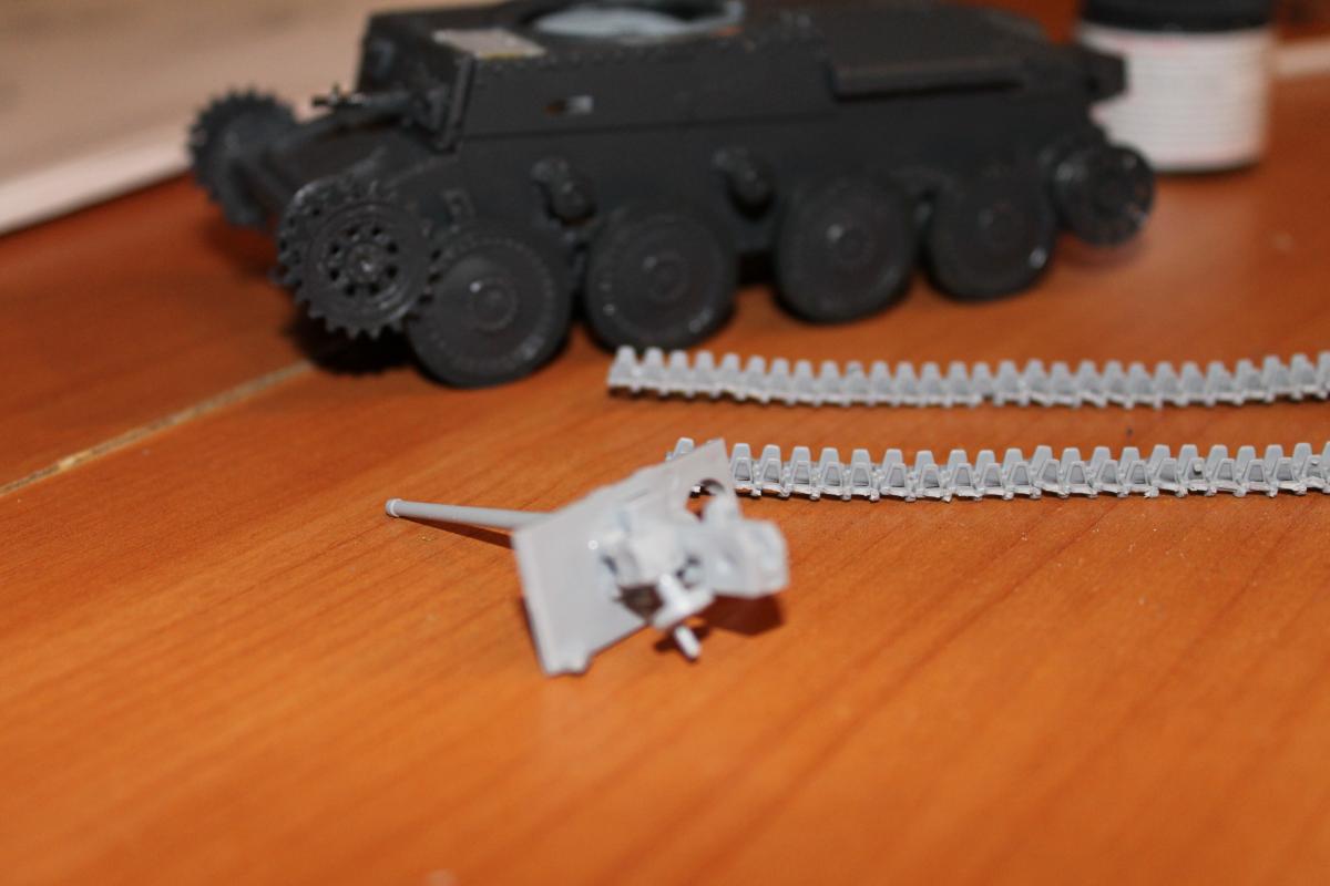 Сабж собственно. Делал довольно долго, на сверх качество не претендую, это только вторая модель, которую собрал. Качество отливок приемлемое огромный зазор только один, но он очень удачно прикрывается выхлопной системой). Некоторые тонкие детали прикреплены к литнику толстенными держателями, сломал обе скобы с башни и ещё что-то по мелочи. Красил в процессе сборки, ибо потом до некоторых мест будет или совсем не добраться, или с большим трудом. Богатая внутренняя обстановка позволит с лёгкостью сделать их этой модели "взорванный" танк, например, для диорамы. Красил эмалью TAMIYA(german grey и gun metal) и чуть-чуть "Mr. COLOR" (tire black, russet и earth green). Russet-ом пытался создать некое подобие ржавчины -- издалека и в темноте немного похоже)) ЗЫНабор траков -- это ад адский, но смотрится, даже в кривом исполнении, гораздо круче резины!