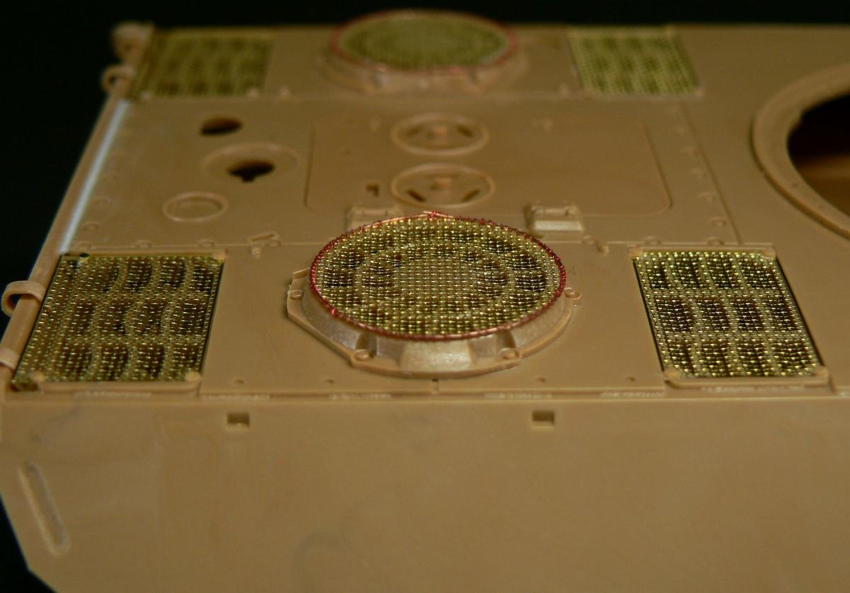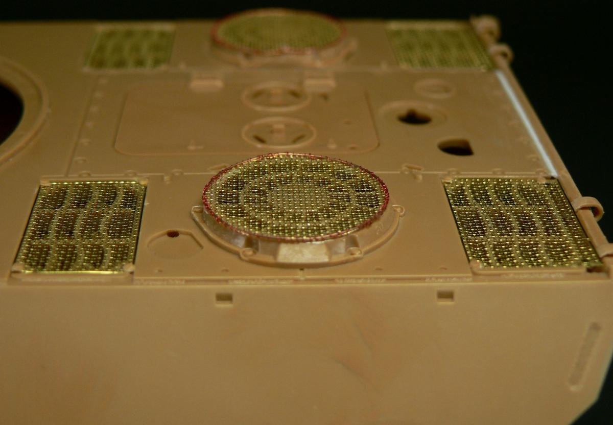 Всем привет! http://cdn-frm-eu.wargaming.net/wot/ru/uploads/monthly_02_2017/post-16953-0-54050700-1488318379_thumb.jpg Строю пантеру Д-шку от звезды 1/35 под 824 борт. Пока готова башня, изменения: сварные швы, дренажные отверстия, уменьшены смотровые щели на ком.башне, заменены рымы демонтажа башни, добавлен козырёк и заменены противопульные головки болтов(родные были уничтожены при шлифовки утяжин, донором выступил драгон), уменьшил щели на колпаке вентилятора и обварил его. Ну и немного облагородил гранатомёты дымовые проводкой. С башни хватит изменений. http://cdn-frm-eu.wargaming.net/wot/ru/uploads/monthly_02_2017/post-16953-0-37178900-1488317715_thumb.jpghttp://cdn-frm-eu.wargaming.net/wot/ru/uploads/monthly_02_2017/post-16953-0-37207100-1488317699_thumb.jpghttp://cdn-frm-eu.wargaming.net/wot/ru/uploads/monthly_02_2017/post-16953-0-96103900-1488317688_thumb.jpghttp://cdn-frm-eu.wargaming.net/wot/ru/uploads/monthly_02_2017/post-16953-0-05197900-1488317669_thumb.jpghttp://cdn-frm-eu.wargaming.net/wot/ru/uploads/monthly_02_2017/post-16953-0-77116600-1488317660_thumb.jpg Плюс начал мучать корпус, установил грили, для грилей(сеток) на вентиляторах добавлен обруч из проволоки оплетенный проводком от наушников. Дальше будет полная его обварка и швов и ковыряние кормы) http://cdn-frm-eu.wargaming.net/wot/ru/uploads/monthly_02_2017/post-16953-0-76734400-1488317973_thumb.jpghttp://cdn-frm-eu.wargaming.net/wot/ru/uploads/monthly_02_2017/post-16953-0-21175200-1488317979_thumb.jpg