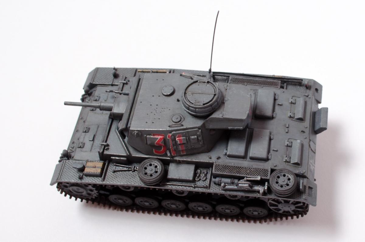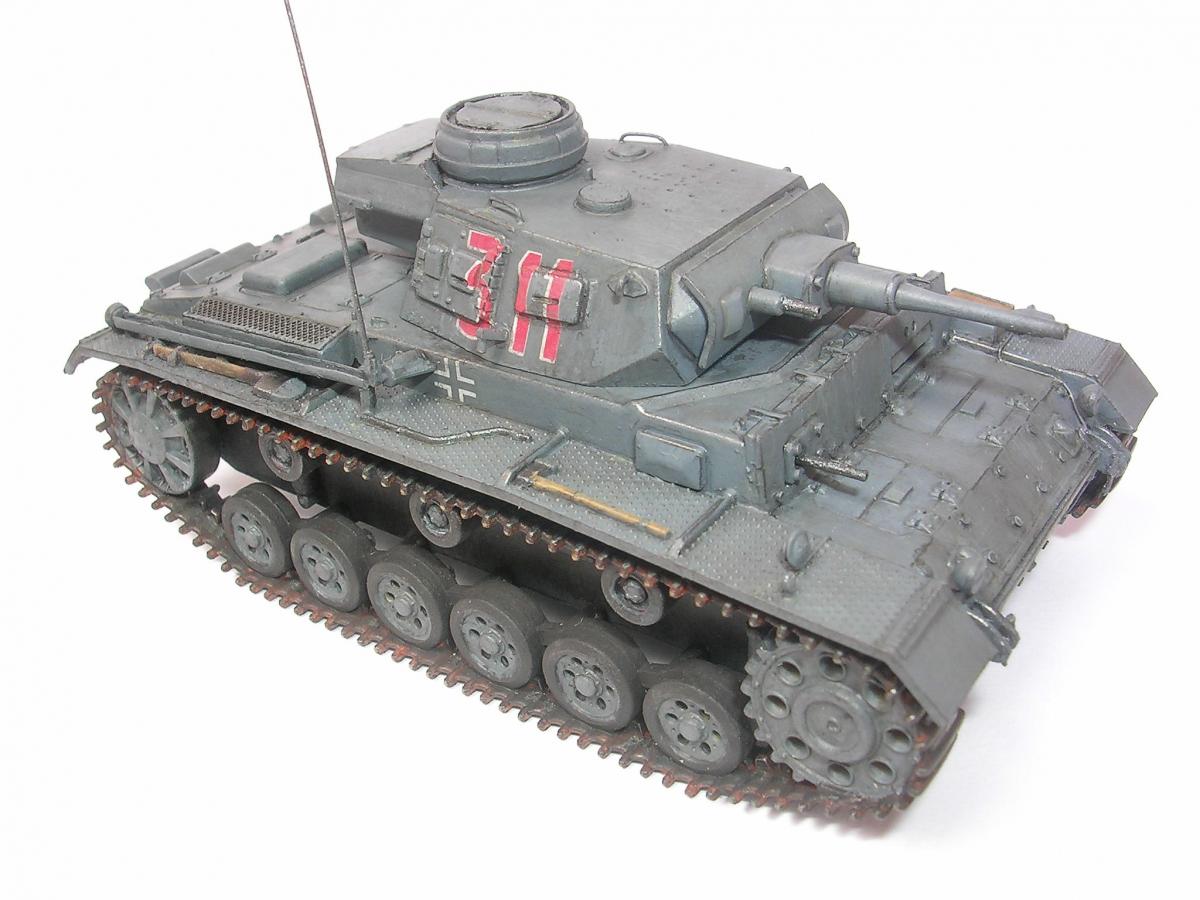 UPD: не указал в названии темы полную информацию: Pz.Kpfw.III Ausf.H, S-Model, 1/72. Очередной пазик занимает свое место на стеллаже. http://cdn-frm-eu.wargaming.net/wot/ru/uploads/monthly_07_2015/post-6836145-0-92746600-1437488558_thumb.jpg Представляю Вашему вниманию Pz.Kpfw.III Ausf.H. Конверсия из быстросбора от S-Model Pz.Kpfw.III Ausf.G. Грунт - кисть, эмаль от Звезды. Окраска и смывка - кисть, акрил от Звезды. Как всегда S-Model порадовали хорошим качеством литья и приятной сборкой. Для начинающих моделистов однозначно рекомендую! Выражаю благодарность всем коллегам по хобби помогавшим советами при сборке и покраске! Что было сделано: Установлены дополнительные бронеплиты и выполнена имитация болтов и креплений. Добавлено бронирование маски пулемета. Наплывы на башне срезаны, поручни изготовлены из проволоки. Пулемет заменен на изготовленный из инсулиновой иглы. Добавлены лючки для ключа на люки трансмиссии и сделаны отверстия для ходовых огней на брызговиках. Добавлены крюки для монтажа башни и ограничители хода створки люка. Доработаны буксировочные петли. Доработаны банки глушителей, изготовлены выхлопные патрубки. Рассверлены курсовой пулемет и все что можно и нужно было рассверлить http://cdn-frm-eu.wargaming.net/4.4/style_emoticons/wot/Smile_Default.gif Доработан смотровой прибор мехвода. Изготовлены световые приборы, клаксон, проводка, антенна и короб для нее и другие мелочи.Ход строительства можно посмотреть здесь - http://forum.worldoftanks.ru/index.php?/topic/1541835-pz-kpfw-iii-ausf-g-s-model-172/page__st__20#topmost http://cdn-frm-eu.wargaming.net/wot/ru/uploads/monthly_07_2015/post-6836145-0-28397000-1437488606_thumb.jpg http://cdn-frm-eu.wargaming.net/wot/ru/uploads/monthly_07_2015/post-6836145-0-76367800-1437720316_thumb.jpg http://cdn-frm-eu.wargaming.net/wot/ru/uploads/monthly_07_2015/post-6836145-0-67069300-1437720281_thumb.jpg http://cdn-frm-eu.wargaming.net/wot/ru/uploads/monthly_07_2015/post-6836145-0-23683800-1437720303_thumb.jpg http://cdn-frm-eu.wargaming.net/wot/ru/uploads/monthly_07_2015/post-6836145-0-92031900-1437720340_thumb.jpg http://cdn-frm-eu.wargaming.net/wot/ru/uploads/monthly_07_2015/post-6836145-0-39295500-1437720357_thumb.jpg http://cdn-frm-eu.wargaming.net/wot/ru/uploads/monthly_07_2015/post-6836145-0-63429400-1437720330_thumb.jpg http://cdn-frm-eu.wargaming.net/wot/ru/uploads/monthly_07_2015/post-6836145-0-23687100-1437720293_thumb.jpg http://cdn-frm-eu.wargaming.net/wot/ru/uploads/monthly_07_2015/post-6836145-0-45221200-1437720308_thumb.jpg http://cdn-frm-eu.wargaming.net/wot/ru/uploads/monthly_07_2015/post-6836145-0-52056900-1437720348_thumb.jpg http://cdn-frm-eu.wargaming.net/wot/ru/uploads/monthly_07_2015/post-6836145-0-41278900-1437720365_thumb.jpg http://cdn-frm-eu.wargaming.net/wot/ru/uploads/monthly_07_2015/post-6836145-0-59565100-1437489089_thumb.jpghttp://cdn-frm-eu.wargaming.net/wot/ru/uploads/monthly_07_2015/post-6836145-0-74143000-1437486866_thumb.jpg Нашел старенькую мыльницу. Снял в режиме макросъемки пару кадров (цветопередача исказилась из-за вспышек): http://cdn-frm-eu.wargaming.net/wot/ru/uploads/monthly_07_2015/post-6836145-0-87987200-1437490075_thumb.jpghttp://cdn-frm-eu.wargaming.net/wot/ru/uploads/monthly_07_2015/post-6836145-0-77356700-1437490104_thumb.jpghttp://cdn-frm-eu.wargaming.net/wot/ru/uploads/monthly_07_2015/post-6836145-0-34419300-1437490064_thumb.jpghttp://cdn-frm-eu.wargaming.net/wot/ru/uploads/monthly_07_2015/post-6836145-0-92797200-1437490050_thumb.jpghttp://cdn-frm-eu.wargaming.net/wot/ru/uploads/monthly_07_2015/post-6836145-0-15499800-1437490094_thumb.jpghttp://cdn-frm-eu.wargaming.net/wot/ru/uploads/monthly_07_2015/post-6836145-0-45641600-1437490085_thumb.jpg upd: заменил фото