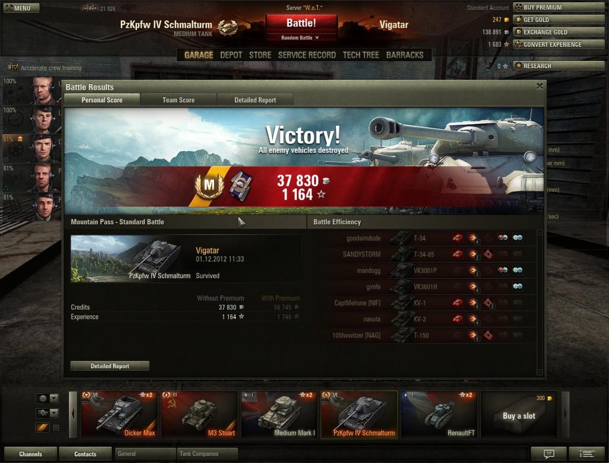 Играл на Американском сервере, без према. Дамага нанёс 2306. Получил мастера. Victory! Battle: Mountain Pass 1 декабря 2012 г. 11:33:00 Vehicle: PzKpfw IV Schmalturm Experience received: 1 164 Credits received: 37 830 Battle Achievements: Sharpshooter, Mastery Badge: "Ace Tanker" PS Часто завистливые алёшки с 46 проц любят минусовать. Не обращайте внимания :)