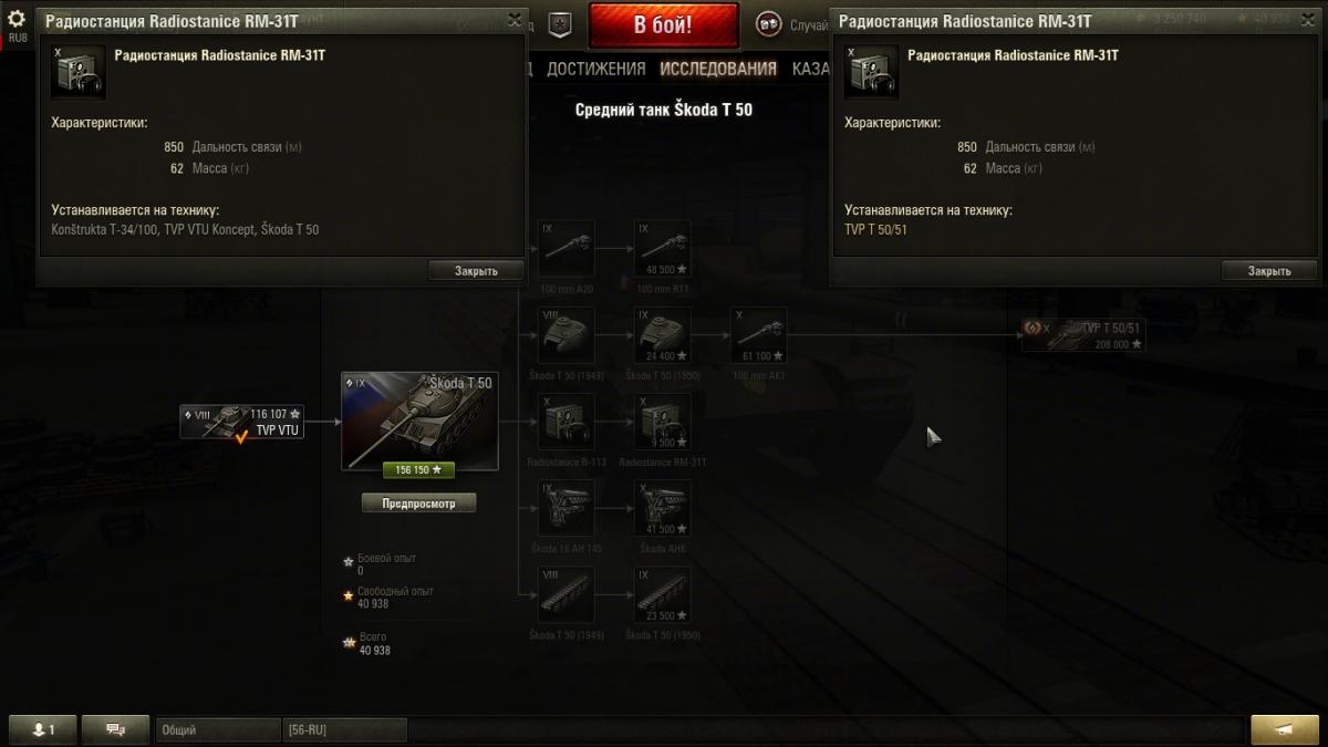 ТВП Т50/51 открыта раньше прокачки радиостанции на девятой шкоде и увы, радиостанция так и осталась не открытой - почему ?, ведь танк 10-ур изучен и даже куплен, а радиостанция по параметрам и наименованию такая же как и на 9-ом уровне не открылась ????? с другими нациями такого глюка не наблюдалось !
