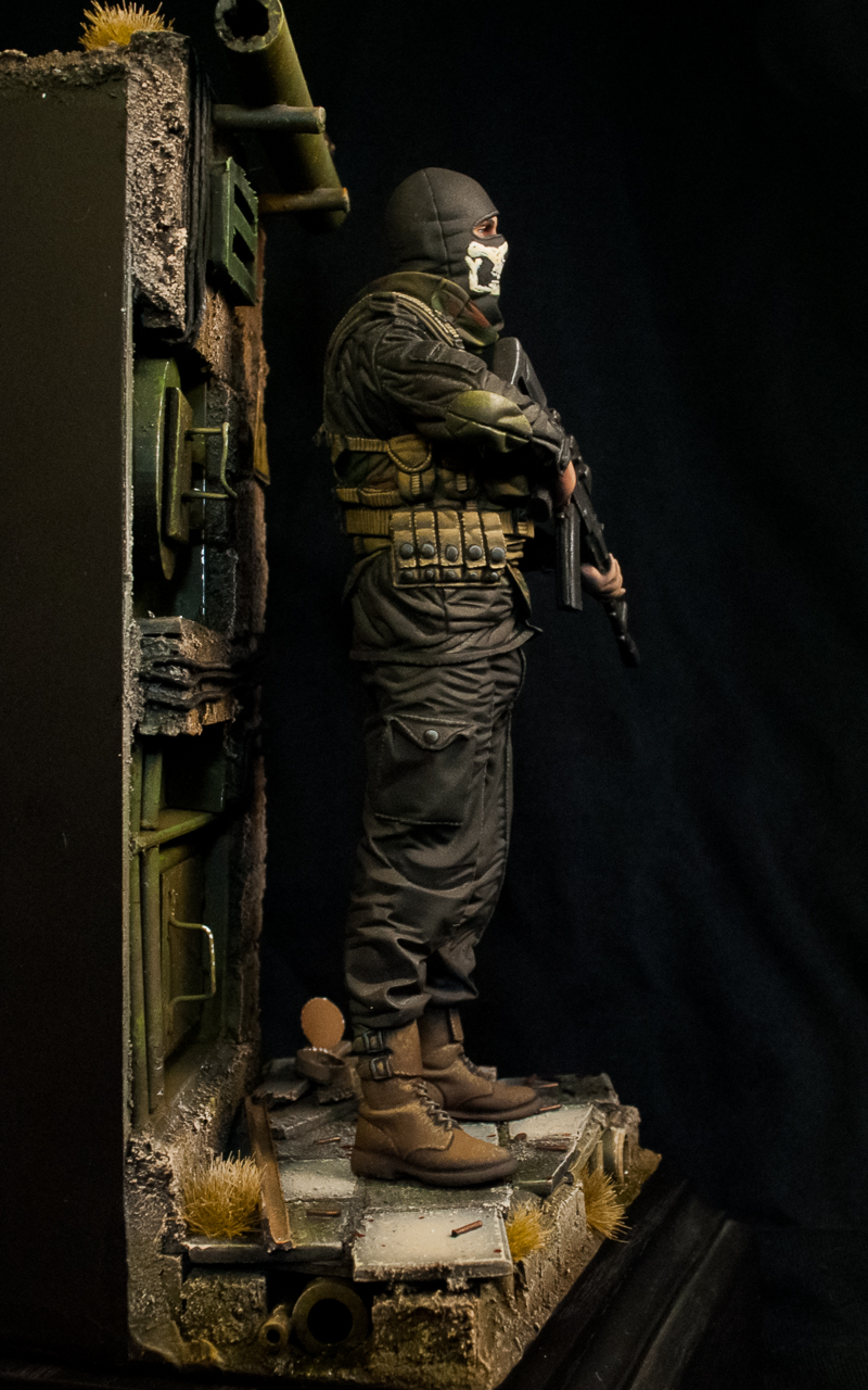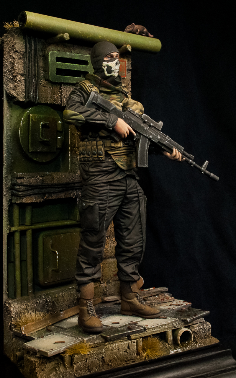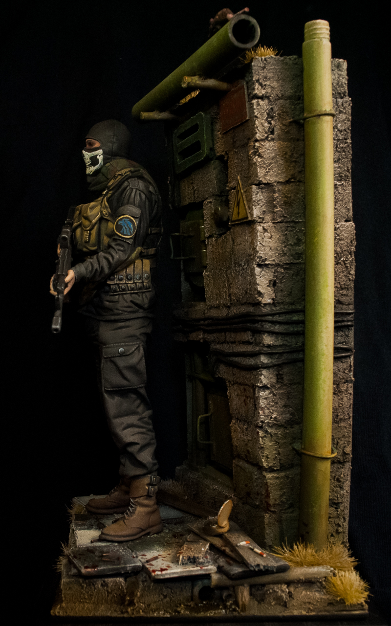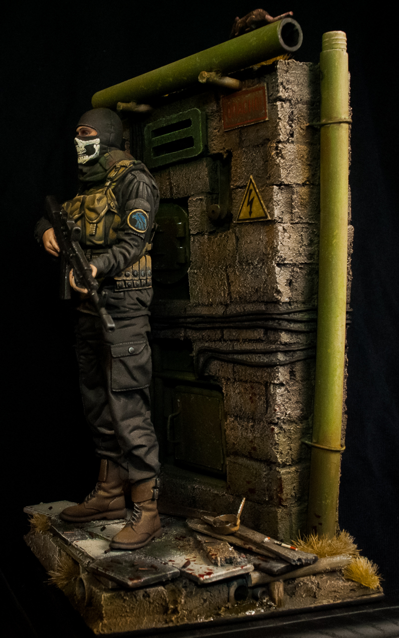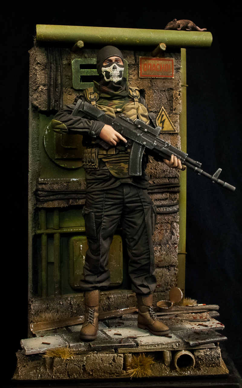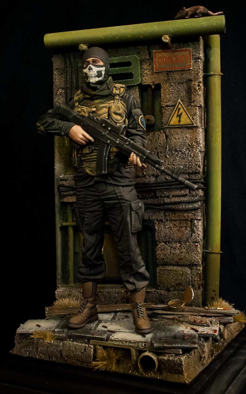 Доброго всем августовского вечера, друзья! Думаю всем знакомо такое понятие как долгострой. Бывают они и у меня... Фигура и подставка были загрунтованы мной еще аж в начале января, во время зимних каникул, но вот к покраске я преступил только в начале этой недели, и понеслось...Собственно, результат перед вами. В оригинале эта 120 миллиметровая фигурка производства Питерской фирмы Albino Raven Miniatures показывает современного российского военного, но моя фантазия немного разыгралась и я превратил его в сталкера-наёмника отправив на какое-то заброшенное чернобыльское предприятие.