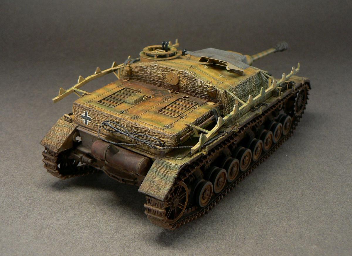 StuG IV early type. Dragon(9038). http://cdn-frm-eu.wargaming.net/wot/ru/uploads/monthly_06_2017/post-16953-0-88394100-1496787064_thumb.jpg Мой долгострой... строил его с перерывом в 4-ре года между двумя этапами и возврашениние в моделизм после застоя. Кит из себя представлял микс из литников от 4-ки, позднего штуга на базе 4рки, ягпанзера 4, и не промаркированные литники, качество литников гуляет(основная часть кита не очень хорошего качества). Травление только рамка перед рубкой. Всё что можно было заменить на проволоку заменено(на момент начала стройки). Циммерит из ревеловской шпаклёвки. Траки наборные (не меджик трак, просто отлиты в литнике(следы от толкателей с внутренней стороны трака +след от половин пресс форм)) ломкие, были рассверлены, вставлена проволока(всё кроме прямых участков), трос из проволоки, сделана петля для закрытия люка заряжающего. Пружины заменены на крыльях полок. При сборке двигался по литературе скорей так как были разночтения с инструкцией+ непонятки что из себя представляет таки ранний штуг 4. Окрашивалось акрилом акан и их ними же металиками, после лак от акан, декали(легли отвратно), опять лак. Днище и ходовая засрано миговской смолой для обгадинка с пигментами. Нарисованы сколы(Темпера ПВА).Экраны родные не устраивали(травлёные дороговаты были, крепёж также оставлен родной) сделал из плотной фольги мягче жести но и не совсем фольга, но результат не нравился совсем. Решено оставить без них. В таком виде был отложен на 4 года.. Во втором пришествии был докуплен травлёный шит пулемётный(окрашен темперой ПВА). Сделана тряпка над орудием из салфетки на разведённом пва, и чехол на дульном тормозе . Задуто слегка матовым лаком Миг, масленые точки, пигменты миг, грифель по граням. Траки задуты смесью хамброловских эмалей +пигменты миг. Немного листиков из запасов и травинок из льна для антуража. http://cdn-frm-eu.wargaming.net/wot/ru/uploads/monthly_06_2017/post-16953-0-89060300-1496787087_thumb.jpghttp://cdn-frm-eu.wargaming.net/wot/ru/uploads/monthly_06_2017/post-16953-0-67503100-1496787138_thumb.jpghttp://cdn-frm-eu.wargaming.net/wot/ru/uploads/monthly_06_2017/post-16953-0-50304200-1496787162_thumb.jpghttp://cdn-frm-eu.wargaming.net/wot/ru/uploads/monthly_06_2017/post-16953-0-15482300-1496787157_thumb.jpghttp://cdn-frm-eu.wargaming.net/wot/ru/uploads/monthly_06_2017/post-16953-0-06613600-1496787103_thumb.jpghttp://cdn-frm-eu.wargaming.net/wot/ru/uploads/monthly_06_2017/post-16953-0-85884700-1496793618_thumb.jpghttp://cdn-frm-eu.wargaming.net/wot/ru/uploads/monthly_06_2017/post-16953-0-81142600-1496787115_thumb.jpghttp://cdn-frm-eu.wargaming.net/wot/ru/uploads/monthly_06_2017/post-16953-0-67460000-1496787144_thumb.jpghttp://cdn-frm-eu.wargaming.net/wot/ru/uploads/monthly_06_2017/post-16953-0-55516300-1496793630_thumb.jpghttp://cdn-frm-eu.wargaming.net/wot/ru/uploads/monthly_06_2017/post-16953-0-21145200-1496794120_thumb.jpghttp://cdn-frm-eu.wargaming.net/wot/ru/uploads/monthly_06_2017/post-16953-0-82695100-1496787150_thumb.jpghttp://cdn-frm-eu.wargaming.net/wot/ru/uploads/monthly_06_2017/post-16953-0-59822000-1496793624_thumb.jpg