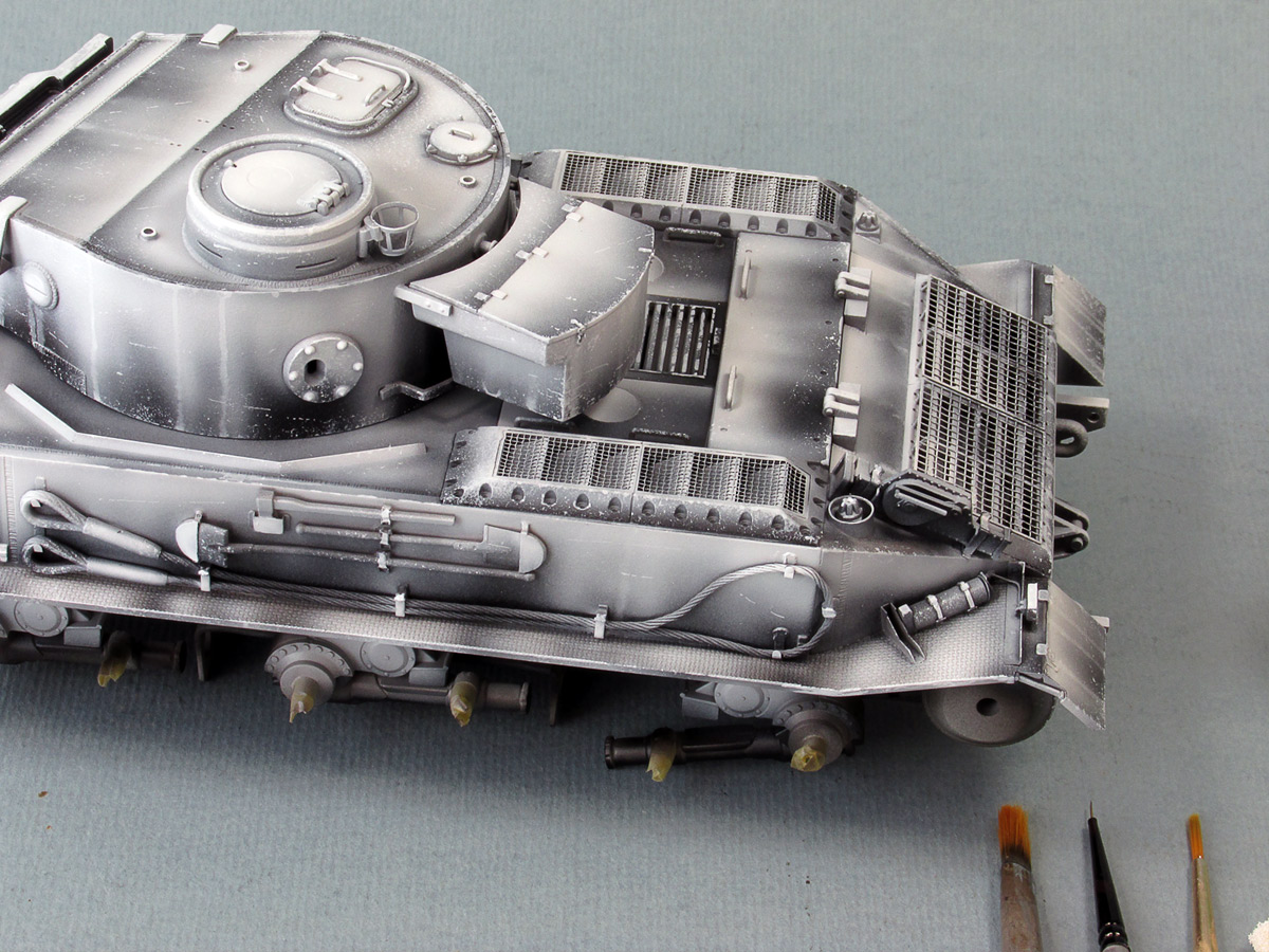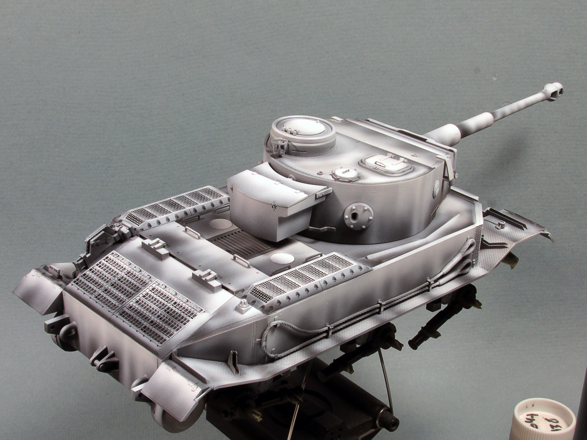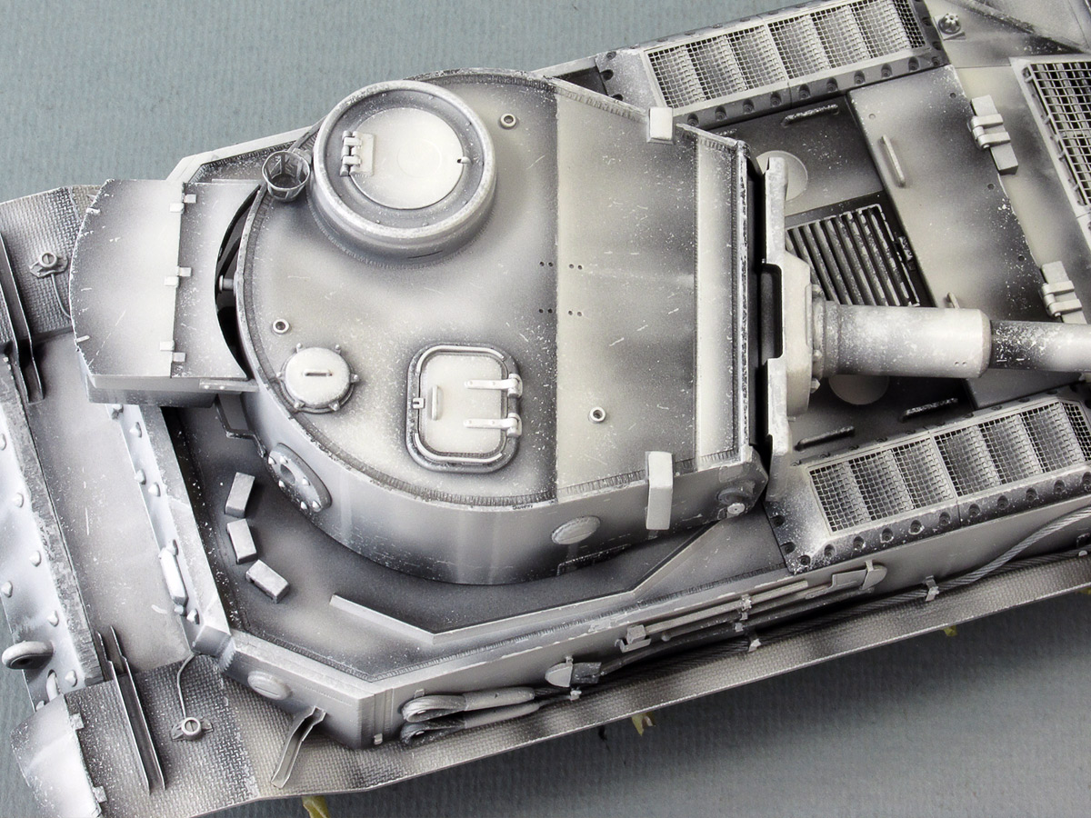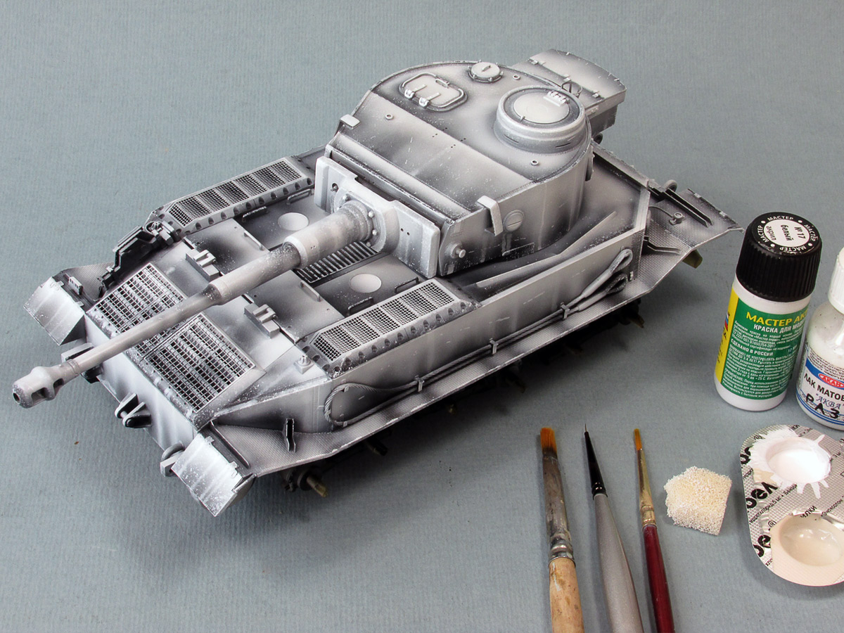 http://cdn-frm-eu.wargaming.net/wot/ru/uploads/monthly_09_2015/post-4861458-0-54127100-1443101688.jpg Всем привет! Мы продолжаем цикл статей о стендовом моделизме и о различных модельных хитростях. В этот раз мы расскажем о модном стиле в окраске моделей, так называемой, "чёрно-белой технологии". Некоторые приёмы и шаги уже были подробно описаны в предыдущих статьях о создании моделей: Создание масштабной модели ПТ-САУ: M18 Hellcat (Academy 1/35).Создание масштабной модели танка Т-34/76 (Tamiya 1/35).Создание масштабной модели танка Tiger I ("Звезда", 1/72).Пособие для новичков, окраска кистью. Т-34/76 ("Звезда", 1/72). Поэтому подробно остановимся только на новых нюансах окраски и особенностях данной модели: 1 http://cdn-frm-eu.wargaming.net/wot/ru/uploads/monthly_09_2015/post-4861458-0-48796700-1443097657_thumb.jpg За последние 5–7 лет в моделизме появилось много интересных технологий, которые повышают зрелищность моделей. В это раз было решено использовать модную "чёрно-белую технологию" от известного моделиста Jose Luis Lopez Ruiz. О самой технологии чуть ниже. "Подопытной кошкой" стал тяжелый танк Tiger (P). Известность машины, простые формы, однотонная серая окраска определили выбор 2 http://cdn-frm-eu.wargaming.net/wot/ru/uploads/monthly_09_2015/post-4861458-0-76753800-1443174672_thumb.jpg На сегодняшний день в 35-м масштабе "Тигр" (P) делают фирмы "Итальери" и "Дрэгон". В статье пойдёт речь о пластике "Дрэгон". Набор довольно старый, местами имеющий проблемы по качеству в плане сходимости деталей, но он в разы лучше итальянского "Тигра". Оформление упаковки было довольно забавным, т. к. в этой коробке от фирмы PLATZ лежит пластик от набора Dragon 6210, но с декалями и пр. оформлением от бренда "Girls und Panzer". Было принято решение о выборе прототипа, игровой модели с максимальной степенью соответствия и оригинальной подставкой в стилистке WoT. После изучения чертежей и архивных фото стало понятно, что фактически в игре присутствует один из прототипов машины в сером окрасе и без опознавательных знаков, что вполне исторично. Его мы и будем делать. 3 http://cdn-frm-eu.wargaming.net/wot/ru/uploads/monthly_09_2015/post-4861458-0-64546300-1443097658_thumb.jpg Набор, который нам достался, очень беден по деталировке. Отсутствие фототравления и нормальных гусениц вынудило докупить дополнительно 2 набора фотоэтчеда и металлические гусеницы. 4 http://cdn-frm-eu.wargaming.net/wot/ru/uploads/monthly_09_2015/post-4861458-0-15720200-1443097660_thumb.jpg Когда уже были начаты работы, захотелось заменить и тросы и буксирные серьги, "гулять так гулять!". Металлические тросики диаметром 1 мм, которые были куплены в интернете у "китайских товарищей" в магазине "хозтоваров", и буксирные серьги (фирмы RB Model) очень добавили реализма. Конечно, можно поступить по-другому и найти набор Dragon 6352 *Premium Kit*, где уже все есть в комплекте (наборные гусеницы, тросы, металлический ствол и фототравление). Но в наличии был уже другой, упрощённый набор, и мы не ищем легких путей. :-) 5 http://cdn-frm-eu.wargaming.net/wot/ru/uploads/monthly_09_2015/post-4861458-0-57729900-1443097661_thumb.jpg Сильных проблем при сборке не было, но понадобились подгонка корпуса (верхней и нижней половины) и шпаклевка отдельных стыков. На корпусе и башне пришлось немного восстановить и углубить сварные швы после этих процедур. 6 http://cdn-frm-eu.wargaming.net/wot/ru/uploads/monthly_09_2015/post-4861458-0-52295300-1443097662_thumb.jpg Большинство мелких и тонких элементов танка были заменены на фототравление (крепления инструмента, тросов, передние и задние крылья и пр.) Причем для задних решеток пришлось покупать отдельный набор фототравления. 7 http://cdn-frm-eu.wargaming.net/wot/ru/uploads/monthly_09_2015/post-4861458-0-42088000-