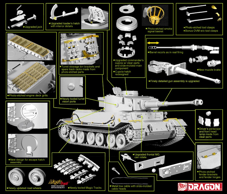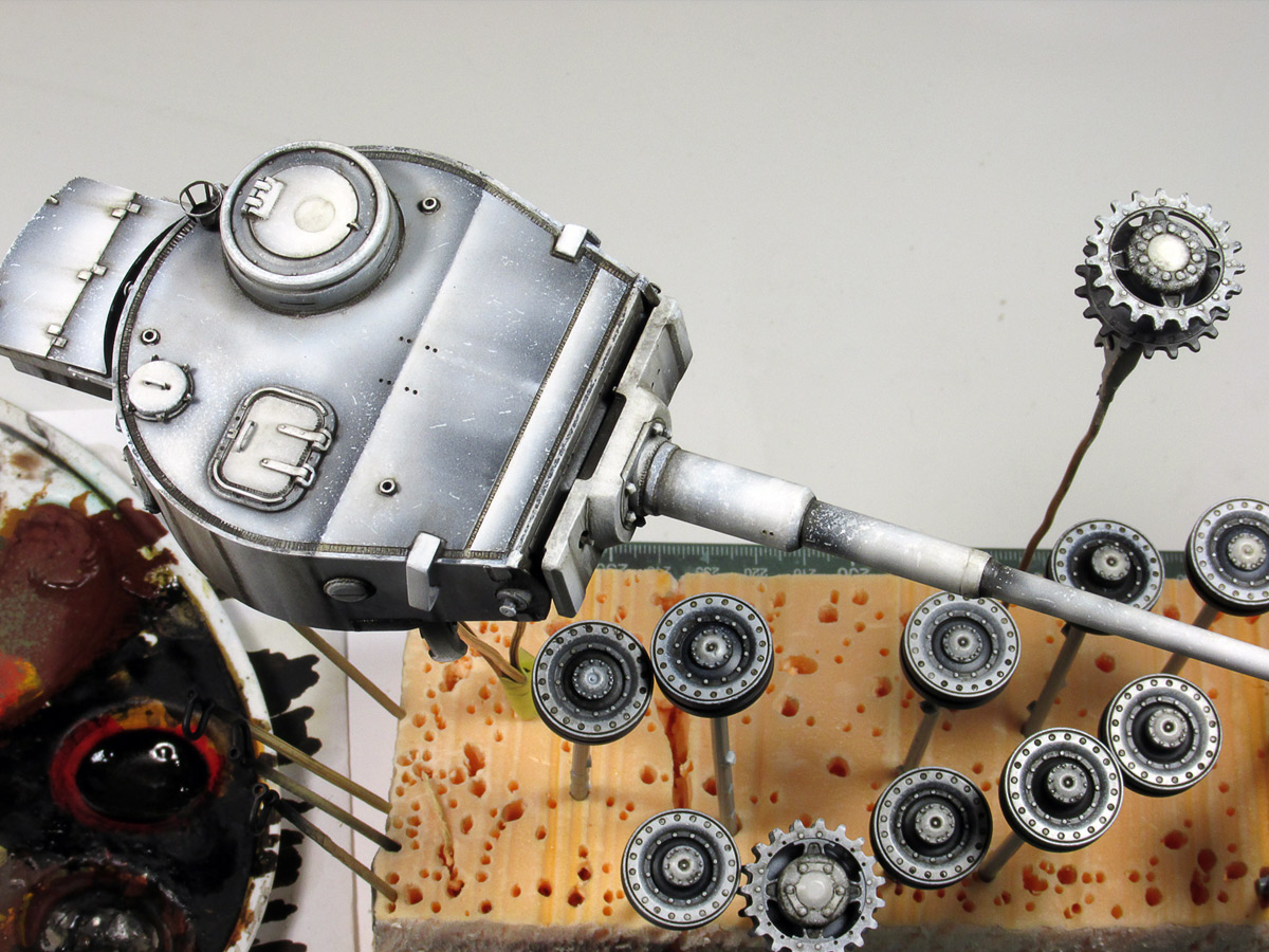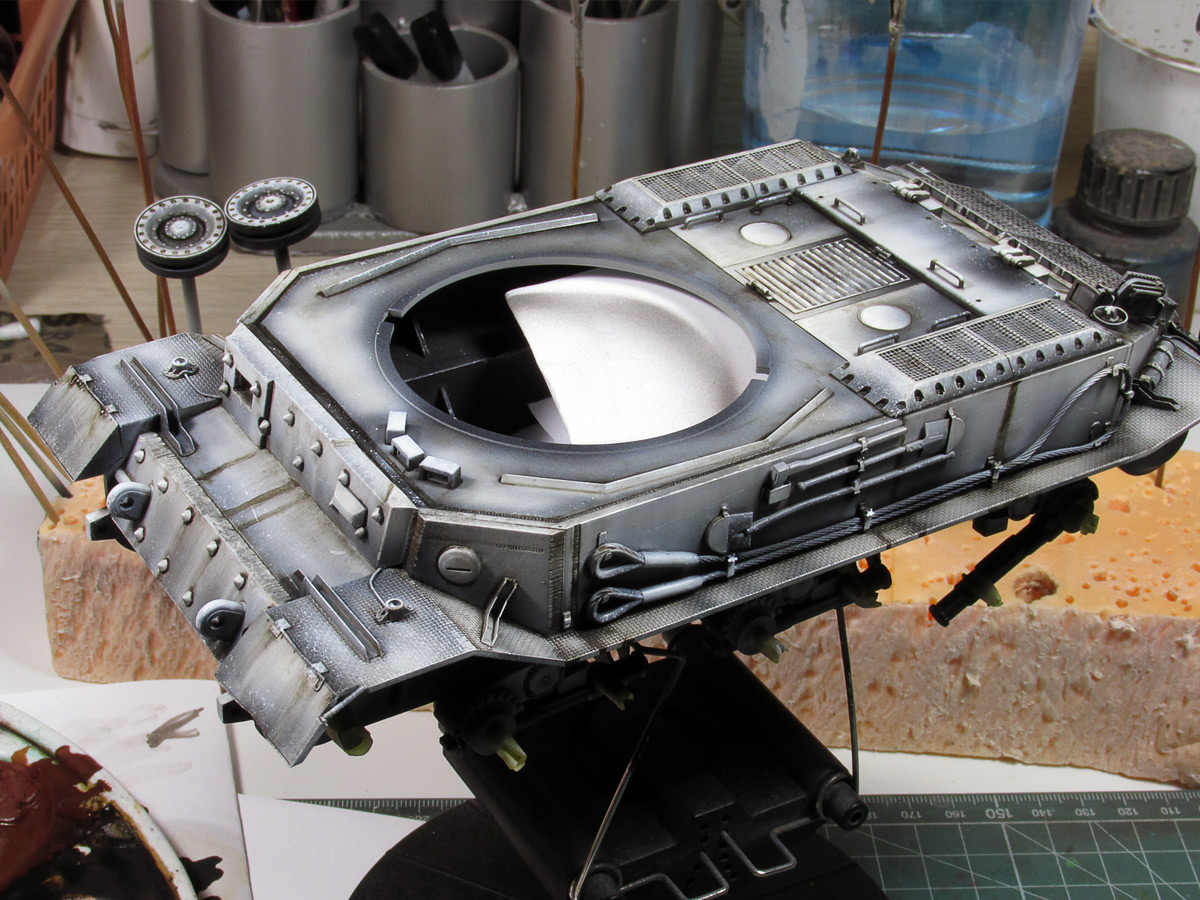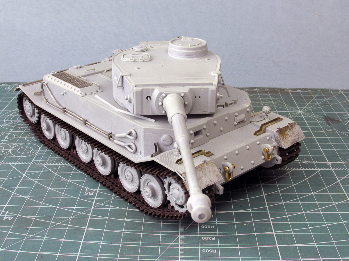 http://cdn-frm-eu.wargaming.net/wot/ru/uploads/monthly_09_2015/post-4861458-0-54127100-1443101688.jpg Всем привет! Мы продолжаем цикл статей о стендовом моделизме и о различных модельных хитростях. В этот раз мы расскажем о модном стиле в окраске моделей, так называемой, "чёрно-белой технологии". Некоторые приёмы и шаги уже были подробно описаны в предыдущих статьях о создании моделей: Создание масштабной модели ПТ-САУ: M18 Hellcat (Academy 1/35).Создание масштабной модели танка Т-34/76 (Tamiya 1/35).Создание масштабной модели танка Tiger I ("Звезда", 1/72).Пособие для новичков, окраска кистью. Т-34/76 ("Звезда", 1/72). Поэтому подробно остановимся только на новых нюансах окраски и особенностях данной модели: 1 http://cdn-frm-eu.wargaming.net/wot/ru/uploads/monthly_09_2015/post-4861458-0-48796700-1443097657_thumb.jpg За последние 5–7 лет в моделизме появилось много интересных технологий, которые повышают зрелищность моделей. В это раз было решено использовать модную "чёрно-белую технологию" от известного моделиста Jose Luis Lopez Ruiz. О самой технологии чуть ниже. "Подопытной кошкой" стал тяжелый танк Tiger (P). Известность машины, простые формы, однотонная серая окраска определили выбор 2 http://cdn-frm-eu.wargaming.net/wot/ru/uploads/monthly_09_2015/post-4861458-0-76753800-1443174672_thumb.jpg На сегодняшний день в 35-м масштабе "Тигр" (P) делают фирмы "Итальери" и "Дрэгон". В статье пойдёт речь о пластике "Дрэгон". Набор довольно старый, местами имеющий проблемы по качеству в плане сходимости деталей, но он в разы лучше итальянского "Тигра". Оформление упаковки было довольно забавным, т. к. в этой коробке от фирмы PLATZ лежит пластик от набора Dragon 6210, но с декалями и пр. оформлением от бренда "Girls und Panzer". Было принято решение о выборе прототипа, игровой модели с максимальной степенью соответствия и оригинальной подставкой в стилистке WoT. После изучения чертежей и архивных фото стало понятно, что фактически в игре присутствует один из прототипов машины в сером окрасе и без опознавательных знаков, что вполне исторично. Его мы и будем делать. 3 http://cdn-frm-eu.wargaming.net/wot/ru/uploads/monthly_09_2015/post-4861458-0-64546300-1443097658_thumb.jpg Набор, который нам достался, очень беден по деталировке. Отсутствие фототравления и нормальных гусениц вынудило докупить дополнительно 2 набора фотоэтчеда и металлические гусеницы. 4 http://cdn-frm-eu.wargaming.net/wot/ru/uploads/monthly_09_2015/post-4861458-0-15720200-1443097660_thumb.jpg Когда уже были начаты работы, захотелось заменить и тросы и буксирные серьги, "гулять так гулять!". Металлические тросики диаметром 1 мм, которые были куплены в интернете у "китайских товарищей" в магазине "хозтоваров", и буксирные серьги (фирмы RB Model) очень добавили реализма. Конечно, можно поступить по-другому и найти набор Dragon 6352 *Premium Kit*, где уже все есть в комплекте (наборные гусеницы, тросы, металлический ствол и фототравление). Но в наличии был уже другой, упрощённый набор, и мы не ищем легких путей. :-) 5 http://cdn-frm-eu.wargaming.net/wot/ru/uploads/monthly_09_2015/post-4861458-0-57729900-1443097661_thumb.jpg Сильных проблем при сборке не было, но понадобились подгонка корпуса (верхней и нижней половины) и шпаклевка отдельных стыков. На корпусе и башне пришлось немного восстановить и углубить сварные швы после этих процедур. 6 http://cdn-frm-eu.wargaming.net/wot/ru/uploads/monthly_09_2015/post-4861458-0-52295300-1443097662_thumb.jpg Большинство мелких и тонких элементов танка были заменены на фототравление (крепления инструмента, тросов, передние и задние крылья и пр.) Причем для задних решеток пришлось покупать отдельный набор фототравления. 7 http://cdn-frm-eu.wargaming.net/wot/ru/uploads/monthly_09_2015/post-4861458-0-42088000-