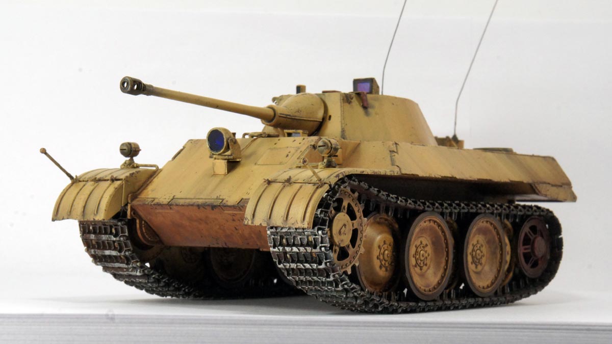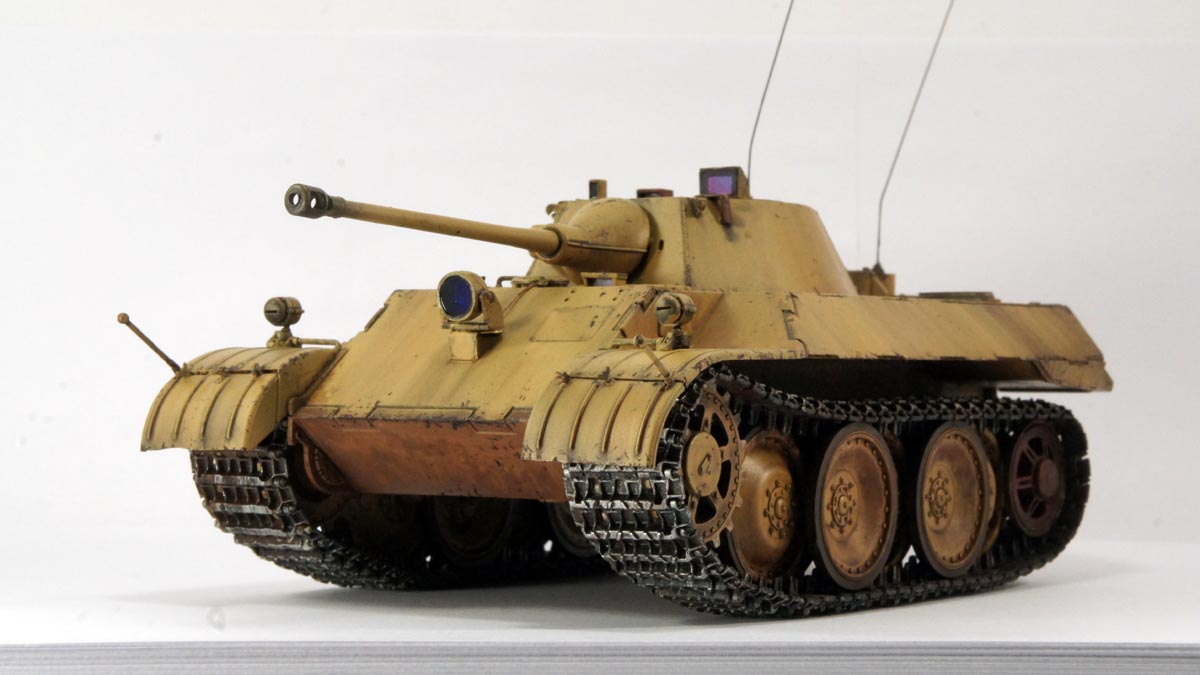 Леопард, разведывательный танк. Переделан для ведения ночной разведки - ИК прожектор на лобовой броне, прибор ночного видения FG1253 у командира в башне. Масштаб 1\35, производство Hobby Boss