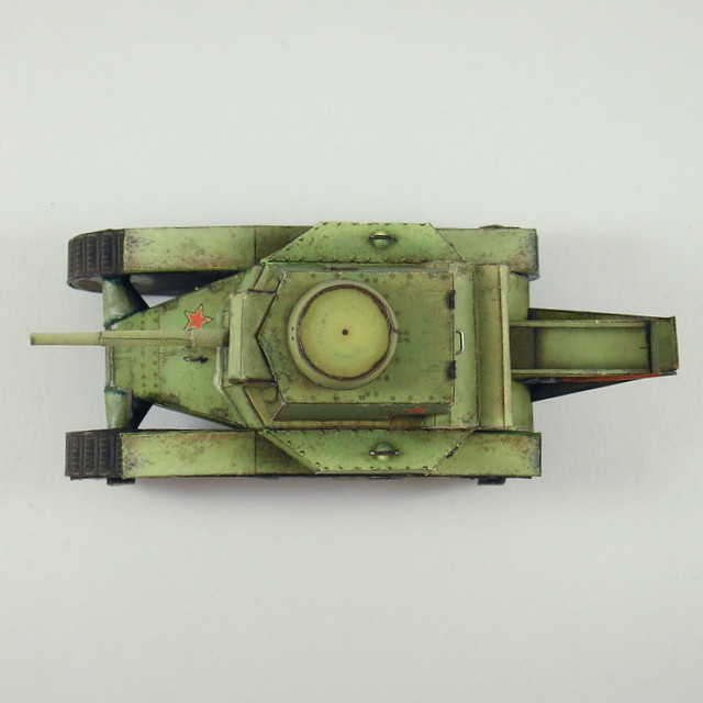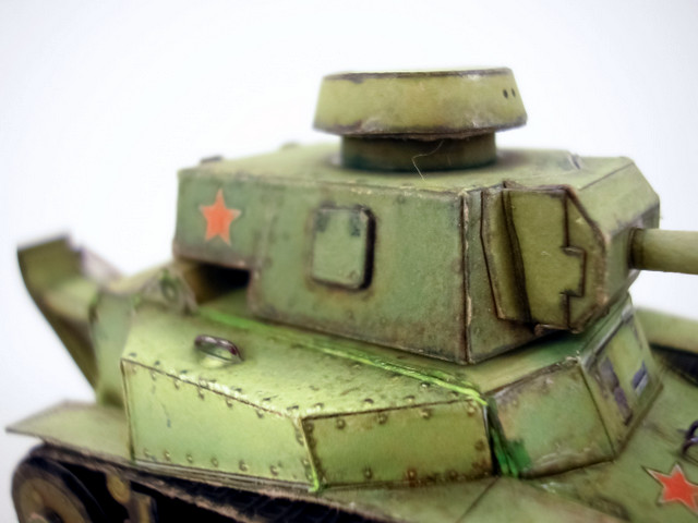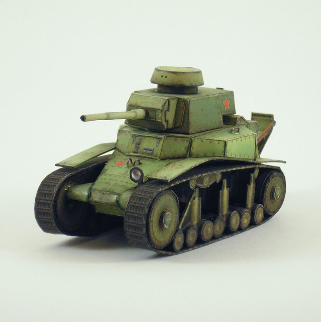 Бумажная модель танка МС-1 из брошюры WOPT, масштаб модели 1/50. Ходовая часть: реализован самый сложный вариант. На корпус и башню добавлены ручки. Материал: фотобумага Lomond односторонняя матовая для струйной печати, А4, 180 г/м2, клей ПВА. http://cdn-frm-eu.wargaming.net/wot/ru/uploads/monthly_11_2014/post-23355374-0-61249500-1416315729_thumb.gif Дополнительные фото бумажной модели (статические): Несколько фотографий процесса сборки: P.S.