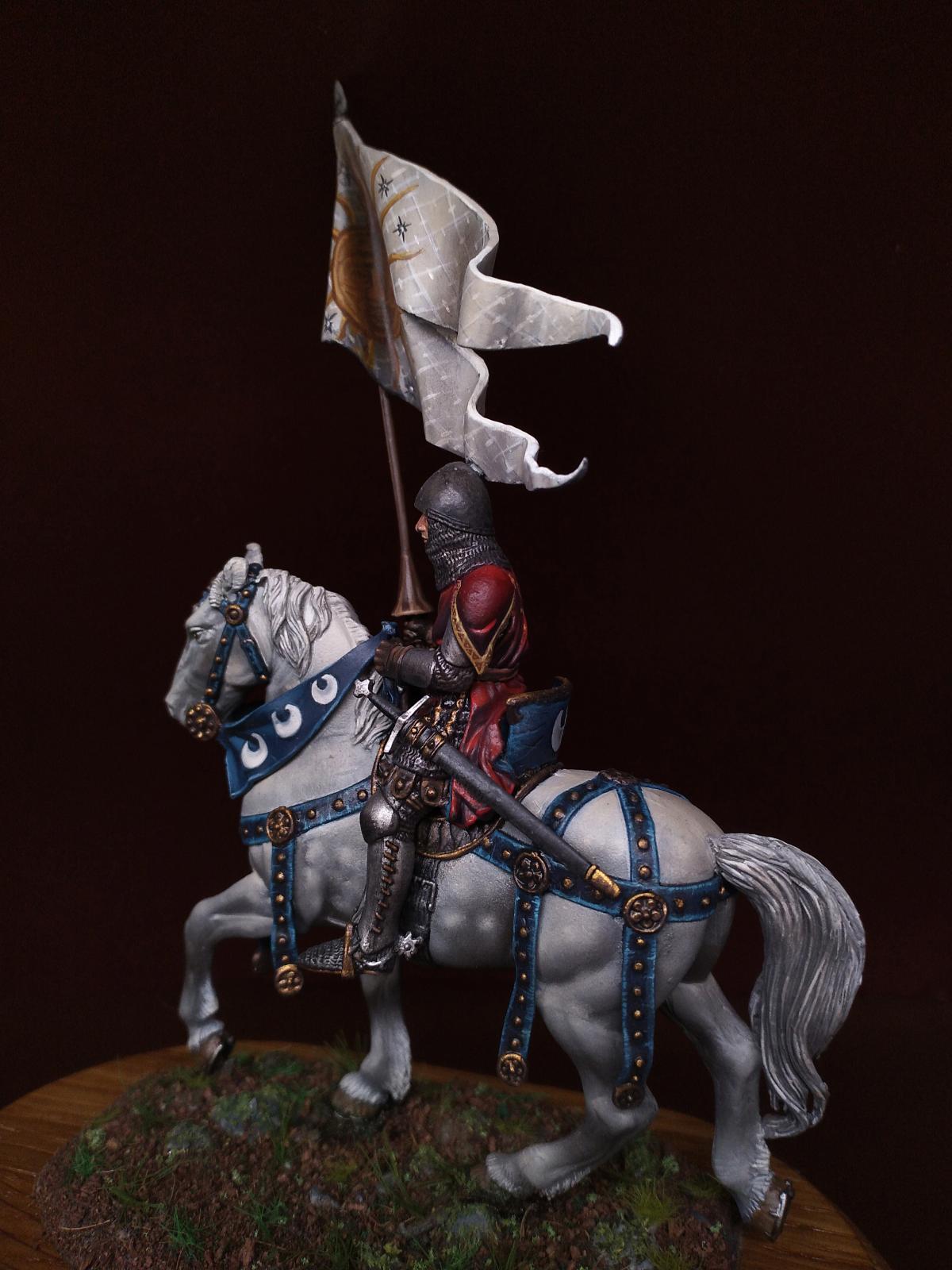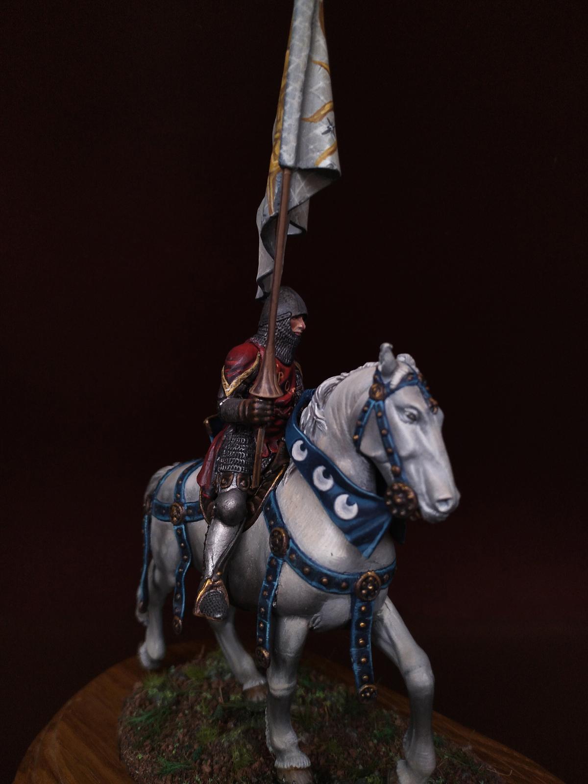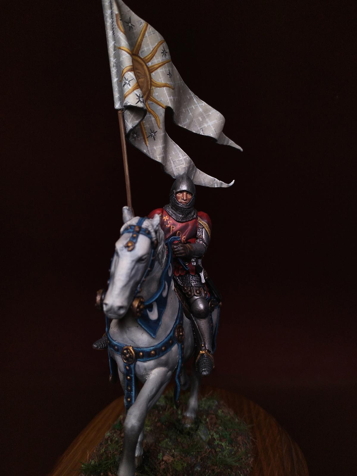 Всем доброго дня. Сегодня средневековый рыцарь: Italian knight standard bearer, 1340-1348 от Pegaso Models - Nr. 54-516. Масштаб 54mm. 1/32. Олово. Краски - масло и акрил.