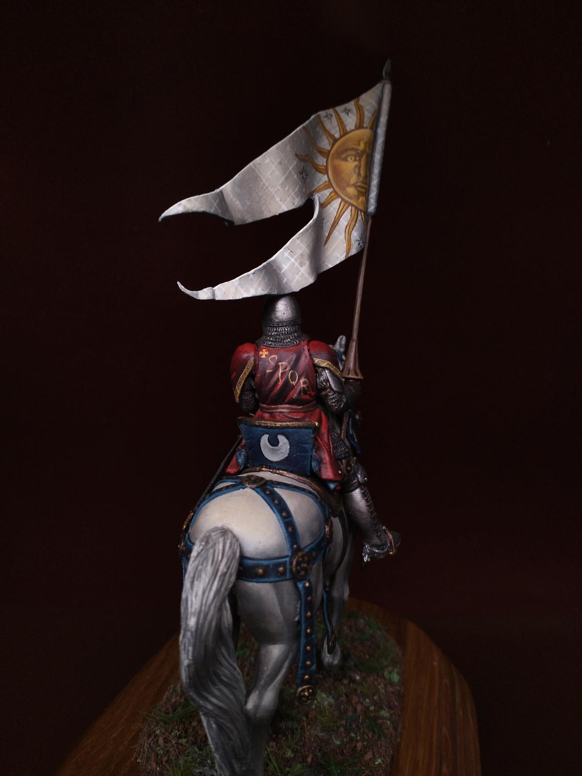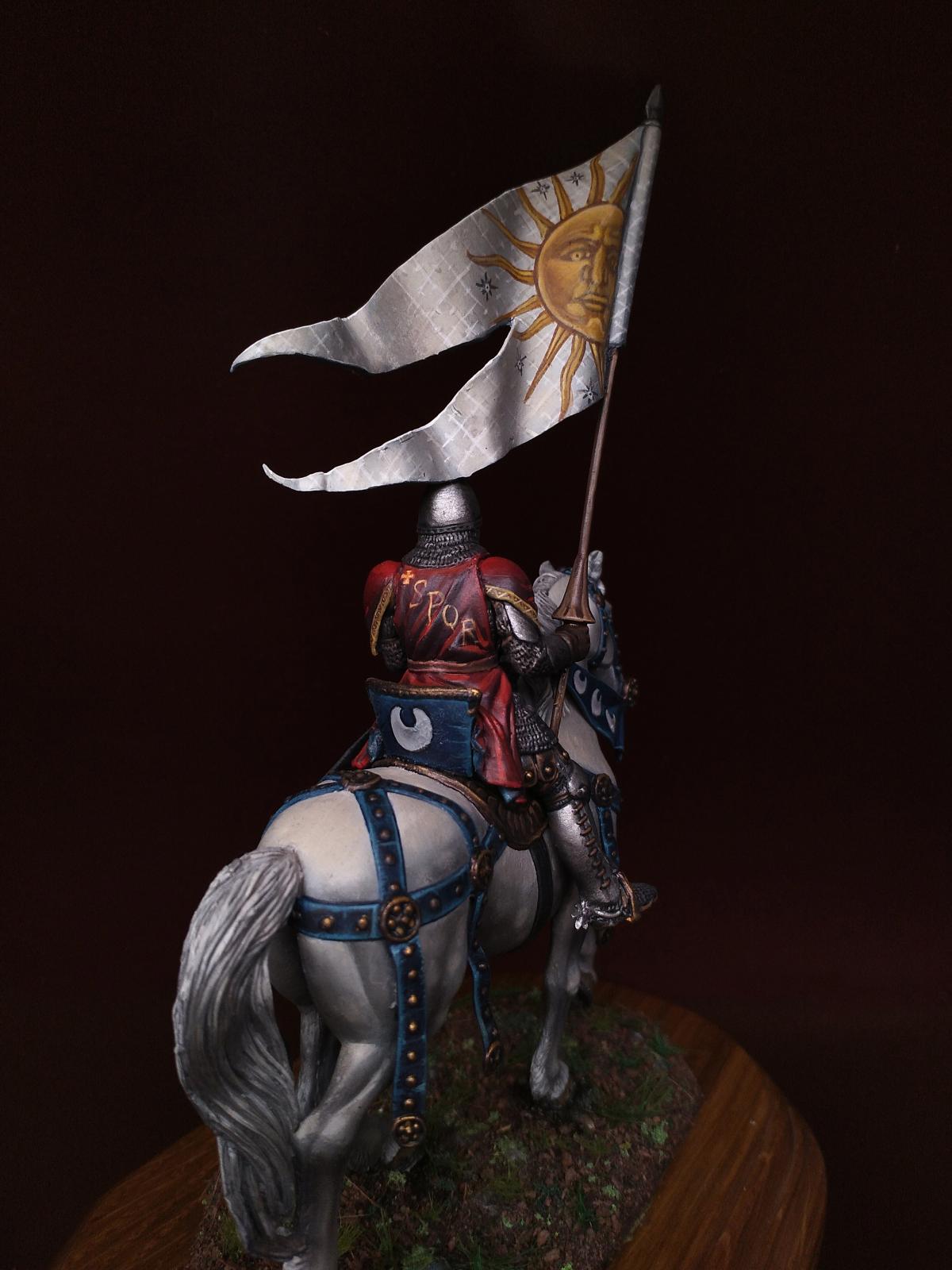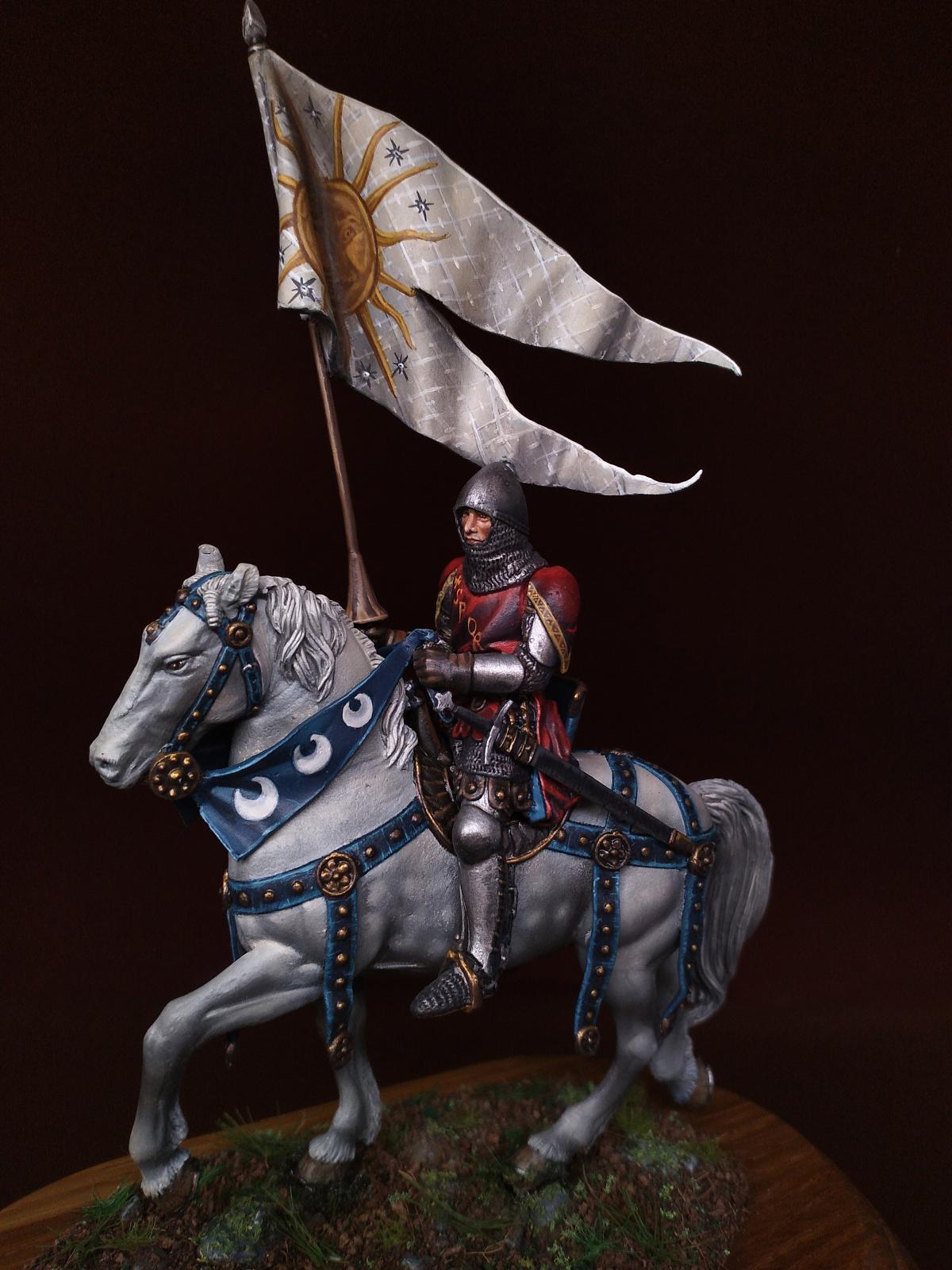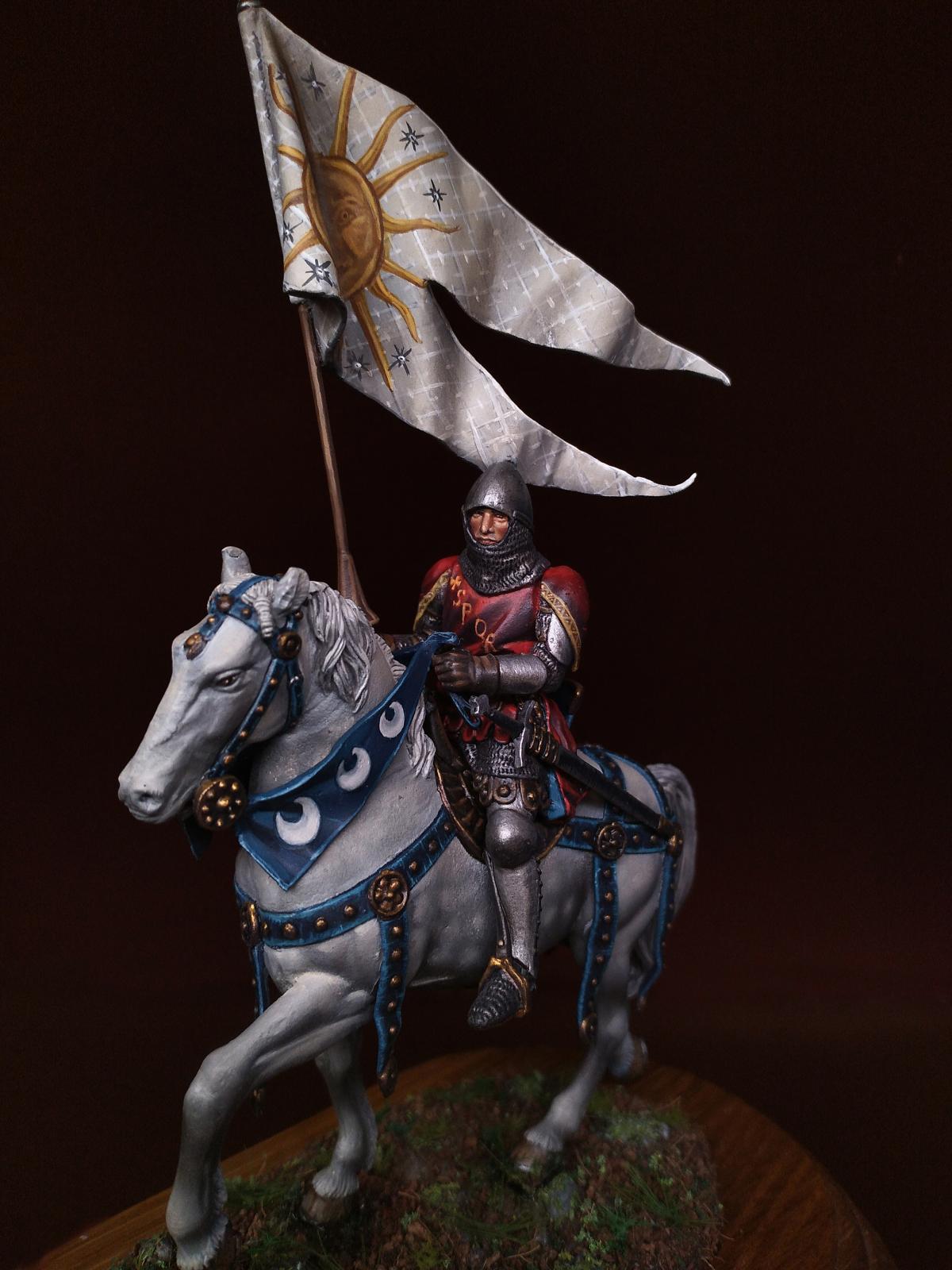 Всем доброго дня. Сегодня средневековый рыцарь: Italian knight standard bearer, 1340-1348 от Pegaso Models - Nr. 54-516. Масштаб 54mm. 1/32. Олово. Краски - масло и акрил.