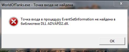Данная ошибка возникает из-за отсутствия актуальных обновлений для Windows 7. После выхода обновления 1.19 некоторые из вас могут столкнуться с ошибкой «Точка входа в процедуру EventSetInformation не найдена в библиотеке DLL ADVAPI32.dll» при запуске игры на компьютере с операционной системой Windows 7. Чтобы устранить эту проблему, пожалуйста установите следующее обновление: Для Windows 7 64-битной: Windows6.1-KB3080149-x64.msu