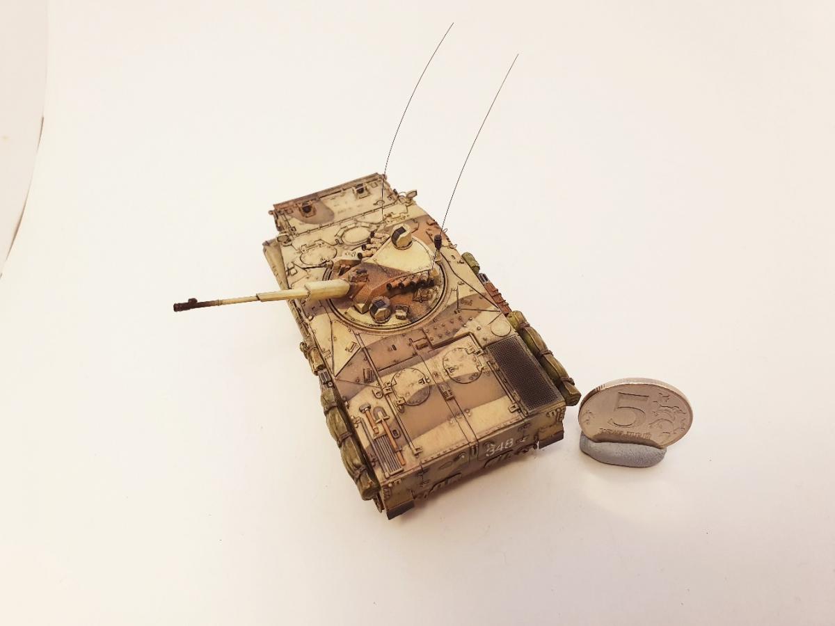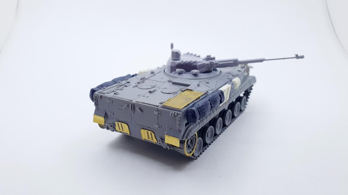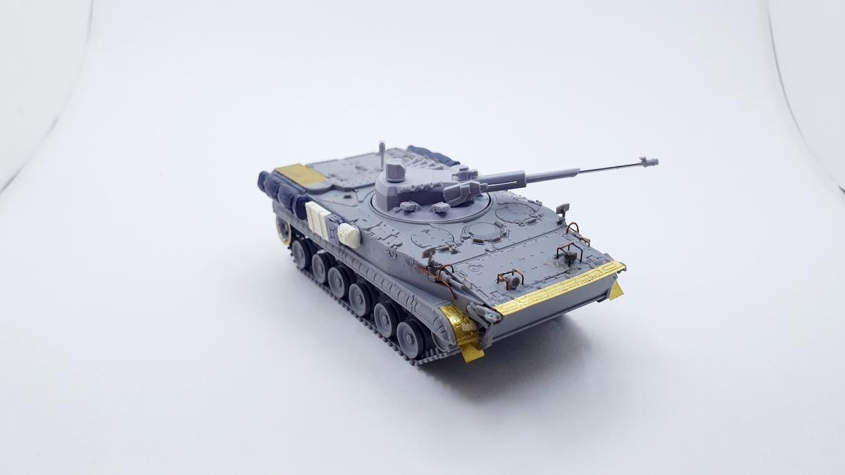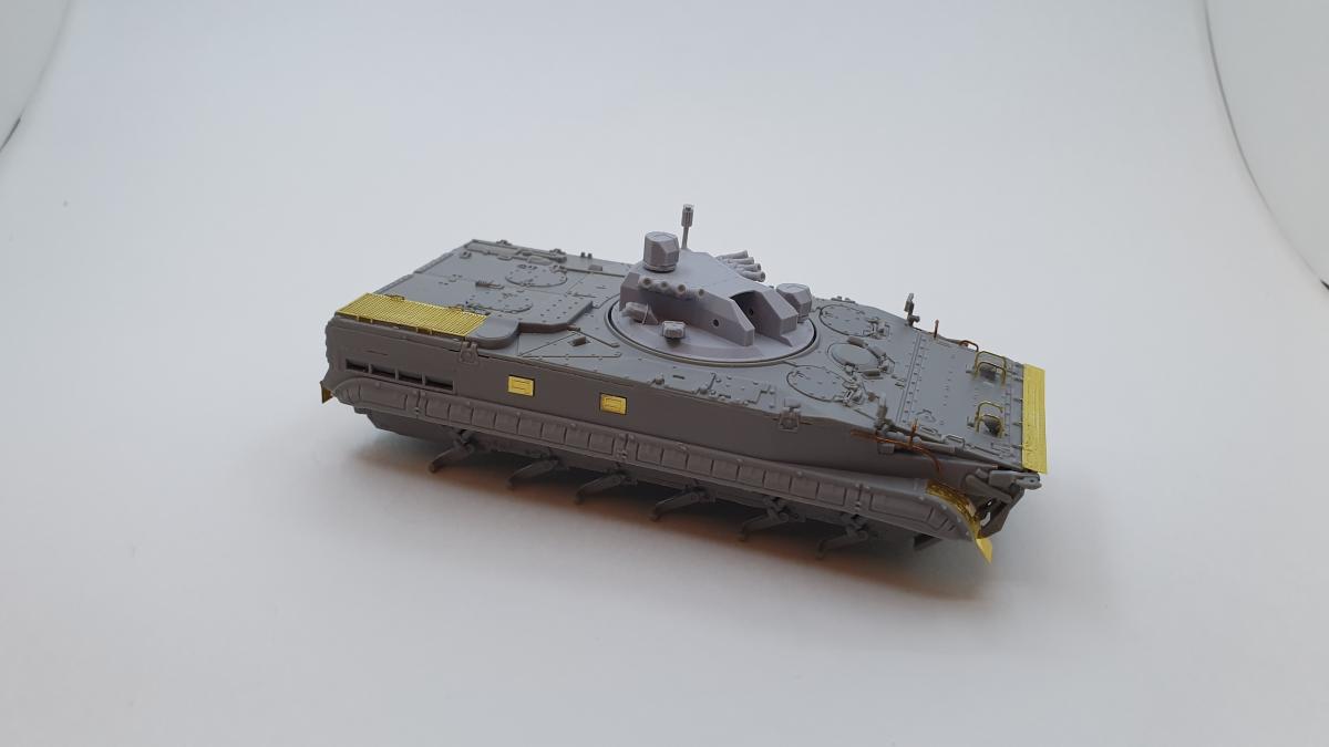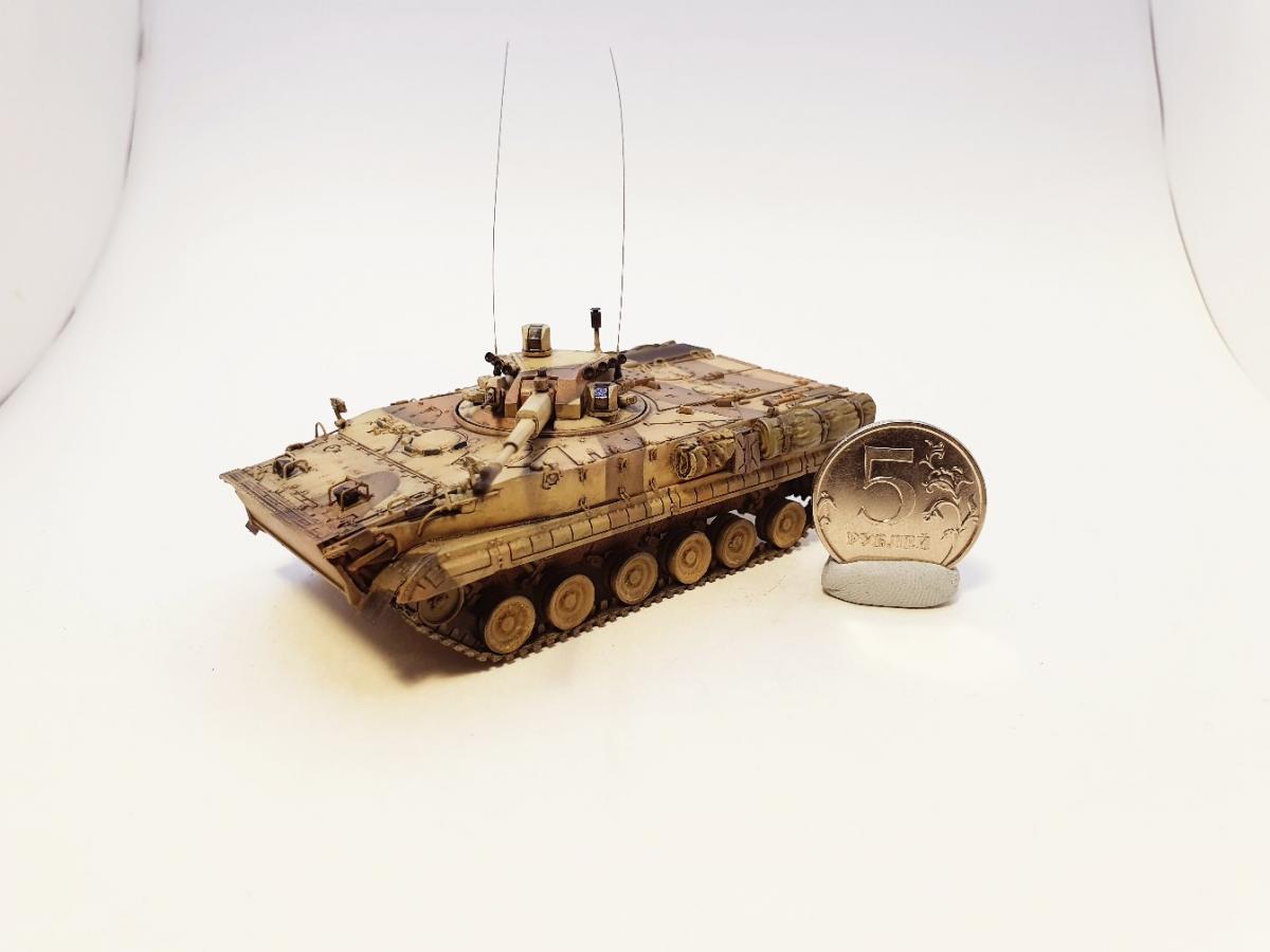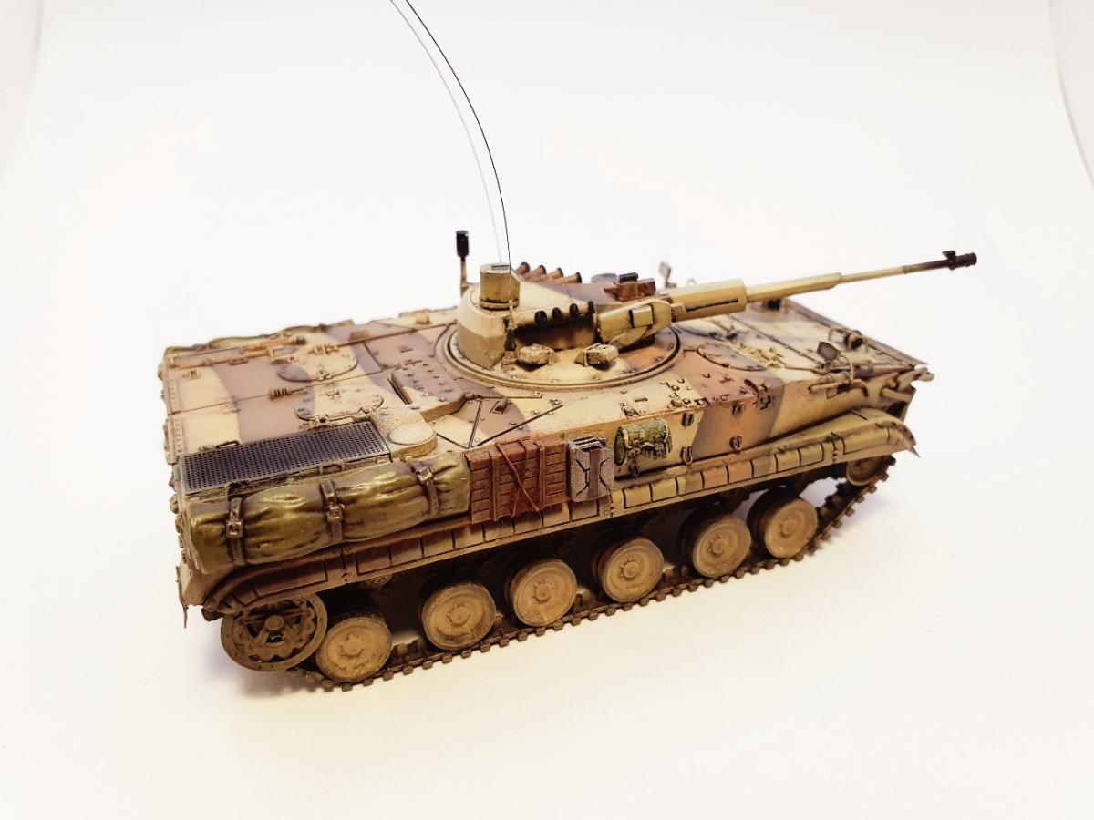 БМП-3 «Деривация-ПВО», образец 2015 года, 1/72. ModelCollect + башня от Танкоград. Можно сказать, что из серии "What if", т.к. машина в серию не пошла, а имеющиеся образцы по неподтвержденным данным ушли на экспорт в центральную азию и на ближний восток. MC подкачал, модель с весьма посредственной стыкуемостью, кое-какие детали замылены вусмерть (особенно звездочки), одна фара вообще с недоливом. Да и в целом модель не попадает в чертежи, но, увы, альтернативы нет Тем не менее, от работы с моделью получил удовольствие. Изначально антенные вводы, антенны и крюки на бортах для крепления обвесов не планировал, но глядя на окрашенную модель понял, что чего-то не хватает Доработки и дополнения: - Точеный ствол 57мм пушки для модуля АУ-220М + 7,62-мм пулемет 6П7К - Димок72 с формата. - Смоляные канистры, сумки, скатки и ящик - Golikov Project и Таран. - Антенные вводы - Zedval. - Антенны из двойной бисерной иглы 0.15мм. - Поручни, крюки на бортах, защита для фар и курсовых пулеметов - проволока 0.3мм и 0.2мм. Краски и химия Pacific88, АК, Citadel. Масло Мастер Класс. Пигменты ZipМакет.