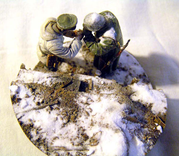 Использованы: подставка 5,45, фигуры Драгон. Окраска: фигуры - Тамия, Модел Мастер, подставка - Ревелл, масло, снег - сода с ПВА. Масштаб 1:35.
