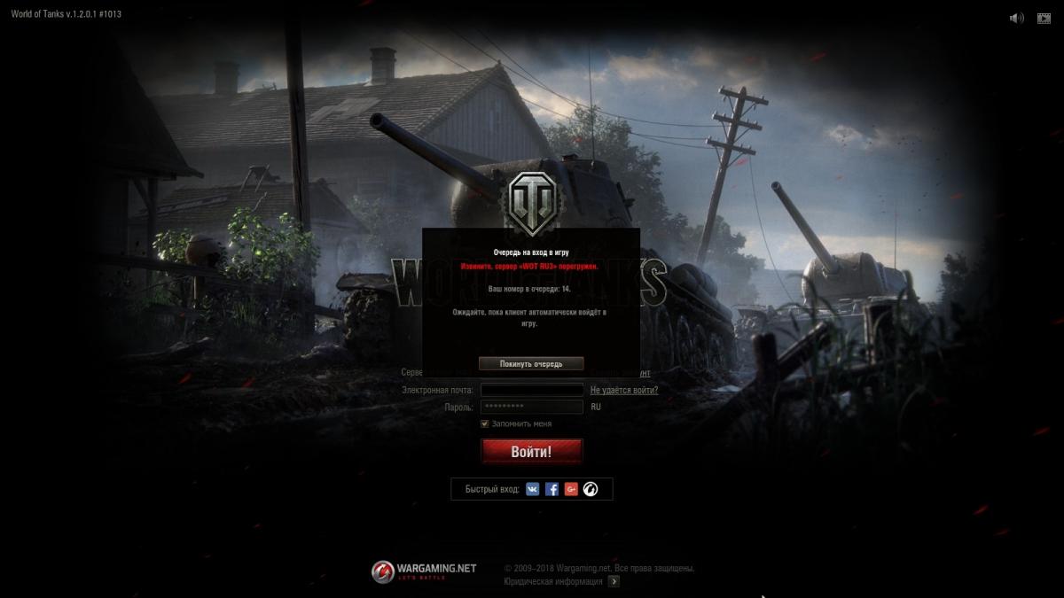 Доброго времени суток, Танкисты! Я столкнулся с проблемой "СЕРВЕР ПЕРЕГРУЖЕН" примерно в 19-30ч (МСК) 19.10.18г. Есть ли какие либо объяснения данной проблемы? У меня одного ли данный инцидент? Зашел в бой на японском тяже, набил примерно 4-5 к, пинг примерно 30-40, но зависало всё как будто 999 пинг. Интернет стабильный. В чем причина непонятно. В конце боя все зависло, вышел как дезертир. После боя танк остался в бою. Танк в бою висит. Перезагрузился. Не помогло, Попытался поменять экипаж - выдал ошибку "блокировка танка". Через 30 сек. танк появился сам. Зашел на нем через бой, снова зависла игра. Перезагрузился и новая проблема "сервер перегружен". Как быть не знаю. Вот такая ситуация. Ни на один сервер не пускает. Даже на авто, и на том сервере где остался в бою.