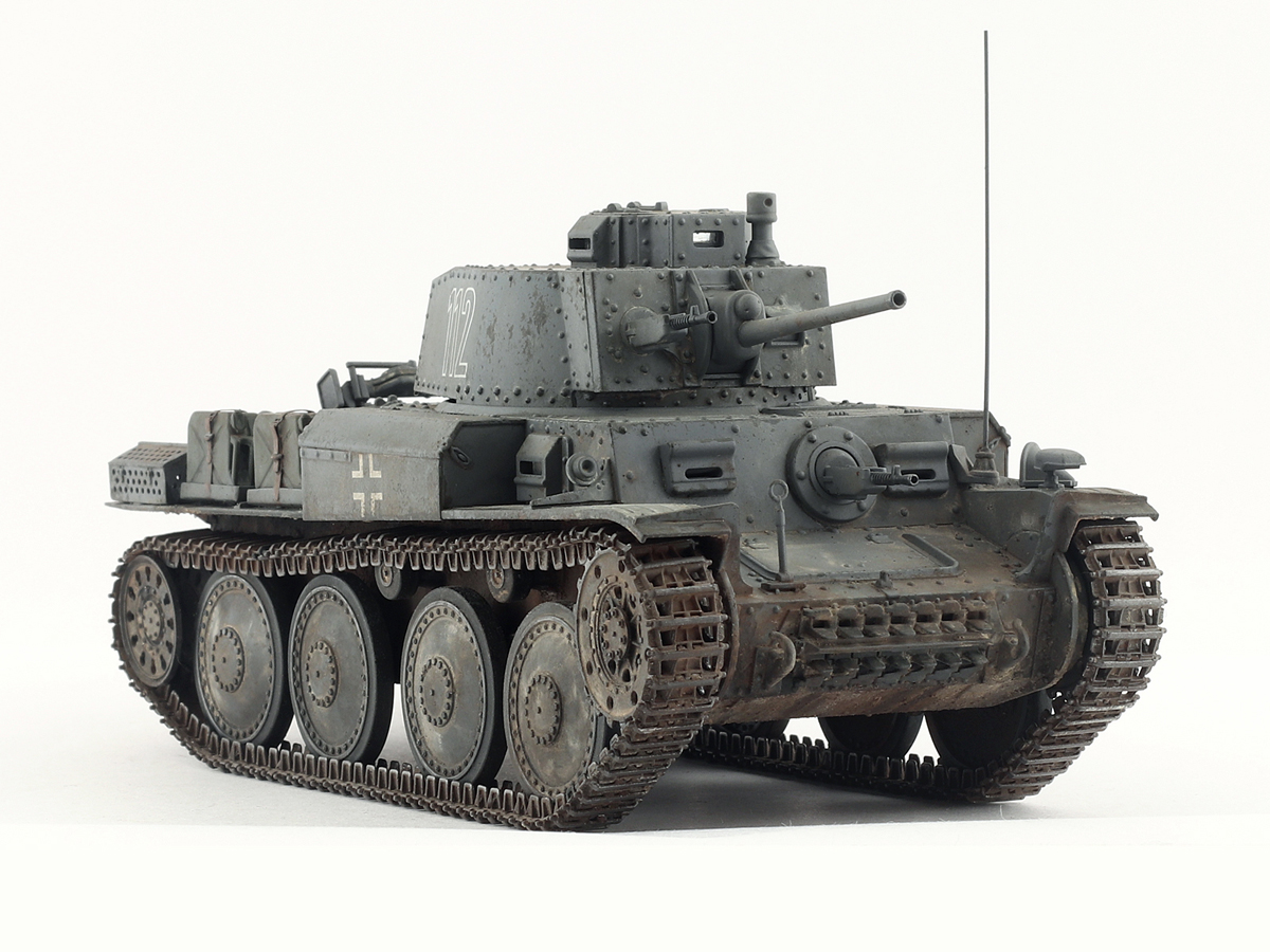 Всем привет. Представляю вам свою свежую модель - новую Тамийскую Прагу, Pz.Kpfw. 38(t) Ausf.E Тамийский кит собирается, как обычно, очень хорошо, но крайне упрощен по детализации. Серьезных переделок я не планировал, только добавил самодельное крепление канистр и вставил "стекла" в смотровые приборы. Траки - металл, MasterClub. Намучался с ними, очень плохо садятся на Тамийскую звездочку и ленивец. Остальное - искоробка. Модель окрашена Тамийскими акрилами, тонирована отечественным маслом и пигментами. Впервые попробовал изобразить сильно запыленную машину, в очередной раз убедился, что грязная бронетехника это не моё, следующий танк будет чище. http://cdn-frm-eu.wargaming.net/wot/ru/uploads/monthly_04_2020/post-1887648-0-31709200-1586410491_thumb.jpghttp://cdn-frm-eu.wargaming.net/wot/ru/uploads/monthly_04_2020/post-1887648-0-80403300-1586410495_thumb.jpghttp://cdn-frm-eu.wargaming.net/wot/ru/uploads/monthly_04_2020/post-1887648-0-81096500-1586410500_thumb.jpghttp://cdn-frm-eu.wargaming.net/wot/ru/uploads/monthly_04_2020/post-1887648-0-19910100-1586410509_thumb.jpghttp://cdn-frm-eu.wargaming.net/wot/ru/uploads/monthly_04_2020/post-1887648-0-11074400-1586410515_thumb.jpghttp://cdn-frm-eu.wargaming.net/wot/ru/uploads/monthly_04_2020/post-1887648-0-29636000-1586410520_thumb.jpg Жду ваших отзывов.