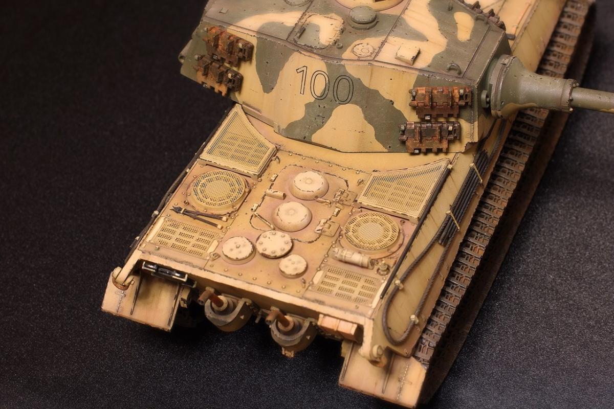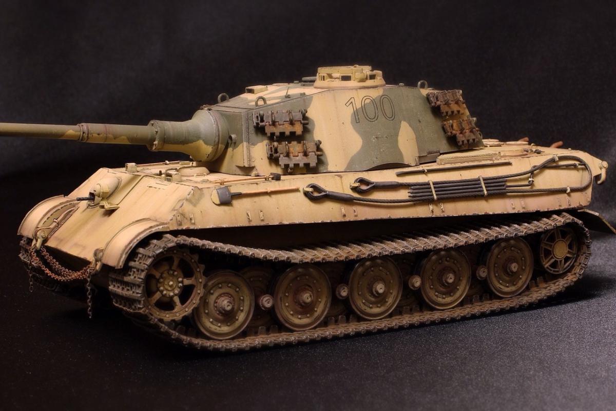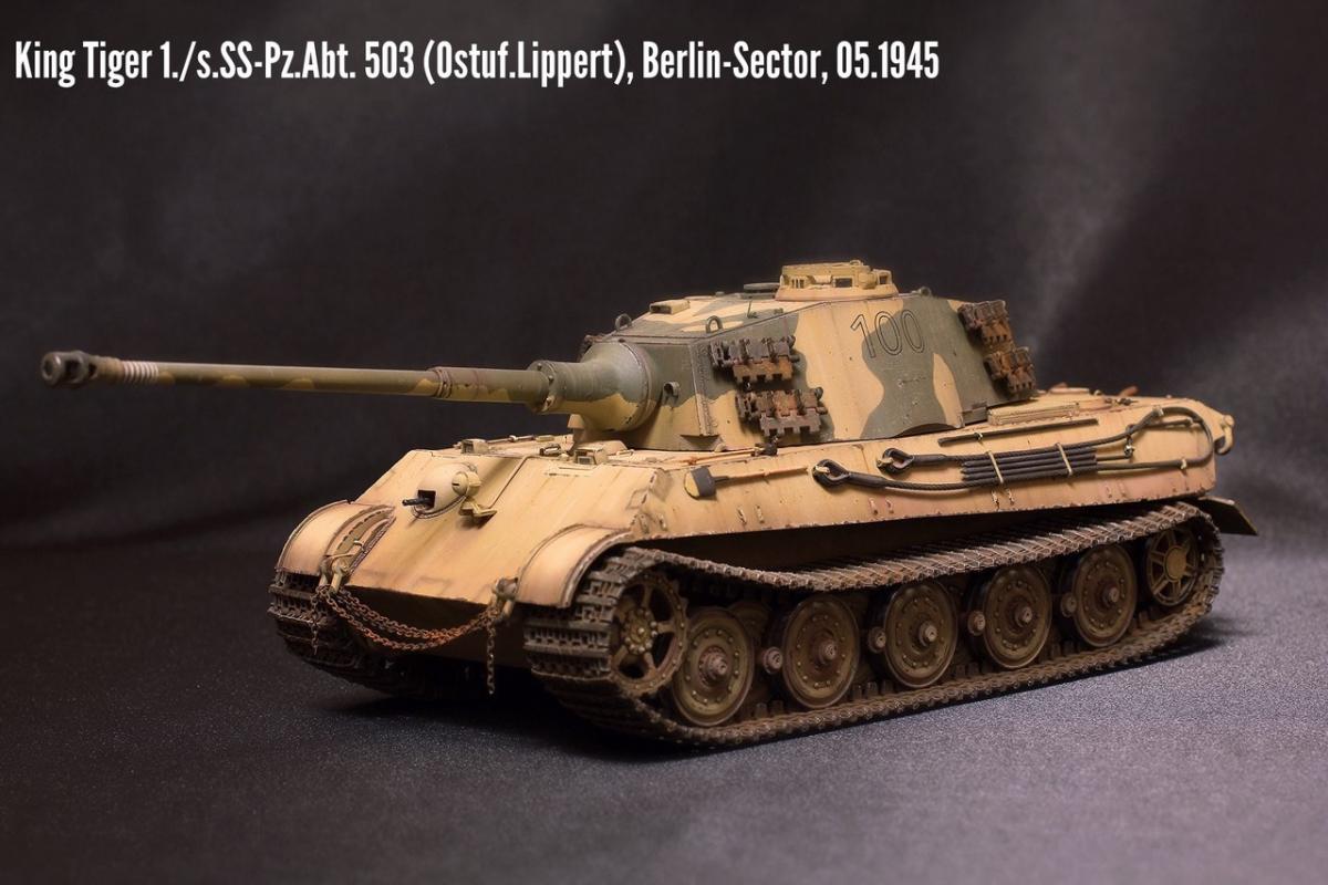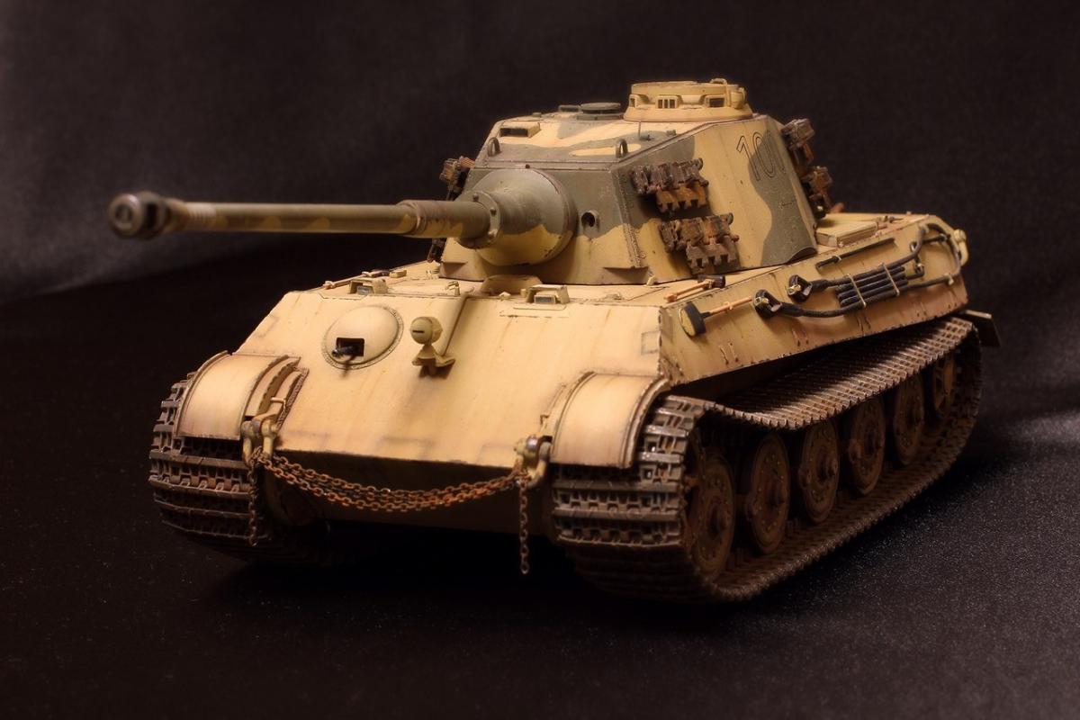 Приветствую всех товарищи моделисты! Хочу представить вашему вниманию свою крайнюю поделку - King Tiger от Академии. Модель практически из коробки. Из дополнений: добавлены местами сварные швы на корпусе и башне, заменен китовый козырек на пивжесть, проводка к фаре из проволоки, транспортные траки заменены на боевые от Hobby Boss, на башне оставил транспортные, поскольку на обе гусеницы ушло все впритык, триплексы из DVD, мушка на башне - гитарная струна, она же и в глушителях в виде перегородок, номер 100 на башне - сухие декали от Wilder. Всем приятного просмотра!